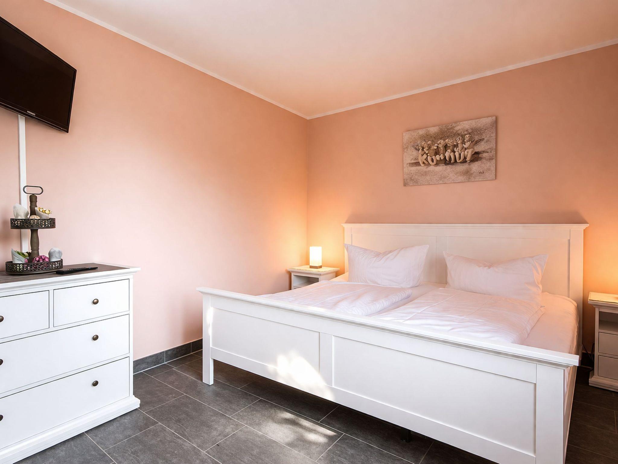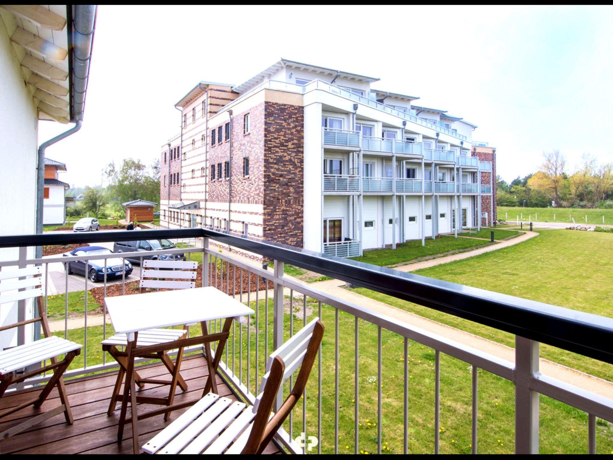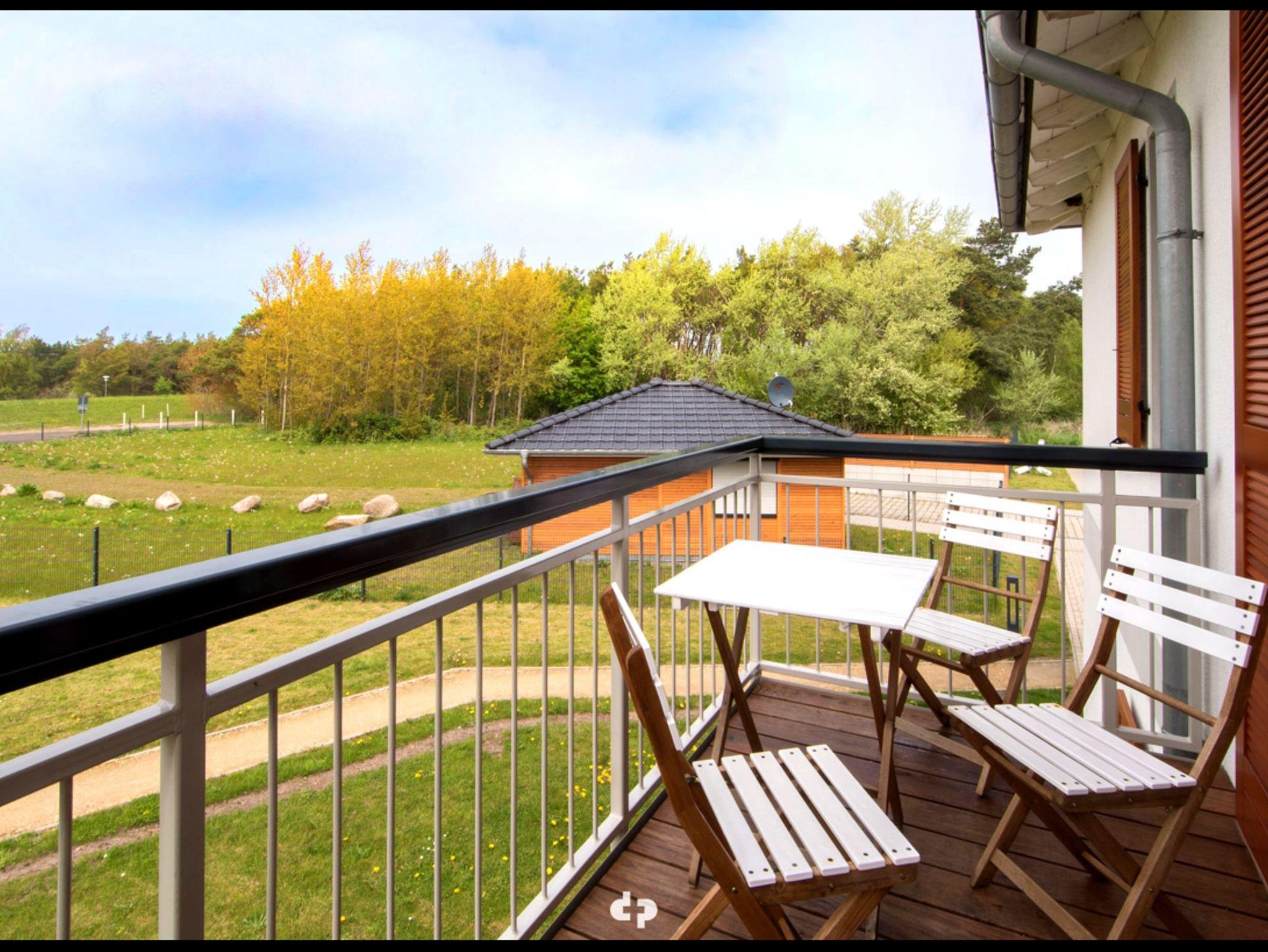 Es erwartet Sie ein neu gebautes 2-Raum-Appartement in der ersten Etage mit unverbaubarem Blick auf die Dünen. Vom großen Balkon genießen Sie den Blick ins Grüne und auf das Naturschutzgebiet von Dierhagen. ----- Das Appartement ist durchgängig gefliest und mit Fußbodenheizung ausgestattet. Es verfügt über einen großzügigen Wohnraum, ein Schlafzimmer sowie ein modernes Bad. ----- Die in den Wohnraum integrierte Küchenzeile ist gut ausgestattet und bietet Kühl- und Gefrierschrank, Ceranherd mit Backofen, Geschirrspüler, Wasserkocher und Kaffeemaschine. Ein großzügiger Essplatz schließt sich direkt an. ----- Im Schlafzimmer befinden sich ein Doppelbett (180 x 200), TV, Kleiderschränke und eine Kommode. ----- Der gemütliche Wohnraum ist mit LED-Flachbildschirm, ausziehbarer Schlafcouch (140 x 200) für zwei weitere Personen, Anrichte mit DVD-Player sowie Kamin ausgestattet. Dieser sorgt in der kalten Jahreszeit für wohlige Wärme und romantisches Flair. ----- Das Bad verfügt über WC, Waschtisch und Dusche. ----- Zum Appartement gehören ein Stellplatz (H5-W4) sowie ein Abstellraum für Ihre mitgebrachten Fahrräder. ----- Strom- und Wasserkosten sind im Mietpreis enthalten. ----- Kostenfreies WLAN ist vorhanden.