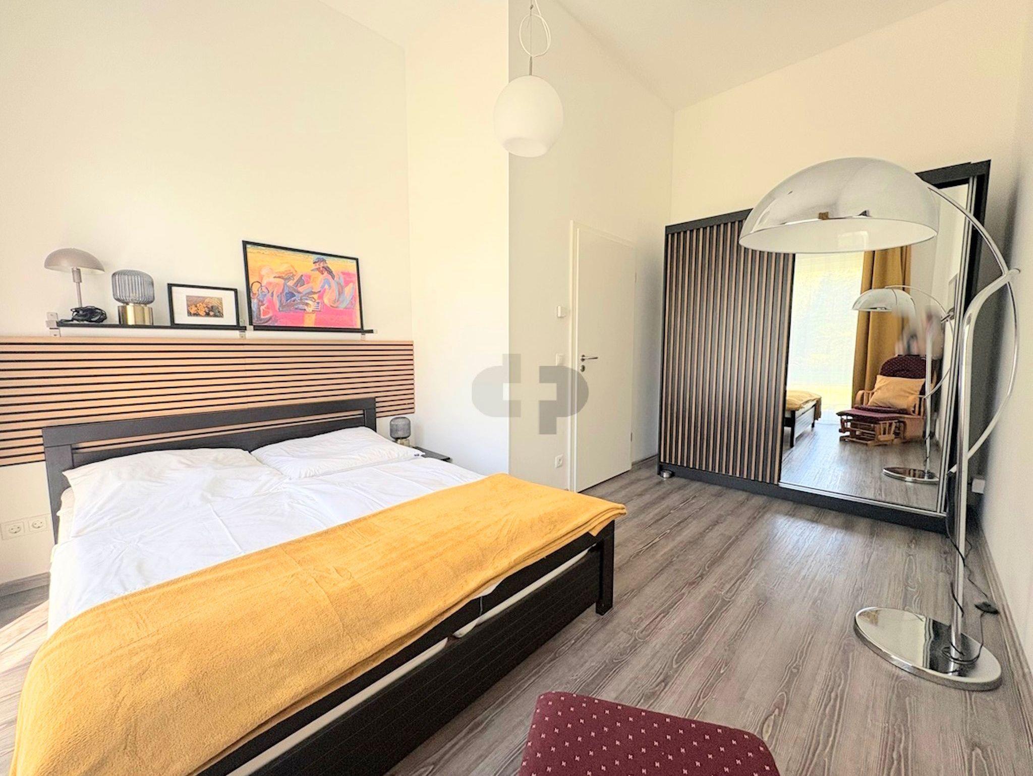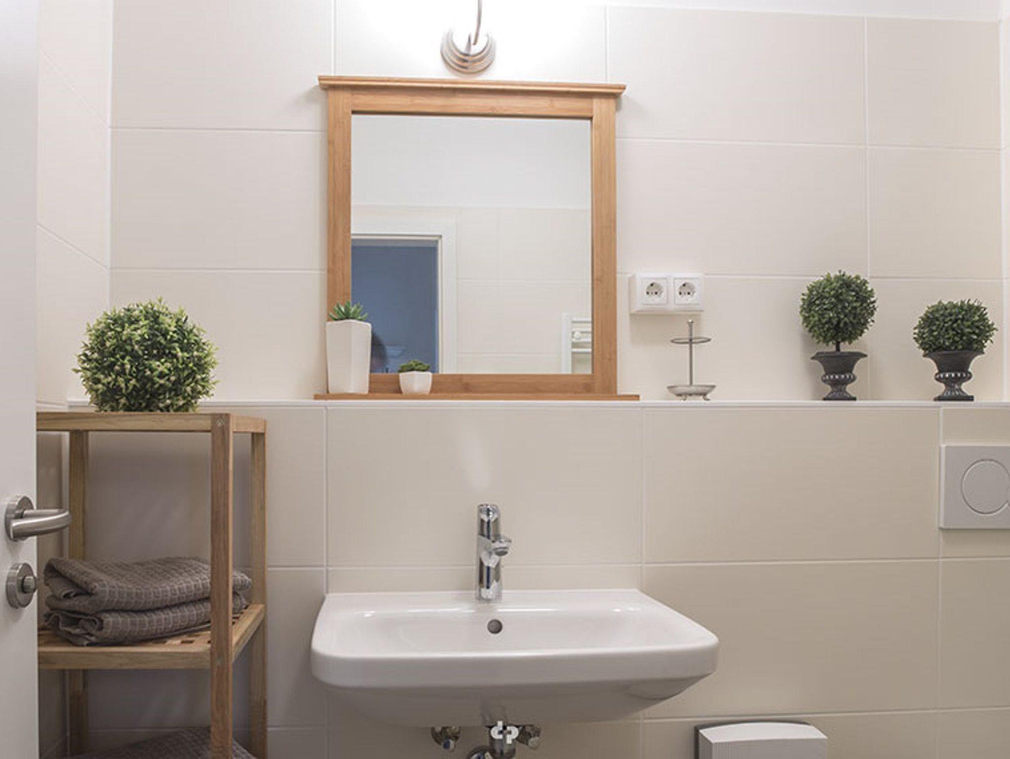 Das helle und freundliche Schlafzimmer ist mit einem Doppelbett und 2 hochwertigen, separaten Matratzen eingerichtet. Das geflieste Bad ist mit hochwertiger Ausstattung versehen, dazu gehören die ebenerdige Dusche mit Glastür, Waschtisch und WC.