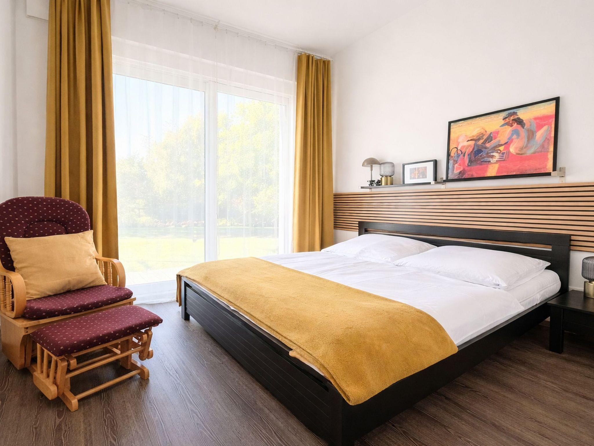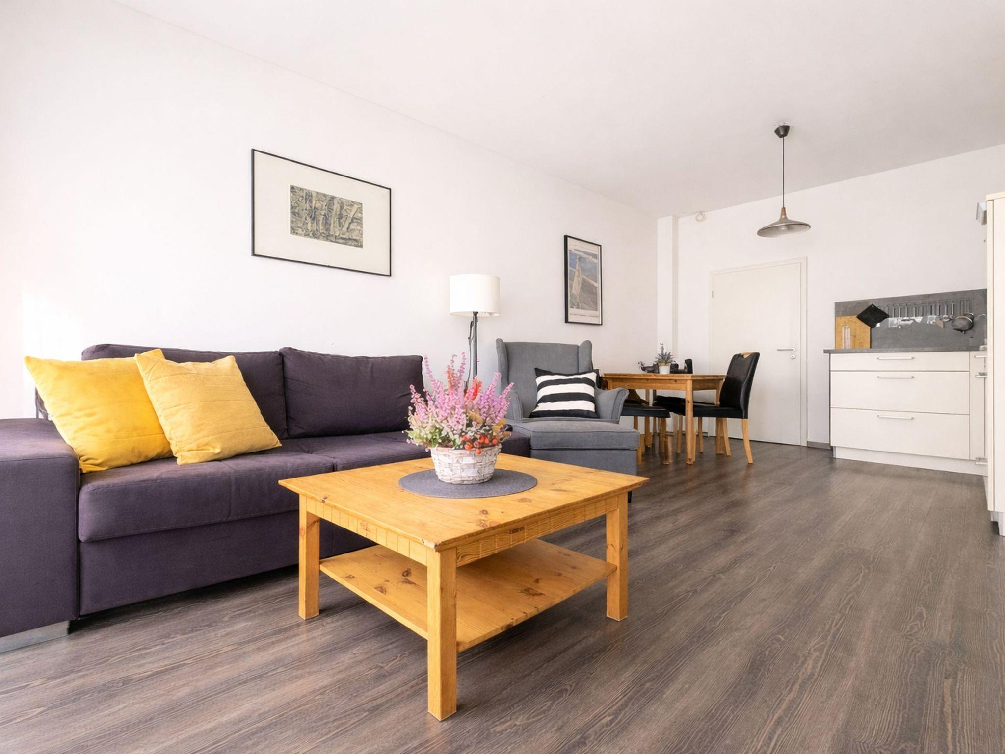 Nur wenige Meter bis zur Ostsee ? exklusive Ferienwohnung mit eigener Terrasse im Erdgeschoss. ----- Mit ca. 54 m² ist die Wohnung bestens geeignet, um für bis zu 3 Personen das Basislager der nächsten Auszeit zu sein. ----- Die Wohnung befindet sich auf der Südseite im Erdgeschoss, ist ebenerdig und von außen begehbar. Die Einrichtung in hellen Farben wirkt freundlich und modern. ----- Die großzügige überdachte Terrasse ist sowohl vom Schlafzimmer als auch vom Wohnzimmer aus zugänglich. Bodentiefe Fenster sorgen für lichtdurchflutete Räume. Bei Bedarf können die vorhandenen Außenjalousien zur Verdunkelung genutzt werden. ----- Das Appartement verfügt über ein großes Wohnzimmer mit offener Küche und Zugang über die Terrasse. Im Wohnraum stehen Ihnen ein gemütliches Sofa (ausziehbar, 1,60 m breit) sowie zwei bequeme Sessel zur Entspannung zur Verfügung. Ein moderner Flachbildfernseher und eine Soundanlage ergänzen die Ausstattung. ----- Die hochwertige Einbauküche ist mit Cerankochfeld, Backofen, Kühlschrank mit TK-Fach und Geschirrspüler ausgestattet. Der separate Essplatz lädt zu gemeinsamer Essenszubereitung und entspannten Mahlzeiten ein. ----- Das helle und freundliche Schlafzimmer ist mit einem Doppelbett und zwei hochwertigen separaten Matratzen ausgestattet. ----- Das geflieste Bad verfügt über eine hochwertige Ausstattung mit ebenerdiger Dusche mit Glastür, Waschtisch und WC. ----- Ein kostenloser Parkplatz (H7-W05) gehört zum Appartement. ----- Strom- und Wasserkosten sind im Mietpreis enthalten. ----- Das Appartement verfügt über kostenfreies WLAN.