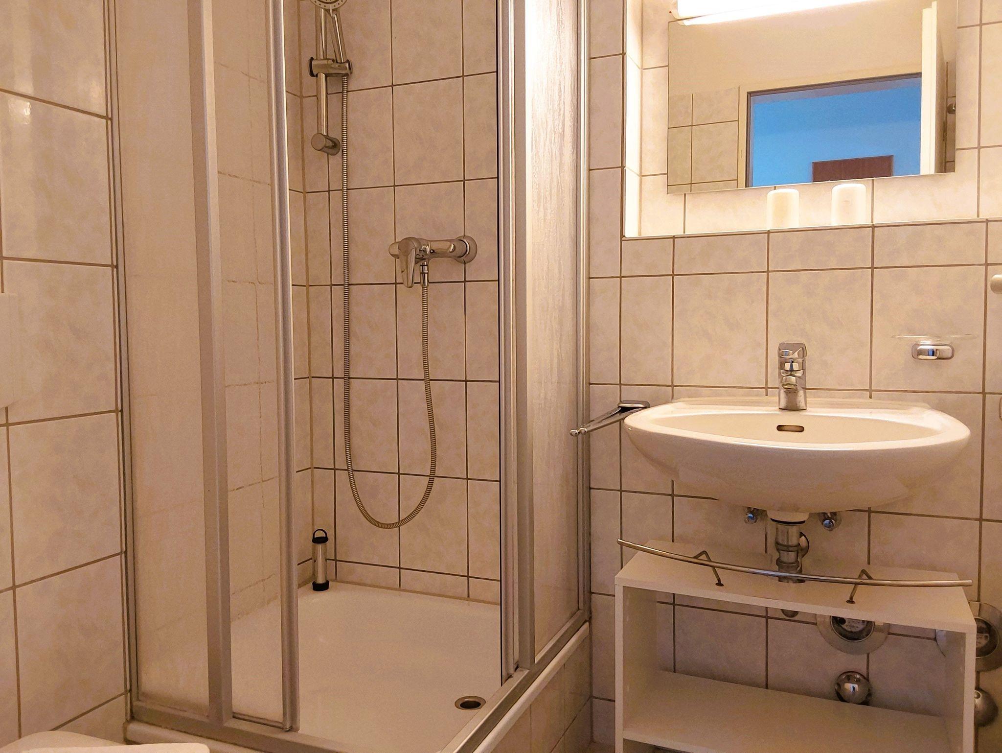 Die FEWO ist für zwei Personen üppig groß und insgesamt gut ausgestattet. Die fehlende Spülmaschine fällt bei zwei Personen kaum ins Gewicht, das fehlende W-Lan ist nicht mehr zeitgemäß. Auch die weißen Plastikstühle auf den Balkonen sollten einmal erneuert werden.
