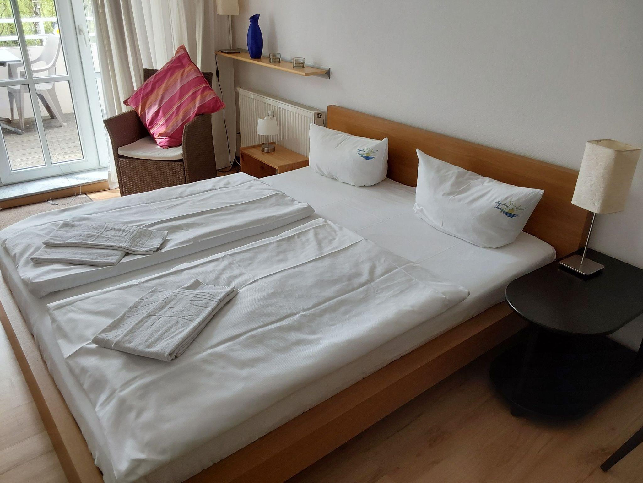 Die modern eingerichteten 1-Raum-Appartements dieser Kategorie sind für 2 Personen geeignet und ca. 30 qm groß. Sie verfügen über einen Wohn-/Schlafraum mit Doppelbett für 2 Personen. Alle unsere Wohnungen sind Nichtraucher-Wohnungen. Bei einigen Appartements können Sie Ihr Haustier mitbringen (s. Zimmerdaten). Ausstattung: Sat-TV, Radio, Küchenzeile, Dusche/WC, möblierte Terrasse oder Balkon. Bettwäsche und Handtücher als Erstausstattung.