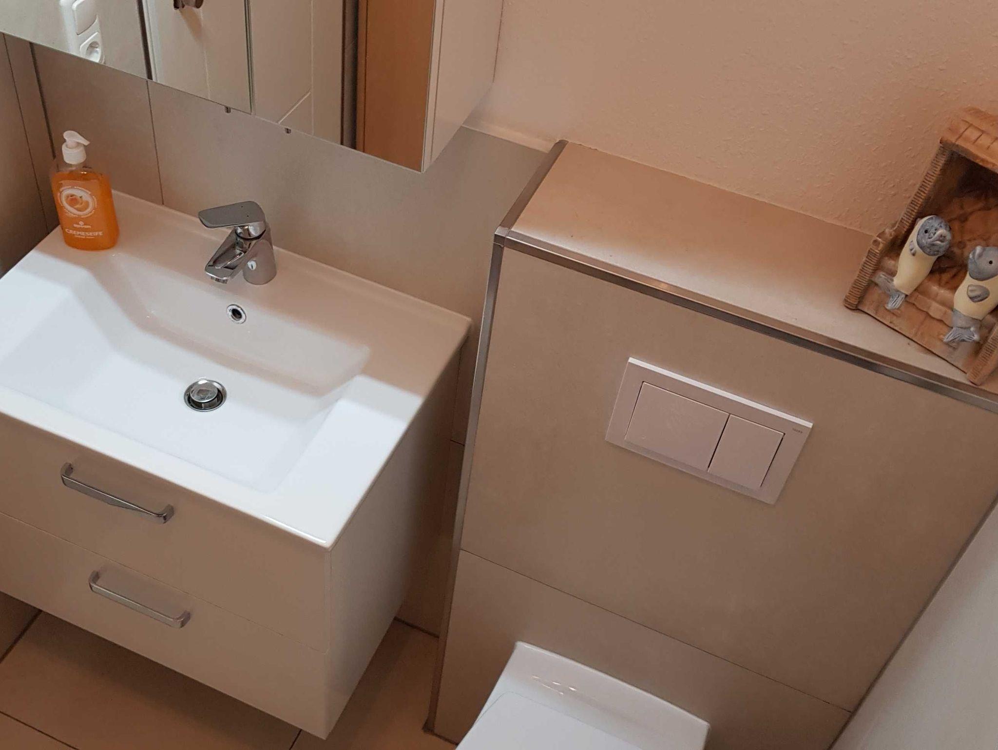 Die FEWO ist für zwei Personen üppig groß und insgesamt gut ausgestattet. Die fehlende Spülmaschine fällt bei zwei Personen kaum ins Gewicht, das fehlende W-Lan ist nicht mehr zeitgemäß. Auch die weißen Plastikstühle auf den Balkonen sollten einmal erneuert werden.
