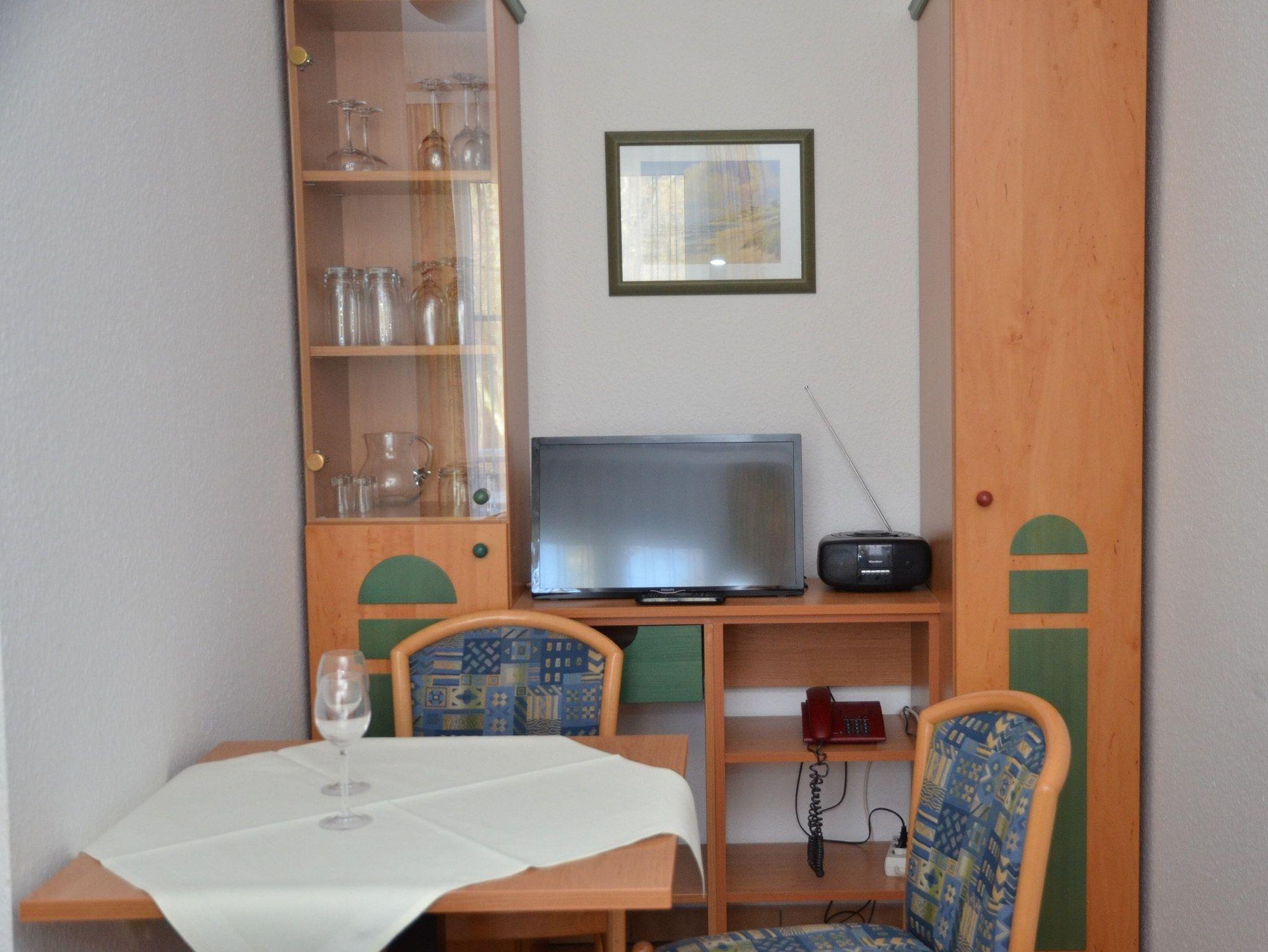 Die modern eingerichteten 2-Raum-Appartements dieser Kategorie sind für maximal 3 Personen geeignet und ca. 32 qm groß. Sie verfügen über einen Wohn-/Schlafraum mit Schlafcouch für 1 Person und ein separates Schlafzimmer (Doppelbett oder 2 Einzelbetten). Alle unsere Wohnungen sind Nichtraucher-Wohnungen. Bei einigen Appartements können Sie Ihr Haustier mitbringen (s. Zimmerdaten). Ausstattung: Sat-TV, Radio und teilweise Telefon, Küchenzeile, Dusche/WC, möblierte Terrasse oder Balkon. Bettwäsche und Handtücher als Erstausstattung.