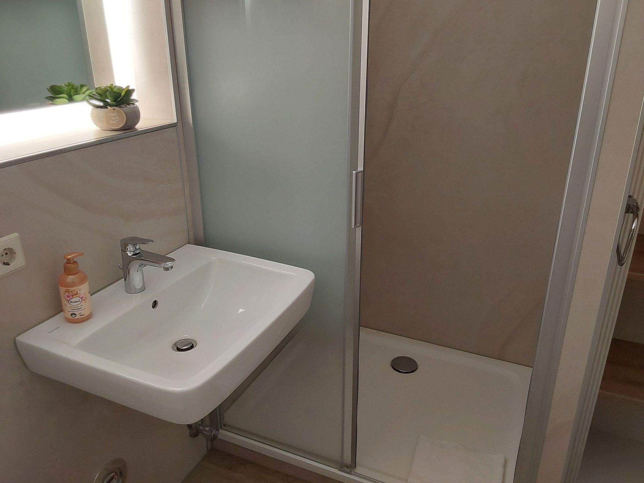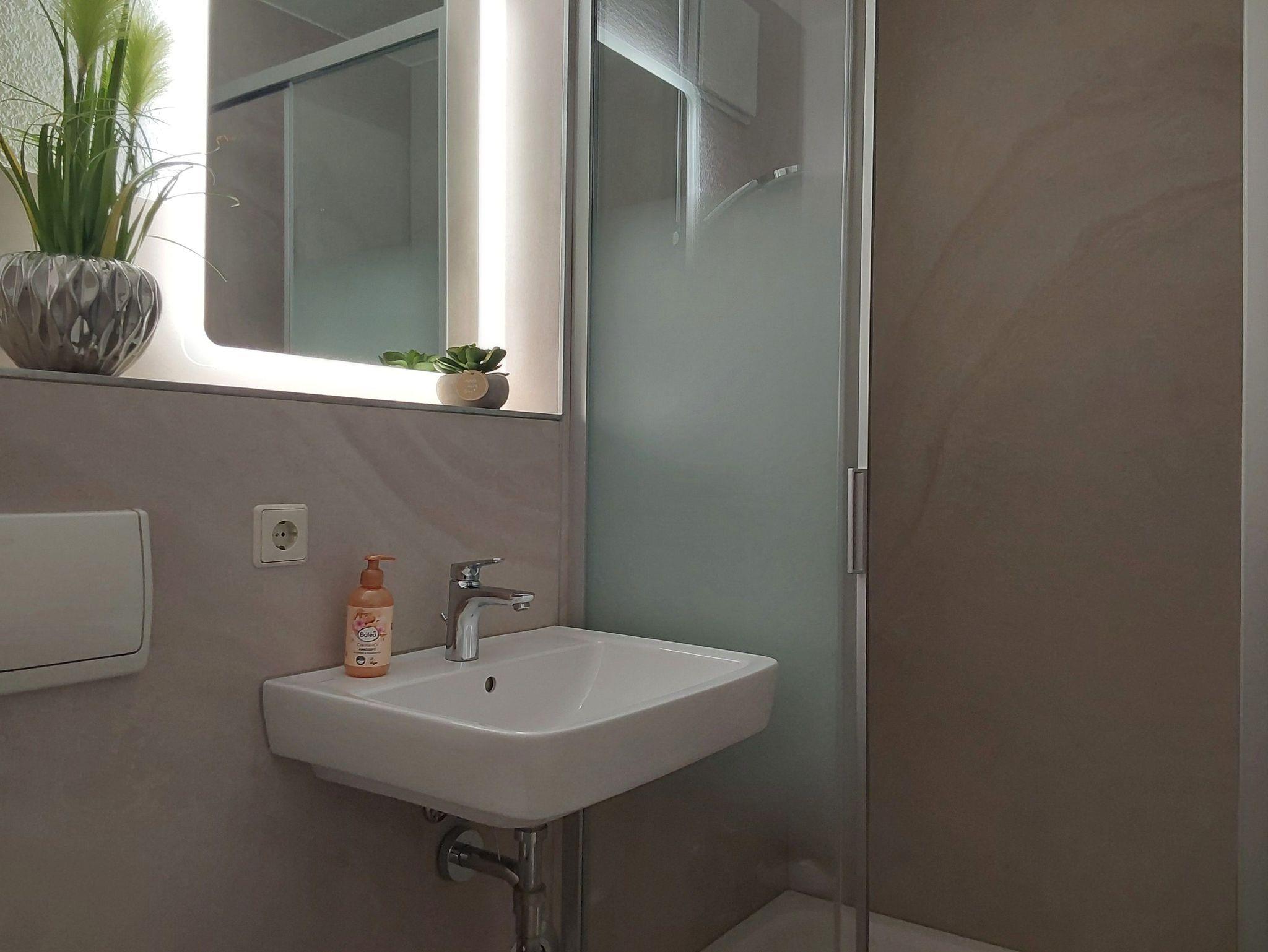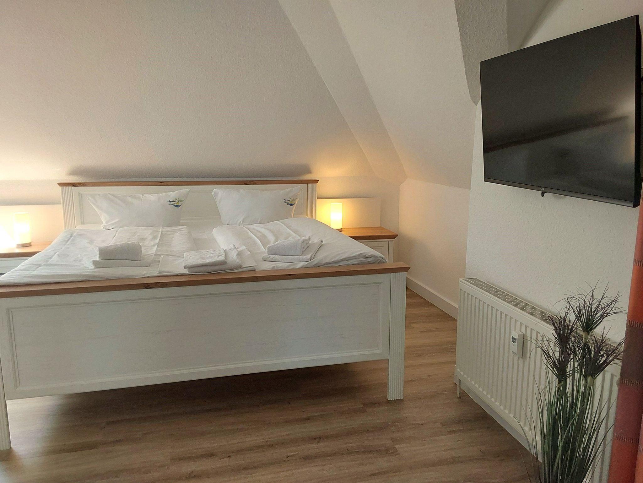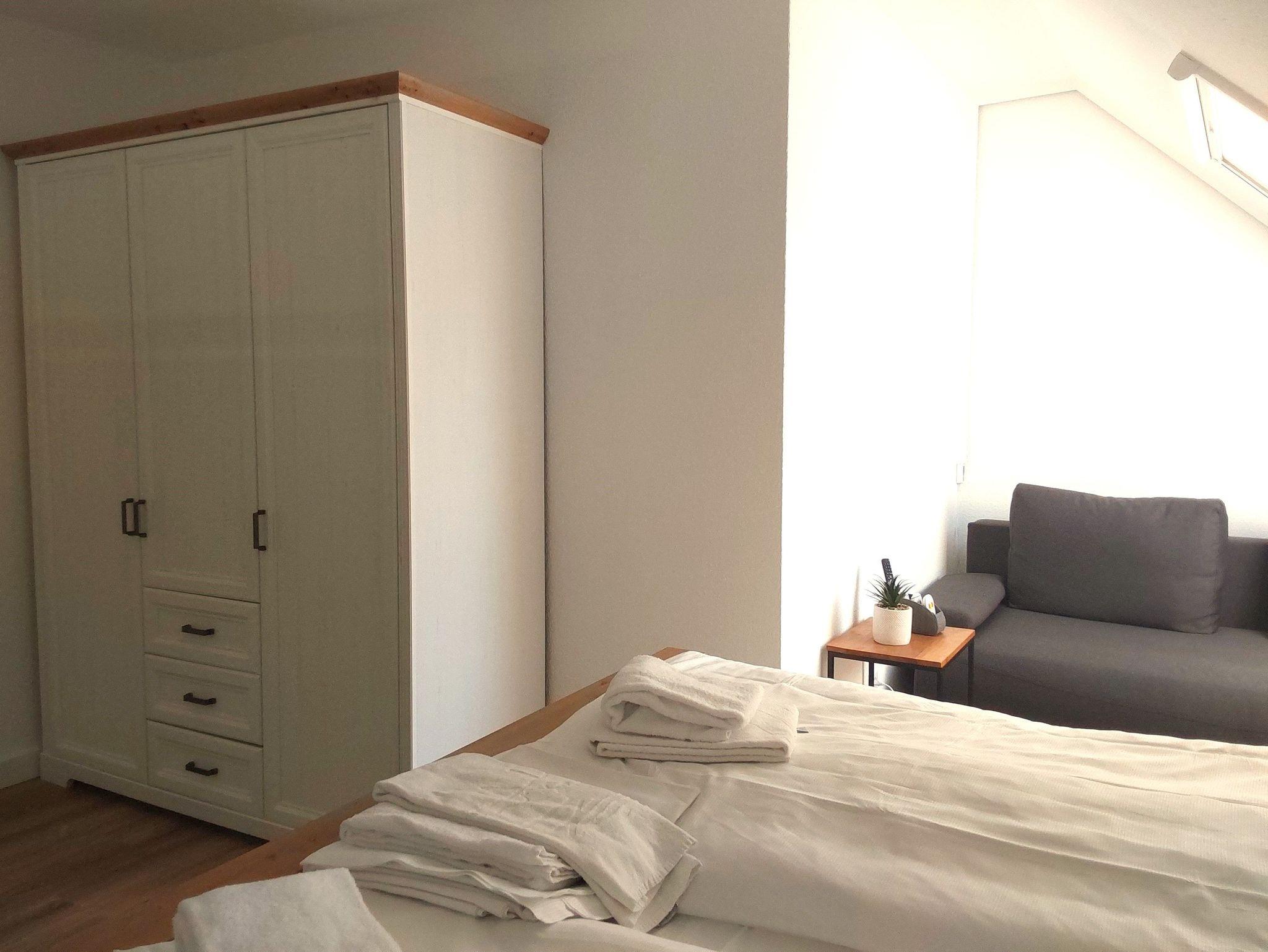 Die FEWO ist für zwei Personen üppig groß und insgesamt gut ausgestattet. Die fehlende Spülmaschine fällt bei zwei Personen kaum ins Gewicht, das fehlende W-Lan ist nicht mehr zeitgemäß. Auch die weißen Plastikstühle auf den Balkonen sollten einmal erneuert werden.