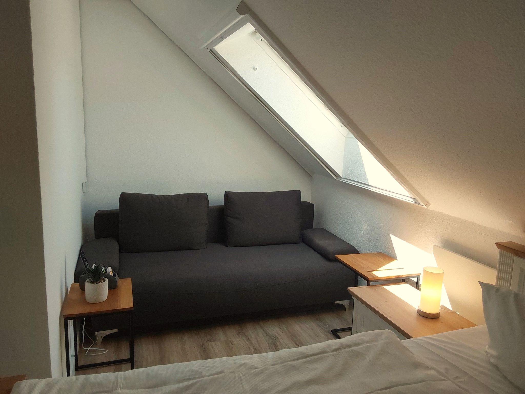 Die Dachschrägen in der Wohnung stellen für große Gäste eine Unfallgefahr dar. Fünf Kollisionen sind nicht vergügungsteuerpflichtig. Vielleicht besteht insbesondere im Wohnzimmer eine Möglichkeit, durch Umstellung von Möbeln eine Verbesserung zu erreichen.