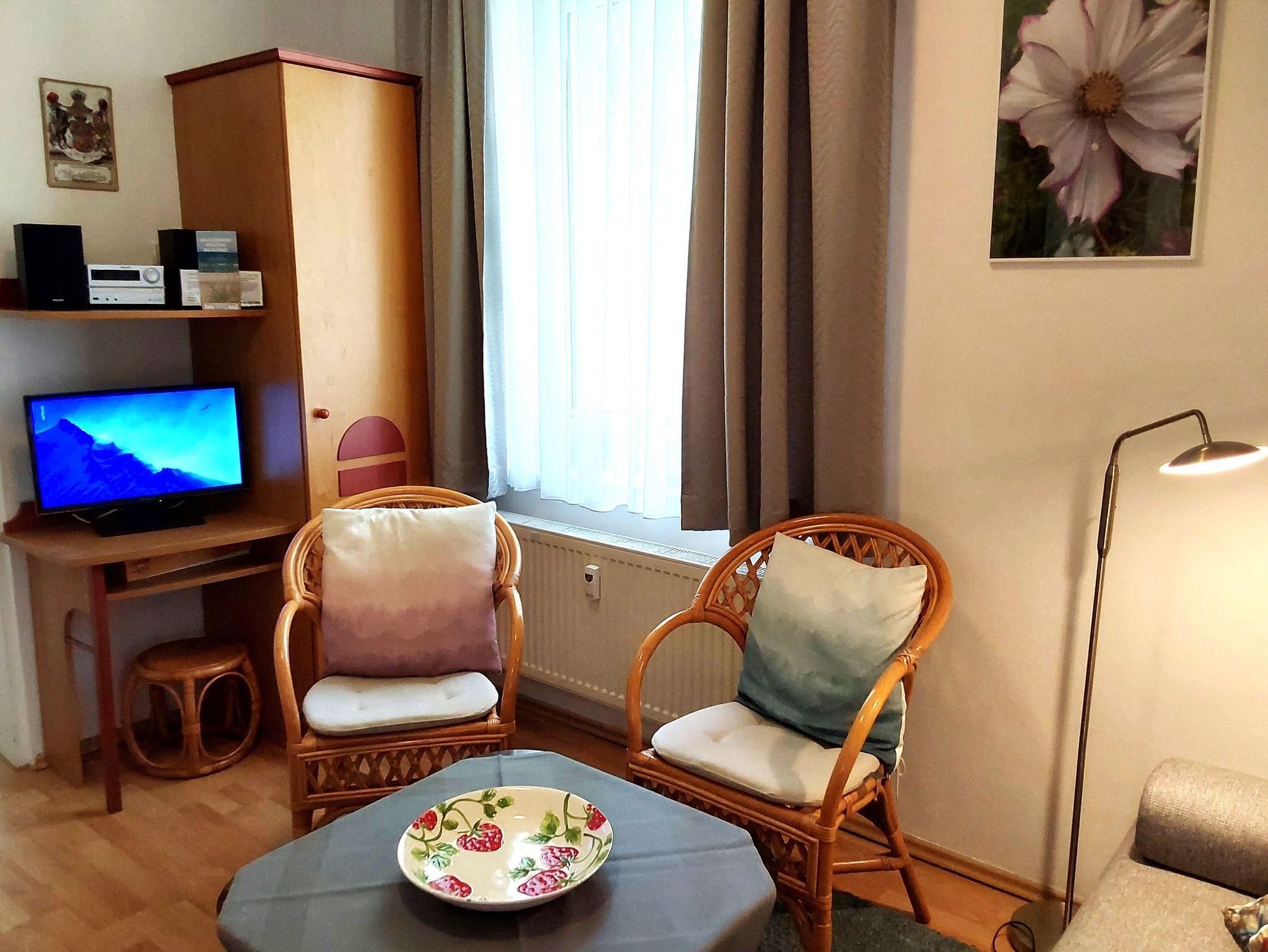 Die modern eingerichteten 2-Raum-Appartements dieser Kategorie sind für maximal 3 Personen geeignet und ca. 32 qm groß. Sie verfügen über einen Wohn-/Schlafraum mit Schlafcouch für 1 Person und ein separates Schlafzimmer (Doppelbett oder 2 Einzelbetten). Alle unsere Wohnungen sind Nichtraucher-Wohnungen. Bei einigen Appartements können Sie Ihr Haustier mitbringen (s. Zimmerdaten). Ausstattung: Sat-TV, Radio und teilweise Telefon, Küchenzeile, Dusche/WC, möblierte Terrasse oder Balkon. Bettwäsche und Handtücher als Erstausstattung.