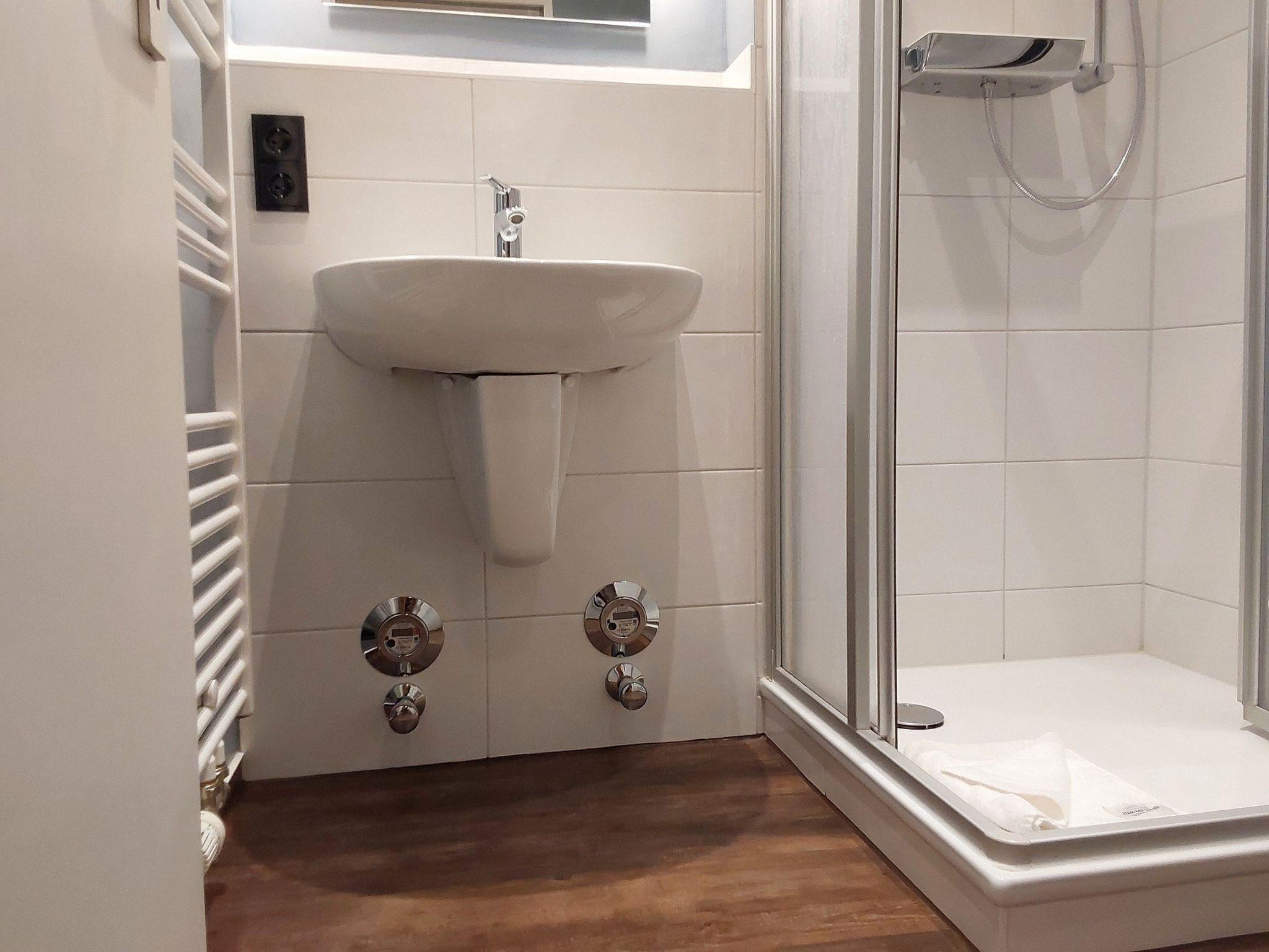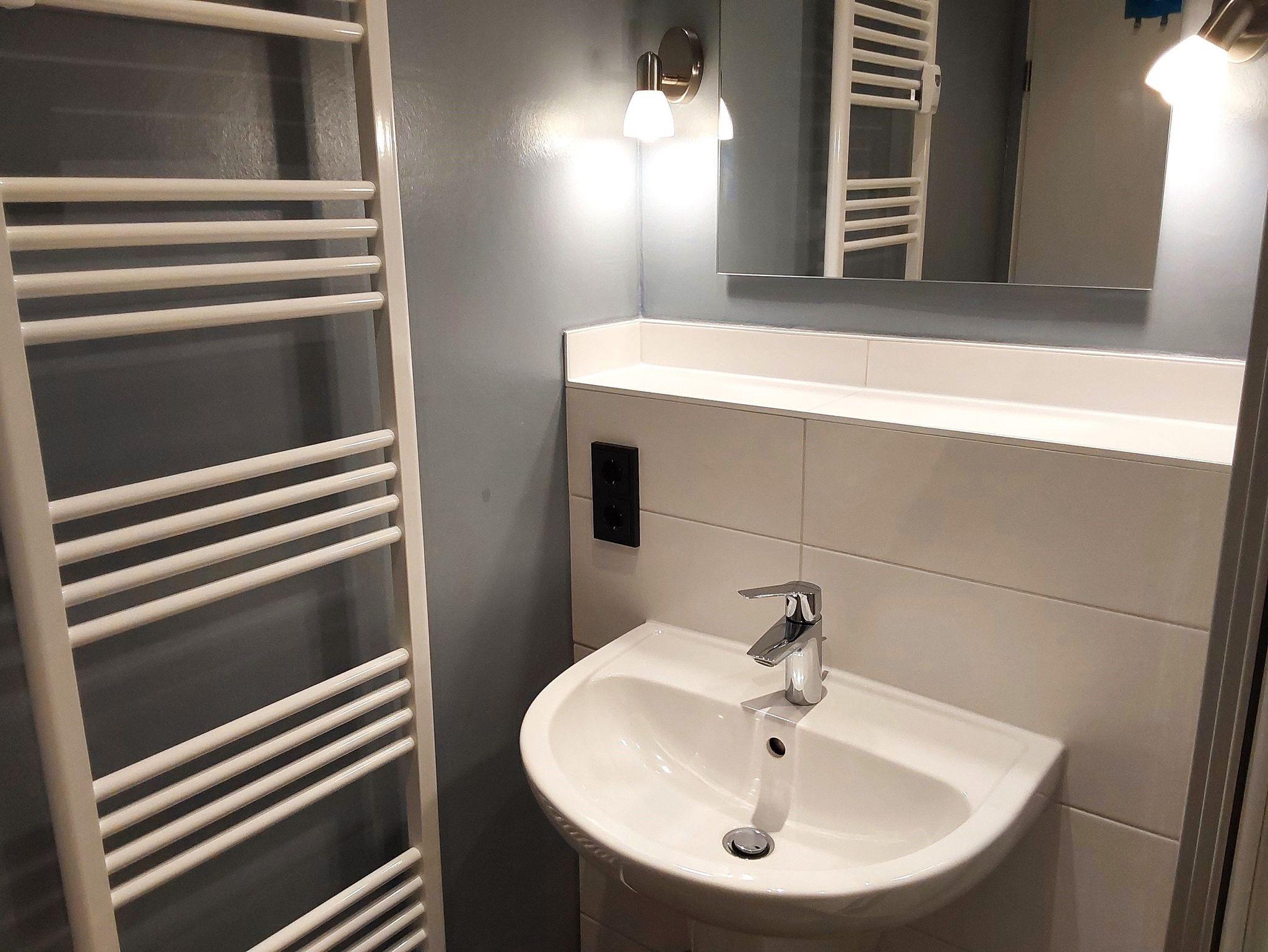 Die FEWO ist für zwei Personen üppig groß und insgesamt gut ausgestattet. Die fehlende Spülmaschine fällt bei zwei Personen kaum ins Gewicht, das fehlende W-Lan ist nicht mehr zeitgemäß. Auch die weißen Plastikstühle auf den Balkonen sollten einmal erneuert werden.