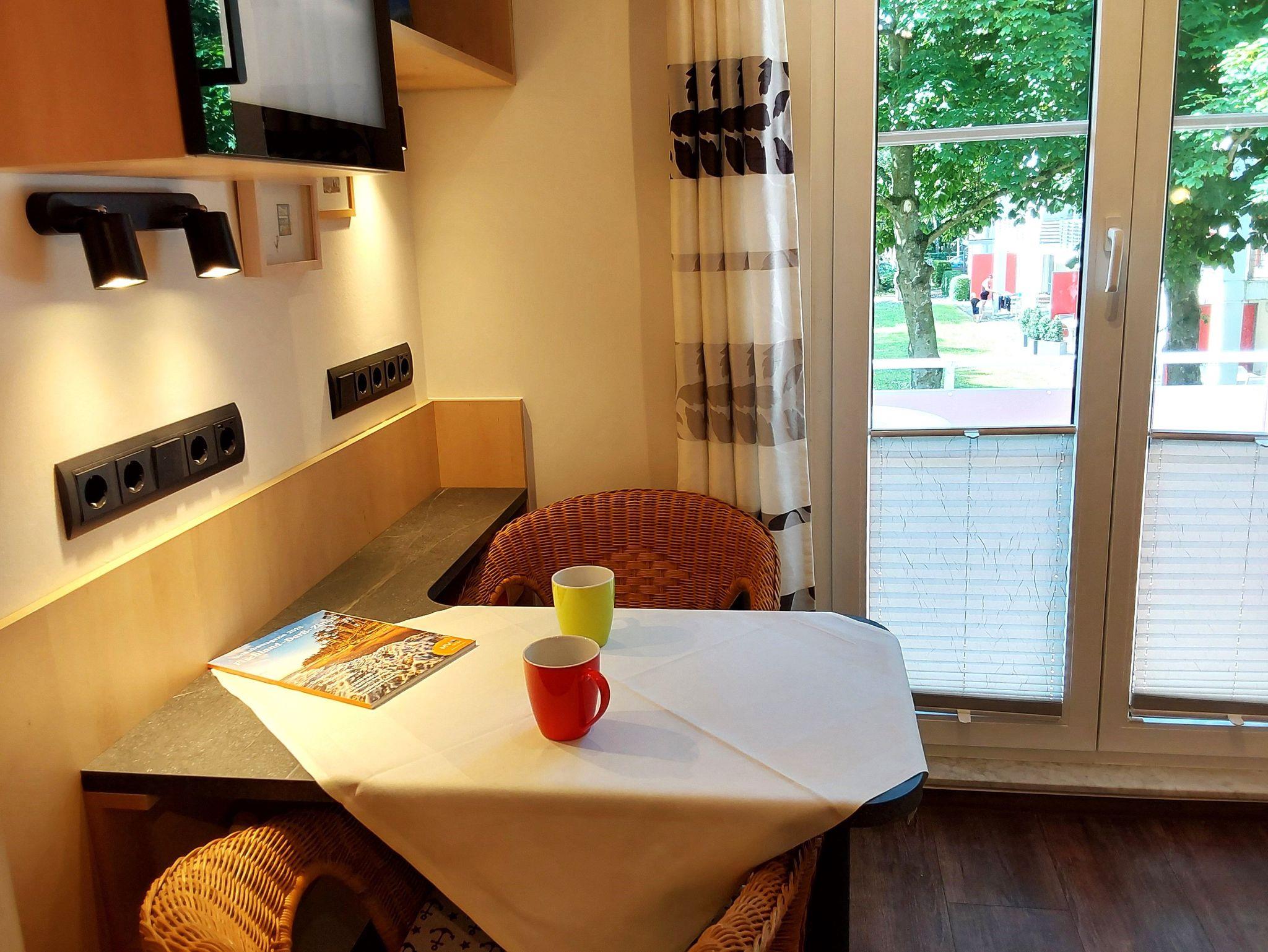 Die modern eingerichteten 1-Raum-Appartements dieser Kategorie sind für maximal 2 Personen geeignet und ca. 21 qm groß. Sie verfügen über einen Wohn-/Schlafraum für 2 Personen. Alle unsere Wohnungen sind Nichtraucher-Wohnungen. Bei einigen Appartements können Sie Ihr Haustier mitbringen (s. Zimmerdaten). Ausstattung: Sat-TV, Radio, Küchenzeile, Dusche/WC, möblierte Terrasse oder Balkon. Bettwäsche und Handtücher als Erstausstattung.