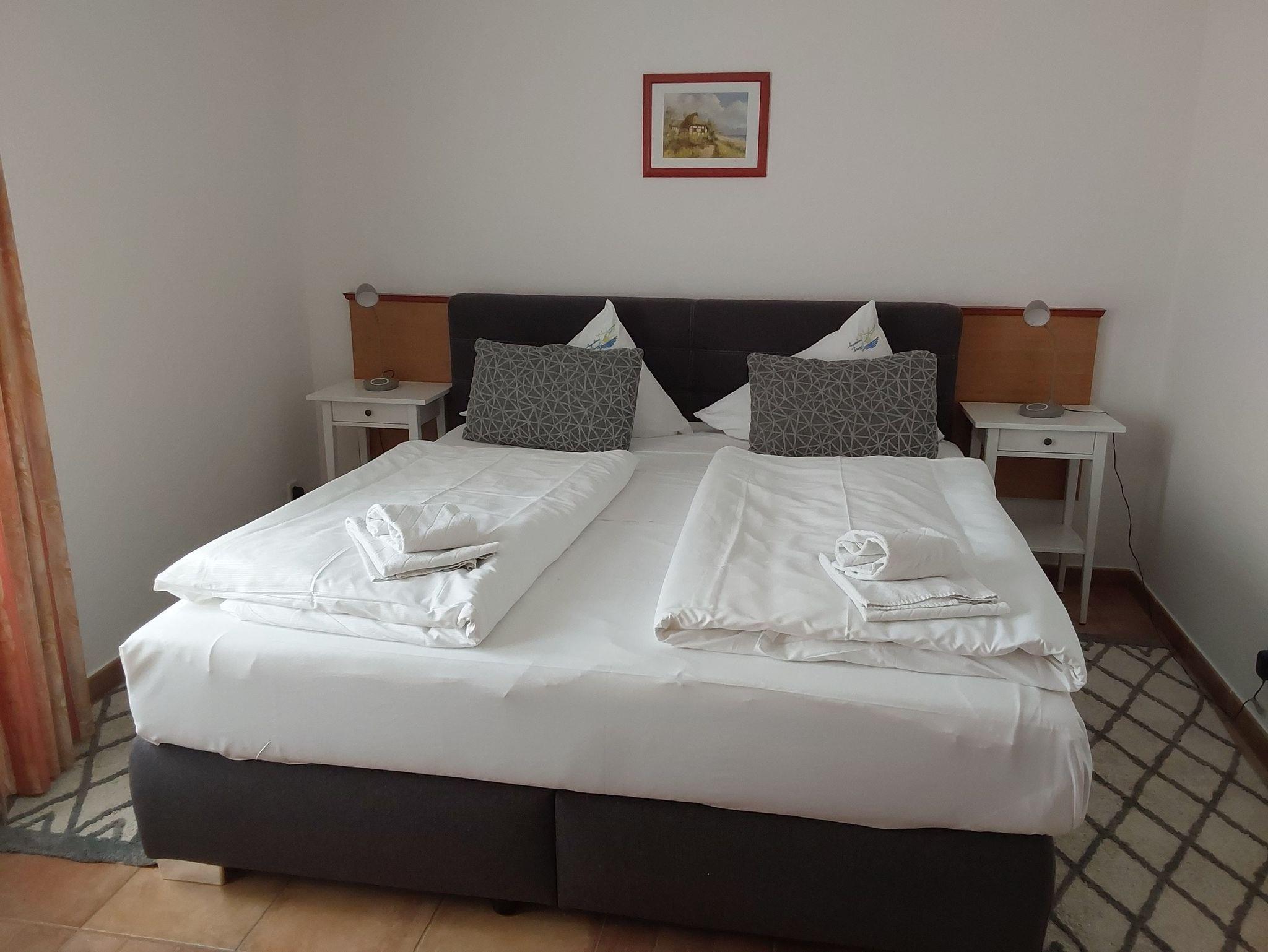 Die modern eingerichteten 2-Raum-Appartements dieser Kategorie sind für 4 Personen geeignet und ca. 46 qm groß. Sie verfügen über einen Wohn-/Schlafraum mit Schlafcouch für 2 Personen und ein separates Schlafzimmer (Doppelbett oder 2 Einzelbetten). Alle unsere Wohnungen sind Nichtraucher-Wohnungen. Bei einigen können Sie Ihr Haustier mitbringen (s. Zimmerdaten). Ausstattung: Sat-TV, Radio und teilweise Telefon, Küchenzeile, Dusche/WC, möblierte Terrasse oder Balkon. Bettwäsche und Handtücher als Erstausstattung.