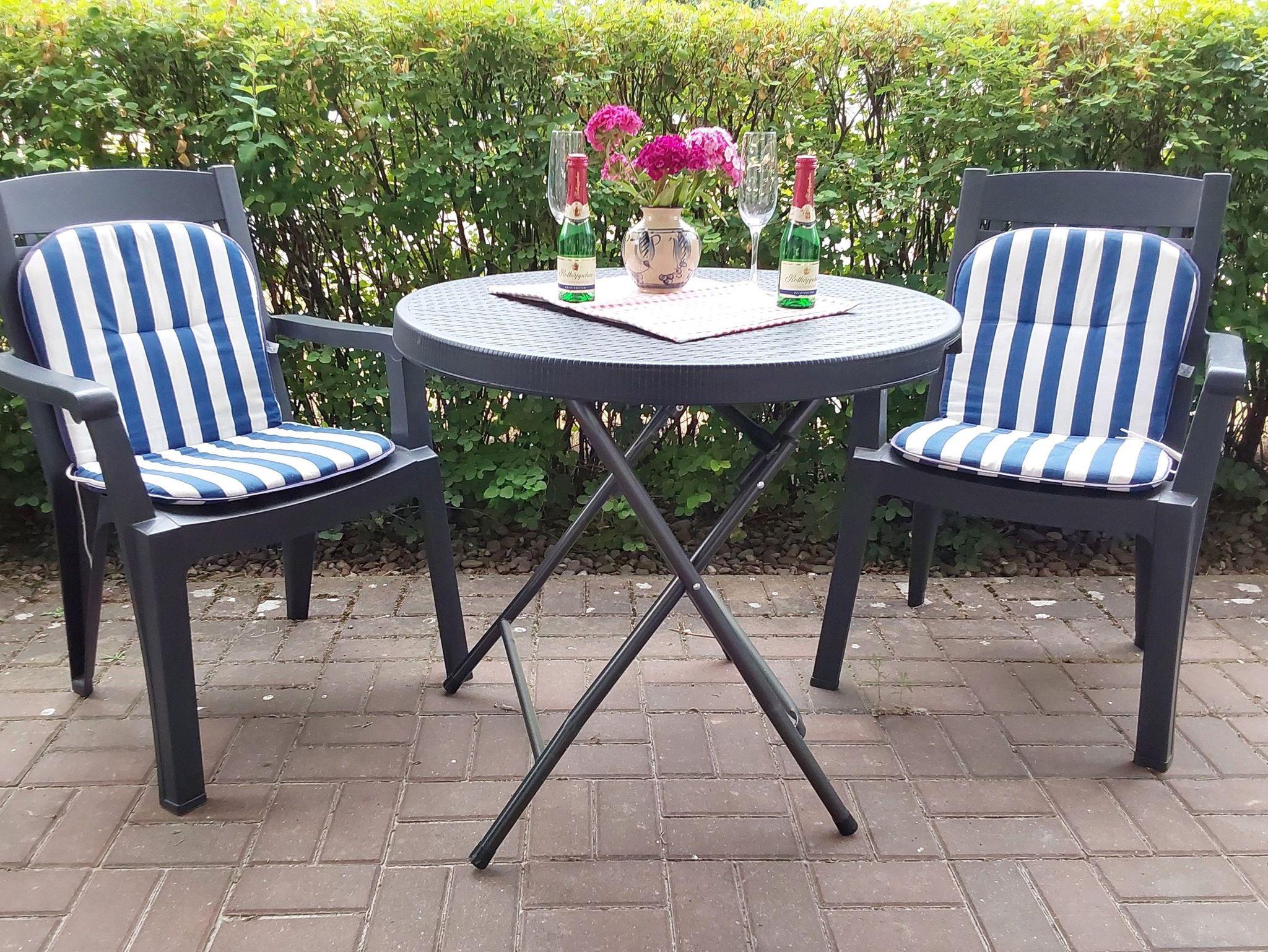 Die FEWO ist für zwei Personen üppig groß und insgesamt gut ausgestattet. Die fehlende Spülmaschine fällt bei zwei Personen kaum ins Gewicht, das fehlende W-Lan ist nicht mehr zeitgemäß. Auch die weißen Plastikstühle auf den Balkonen sollten einmal erneuert werden.
