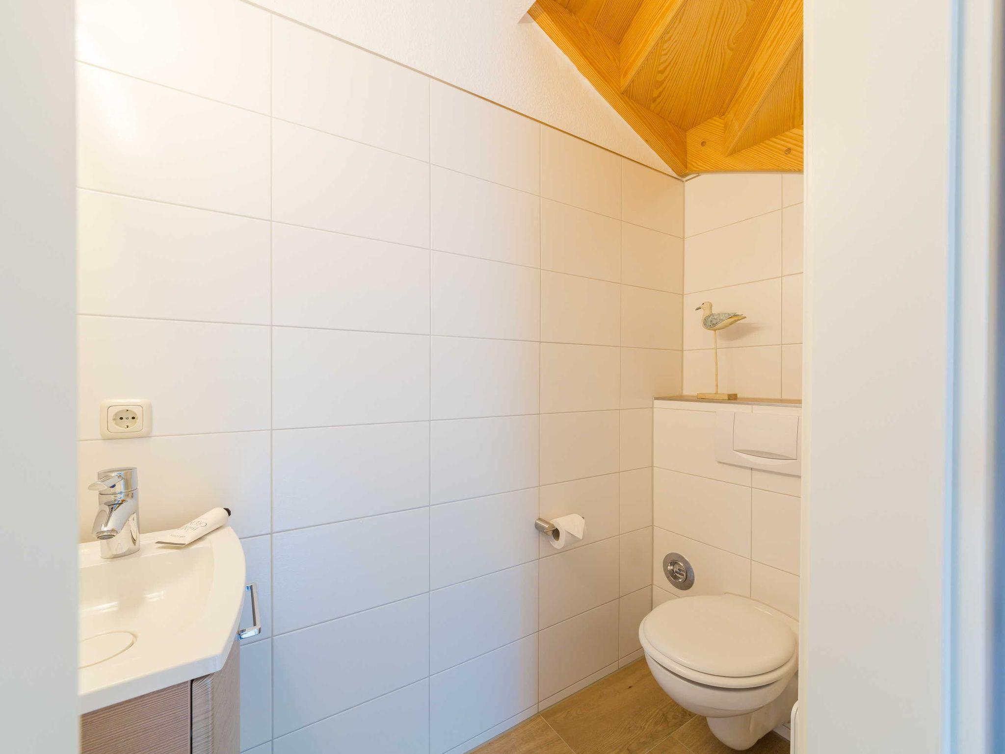 Das Badezimmer ist mit Dusche/WC und Münz-Waschmaschine ausgestattet. Zusätzlich gibt es ein separates Gäste-WC.