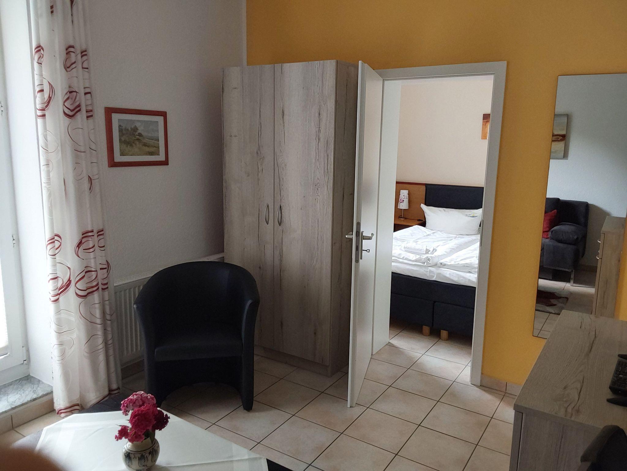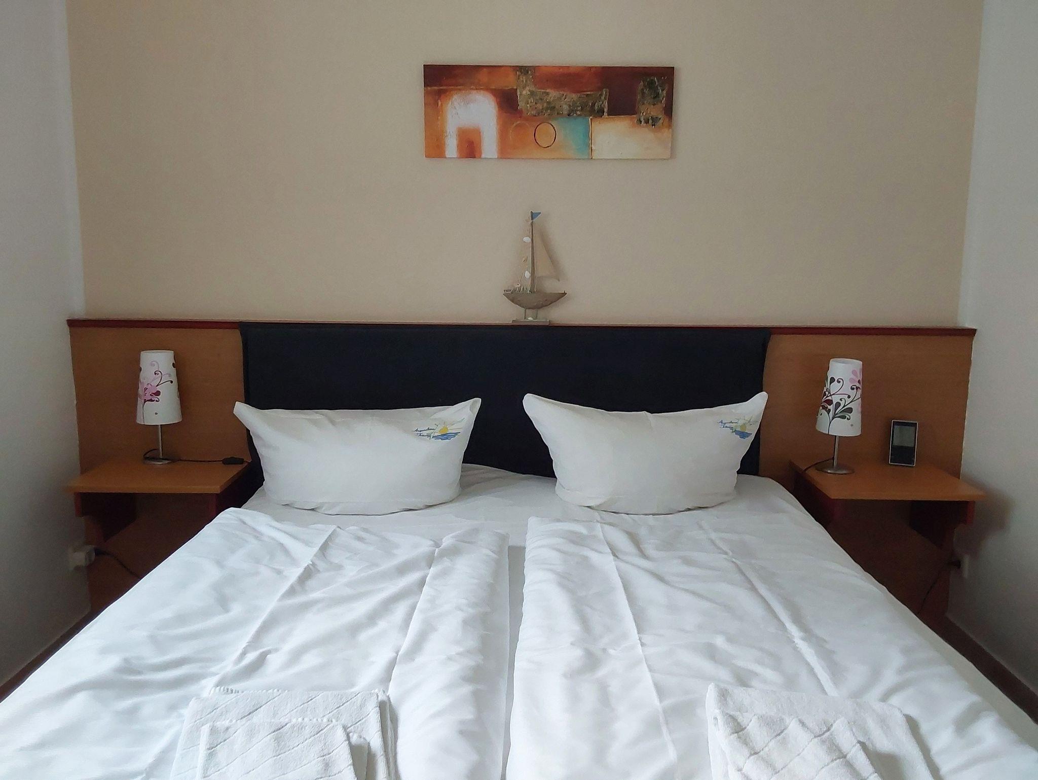 Die modern eingerichteten 2-Raum-Appartements dieser Kategorie sind für maximal 3 Personen geeignet und ca. 32 qm groß. Sie verfügen über einen Wohn-/Schlafraum mit Schlafcouch für 1 Person und ein separates Schlafzimmer (Doppelbett oder 2 Einzelbetten). Alle unsere Wohnungen sind Nichtraucher-Wohnungen. Bei einigen Appartements können Sie Ihr Haustier mitbringen (s. Zimmerdaten). Ausstattung: Sat-TV, Radio und teilweise Telefon, Küchenzeile, Dusche/WC, möblierte Terrasse oder Balkon. Bettwäsche und Handtücher als Erstausstattung.