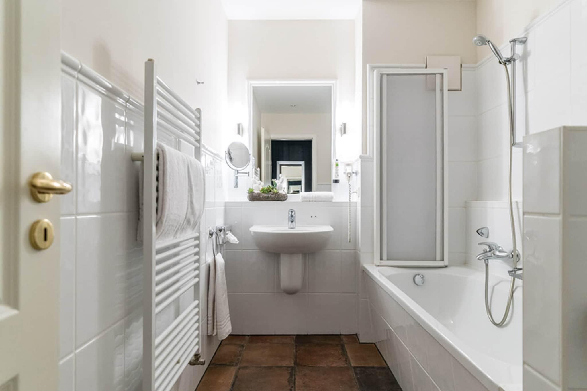 Denne eksklusive lejlighed har plads til op til to personer – ideel til par eller solorejsende, der værdsætter komfort og ro. Det separate soveværelse sikrer privatliv, mens den hyggelige opholdsstue inviterer dig til at slappe af. Det moderne badeværelse fuldender den rummelige bolig. Med møbler af høj kvalitet, en charmerende atmosfære og en rolig beliggenhed er denne lejlighed det perfekte tilflugtssted – uanset om det er til en kort tur eller et længere ophold. Her kan du nyde privatliv og komfort i en afslappet atmosfære. Prisen inkluderer internetadgang på hele hotellet og gratis parkering. Det 4.500 m² store wellness- og spa-område med swimmingpool, saunakompleks og stort fitnessrum kan benyttes mod et gebyr: swimmingpool og sauna koster EURO20 pr. person/dag, og fitnessområdet koster EURO15 pr. person/dag. Daglige aktiviteter såsom yoga, vandfitness og rygfitness fuldender programmet. I skoleferierne venter et varieret børnepasningsprogram på børnene. Skift af sengetøj er inkluderet ved ophold på 7 dage eller mere; yderligere mellemrengøring med skift af sengetøj kan bookes på stedet for EURO150.