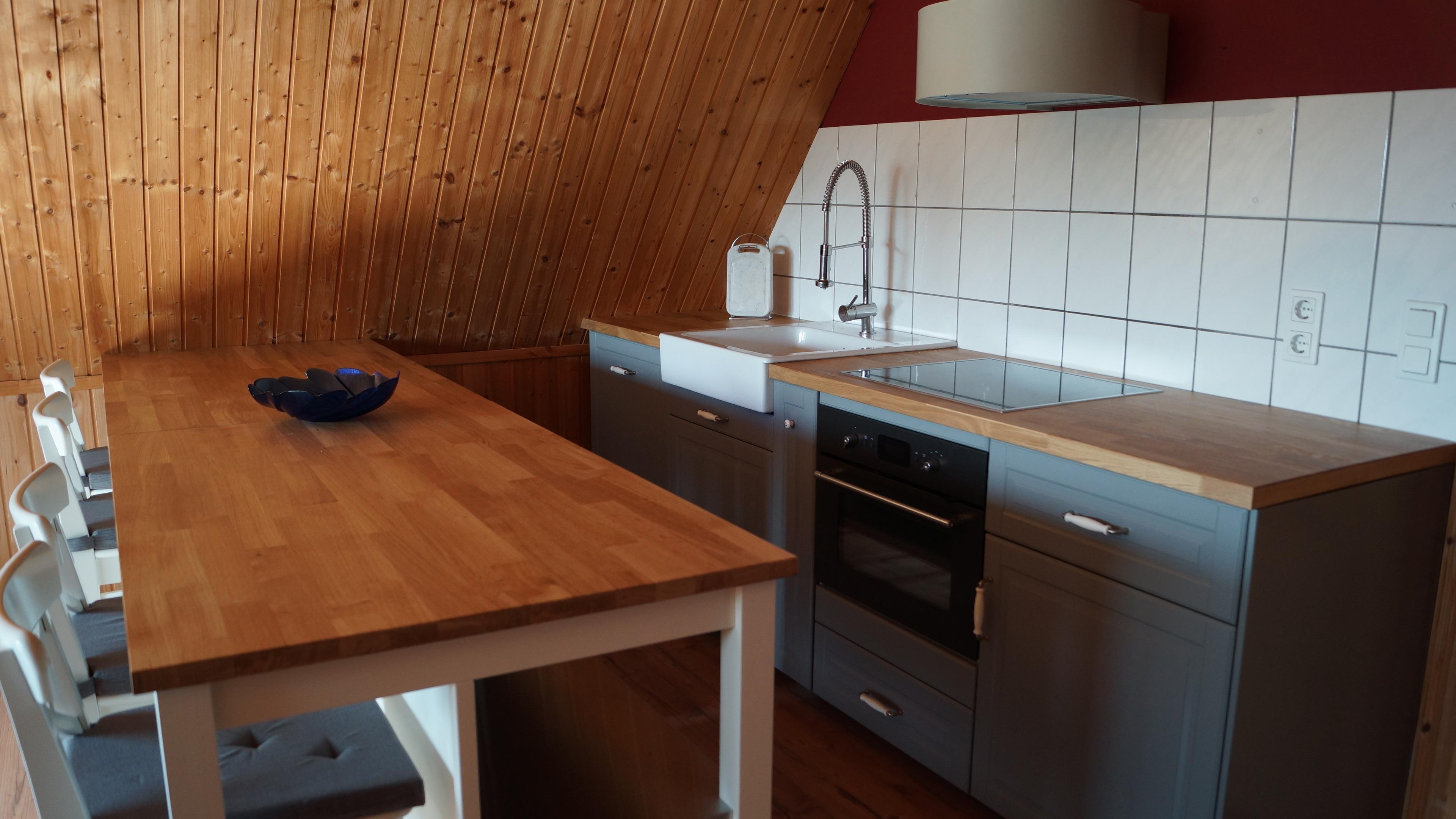 Die gut ausgestattete Küche besitzt unter anderem einen Kühlschrank, einen Herd zum Kochen und sogar eine Spülmaschine. Es gibt ein Schlafzimmer mit Doppelbett und einen niedrigen Spitzdachboden mit 2 Matratzen (für größere Kinder geeignet)