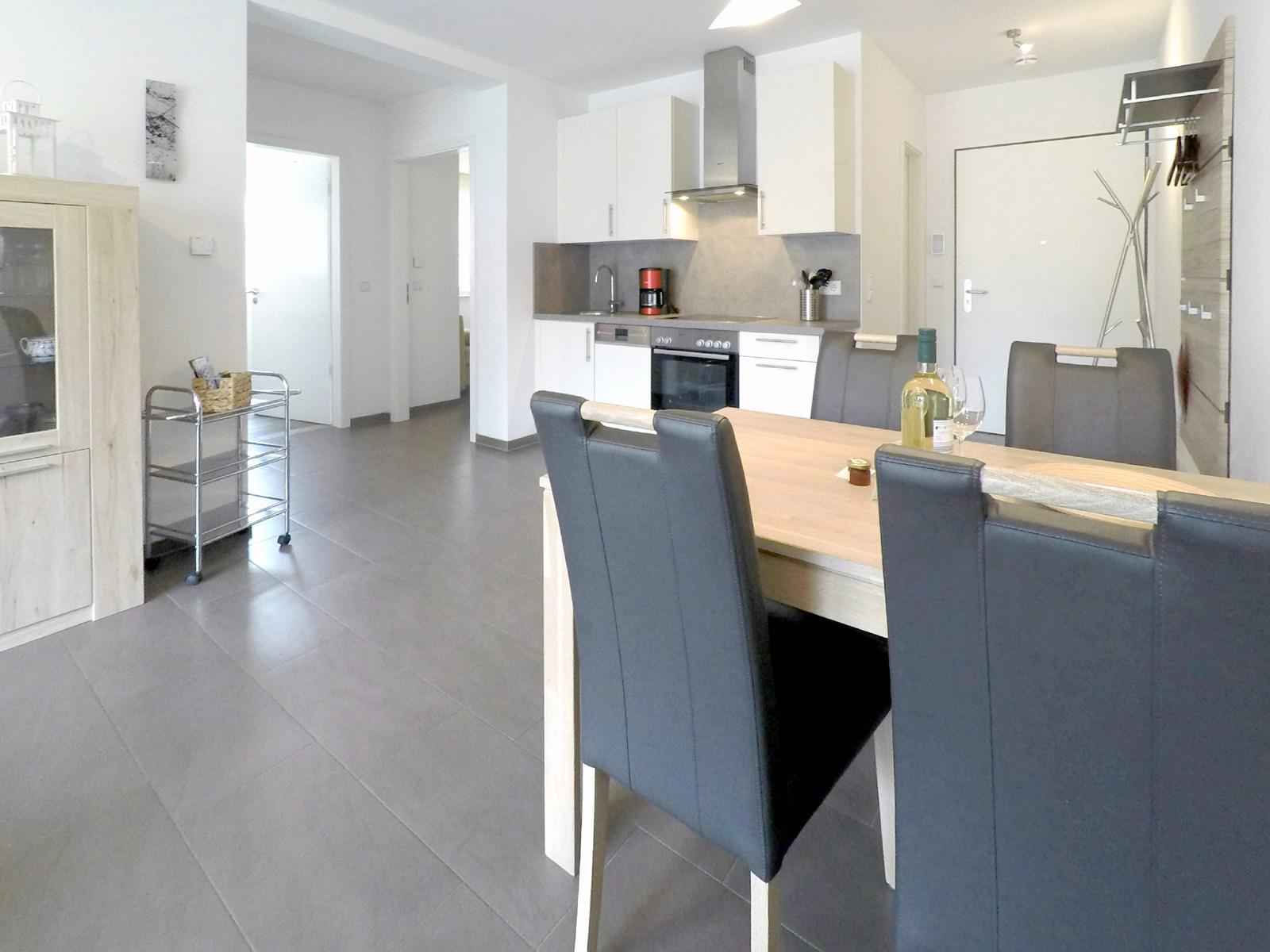 Das großzügige Wohnzimmer mit offener Wohnküche bietet viel Platz für die gesamte Familie (bis zu 4 Personen) und ist hochwertig und mit liebevollen Details ausgestattet. Bei der Ausstattung der Ferienwohnung wurde viel Wert darauf gelegt, dass sich unsere Gäste zu jeder Jahreszeit wohlfühlen und Ihre Auszeit am Meer voll und ganz genießen können.