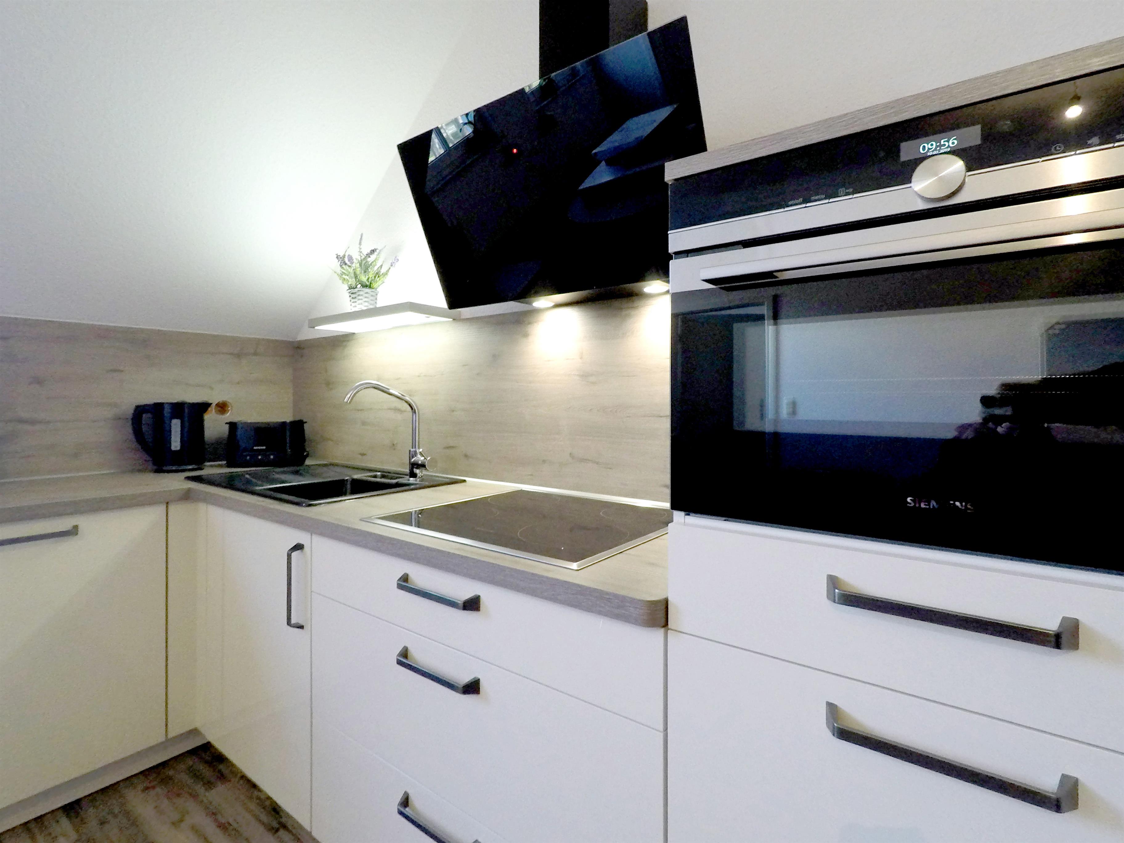 Das Wohnzimmer ist mit einem LED-Flachbildfernseher ausgestattet und die moderne und offene Wohnküche bietet Platz für die gesamte Familie. Babyreisebett und Kinderstuhl stellen wir unseren kleinen Ostseegäste gern gegen Aufpreis zur Verfügung.