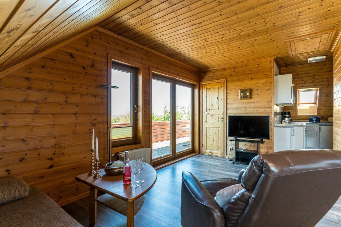 Eine Wohnung für 2 Personen im Obergeschoß des Hauses, ca. 52m² (ohne Boden), mit 25m² großer Terrasse. Eine zusätzliche Belegung für 2 Personen ist möglich.