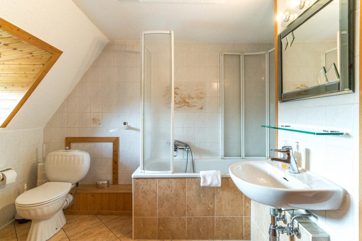 großes Bad mit Badewanne (integrierte Dusche), WC