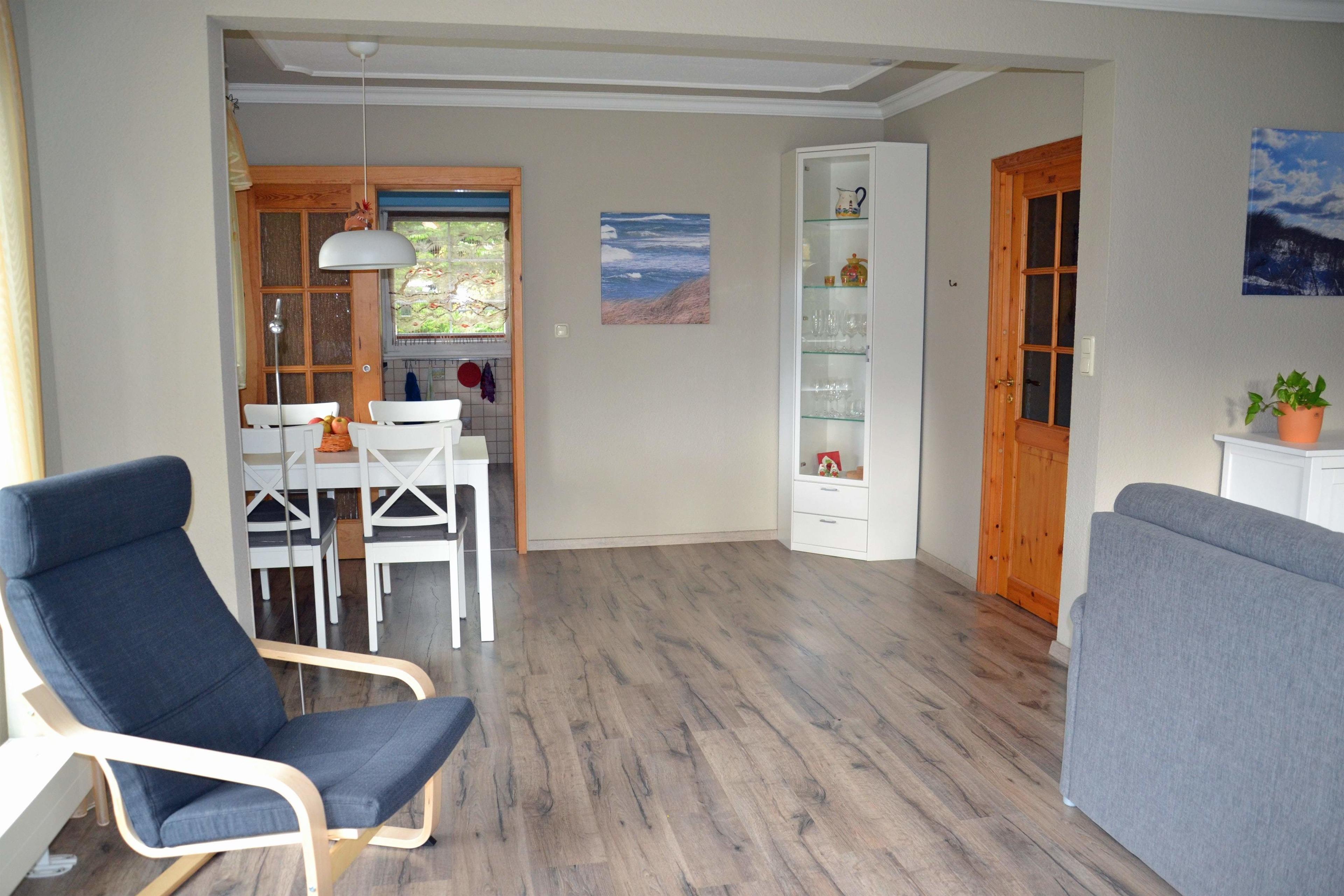 Die Ferienwohnung Nr. 1 befindet sich im Erdgeschoß des Haupthauses. Auf insgesamt 90 m² verteilen sich Wohn-, und Esszimmer, eine voll ausgestattete Küche, 2 Schlafzimmer, ein Duschbad und bietet ausreichend Platz für 4 Personen.