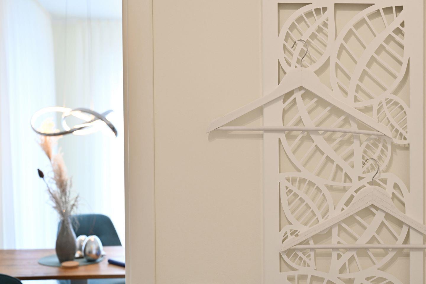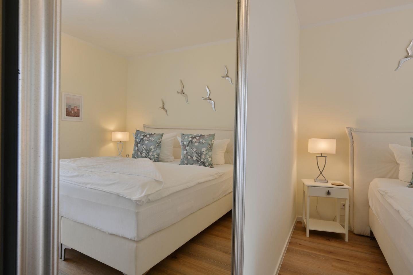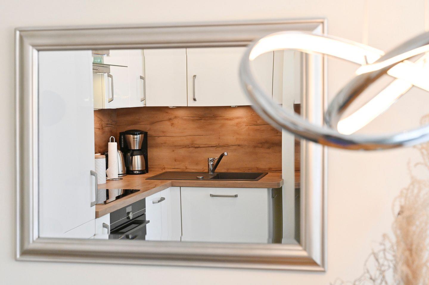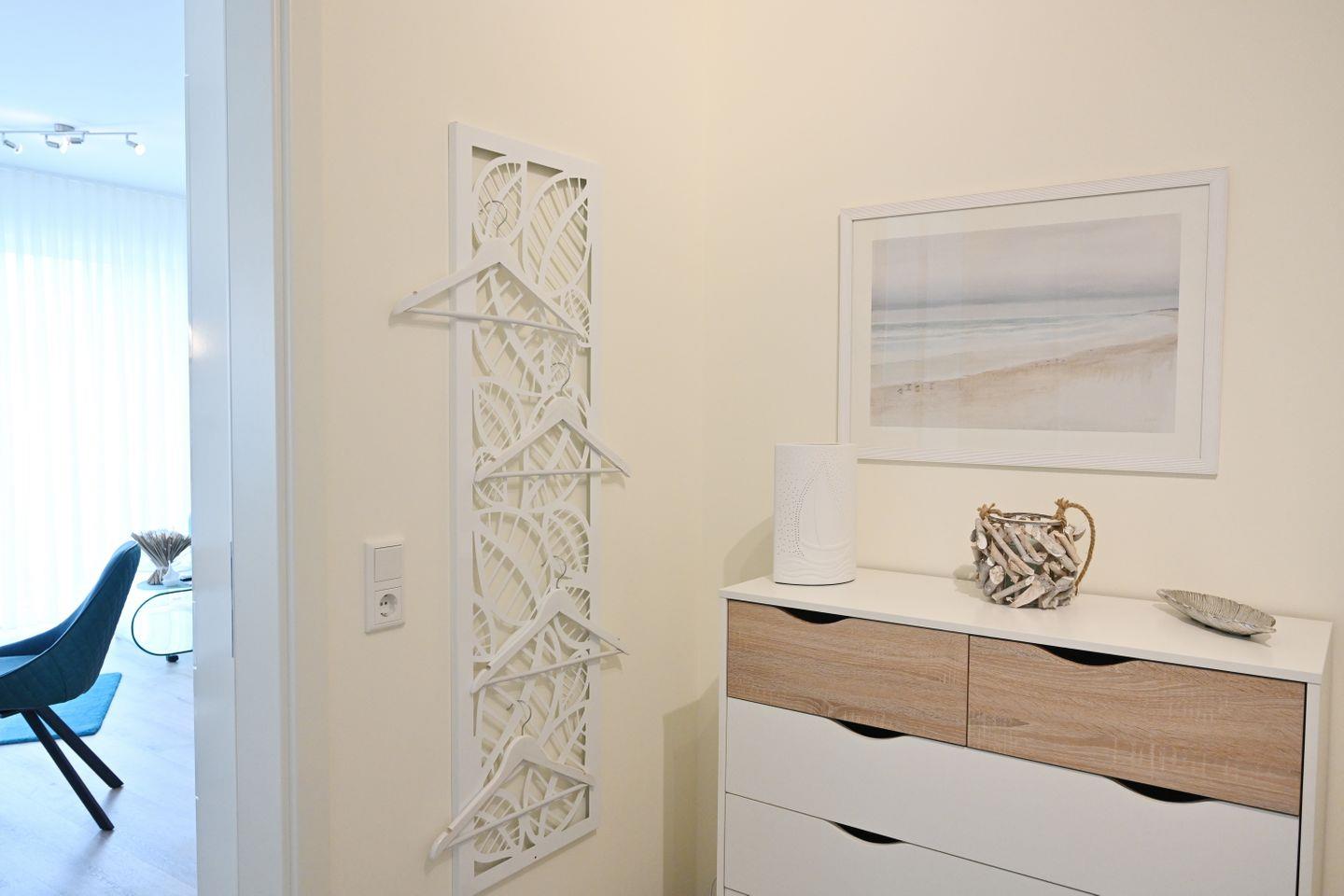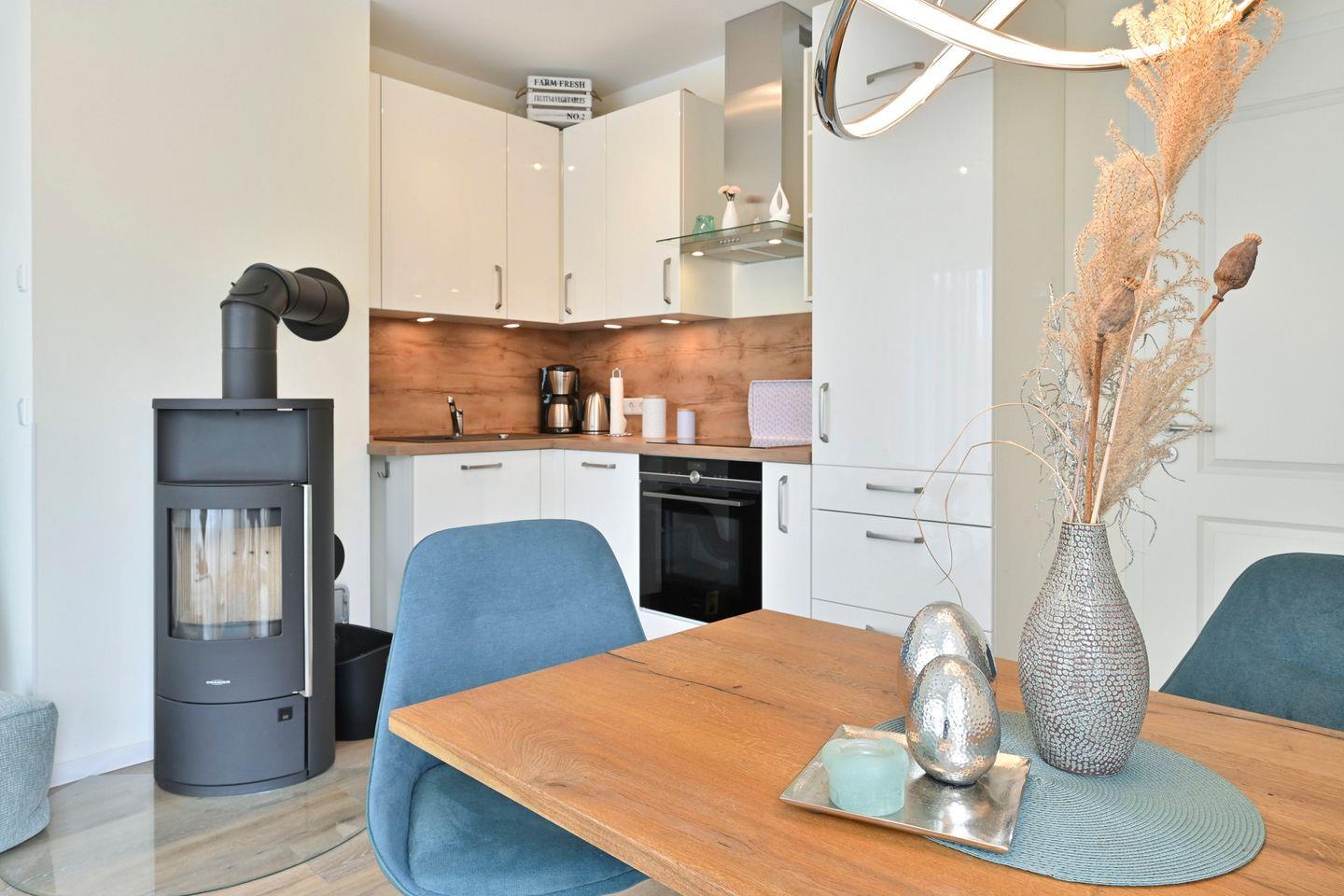 In dieser 56 m² großen Wohnung, gelegen im 1. Obergeschoss mit leichtem Zugang per Aufzug, finden Sie eine perfekte Balance aus Komfort und Stil. Der Wohn- und Essbereich empfängt Sie mit einem gemütlichen Kamin, ideal für entspannte Abende. Die moderne Küche ist voll ausgestattet, um Ihre kulinarischen Wünsche zu erfüllen, während das Schlafzimmer mit seinem komfortablen Boxspringbett zum Träumen einlädt. Das Badezimmer bietet eine bodenebene Dusche und Fußbodenheizung für zusätzlichen Komfort. Jedes Detail in der Wohnung ist darauf ausgerichtet, Ihren Aufenthalt so angenehm wie möglich zu gestalten. Elektrische Rollläden an allen Fenstern sorgen für Privatsphäre und eine angenehme Verdunkelung. Der nach Norden ausgerichtete Balkon öffnet sich zu einem atemberaubenden Blick und lädt zum Entspannen in der ruhigen Umgebung ein. Das Meerquartier bietet auch praktische Annehmlichkeiten wie einen eigenen Parkplatz und sichere Fahrradabstellmöglichkeiten. Ein besonderes Highlight ist die unmittelbare Nähe zum feinsandigen Ostseestrand – nur wenige Gehminuten entfernt, perfekt für sonnige Tage am Meer. Die Wohnung ist vollständig ausgestattet mit modernen Annehmlichkeiten wie WLAN, einer Waschmaschine, einer Spülmaschine und natürlich dem Kamin im Wohnbereich. Zudem ist sie haustierfreundlich, sodass Sie Ihren vierbeinigen Freund nicht zu Hause lassen müssen. Weitere Ausstattungsmerkmale wie ein Bügelbrett, Bügeleisen, Staubsauger und ein Abstellraum sorgen dafür, dass es Ihnen an nichts fehlt.