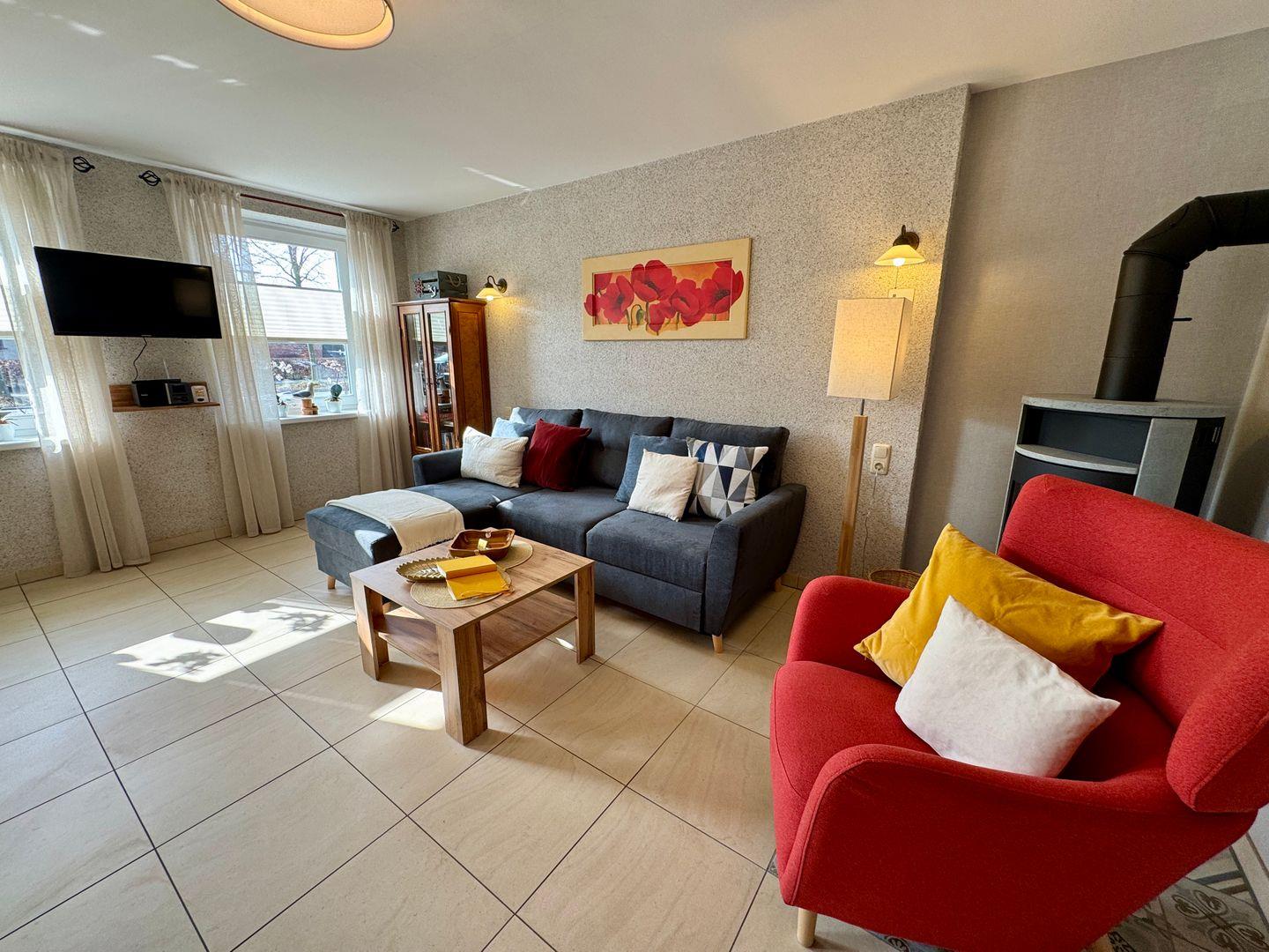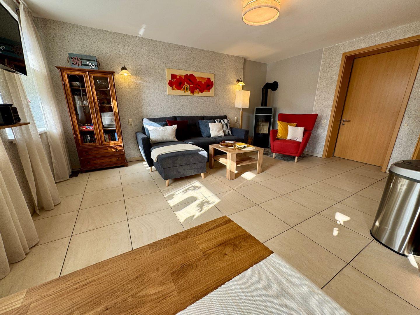 Barrierefreies Appartement „Meerurlaub“ in Dierhagen für bis zu 2 Personen. 50 m² modernes Parterre-Appartement mit rollstuhlgerechter Ausstattung, Fußbodenheizung, offener Wohnküche, gemütlicher Sofaecke, Kaminofen und barrierefreiem Bad mit bodengleicher Dusche. Terrasse mit Garten, PKW-Stellplatz, WLAN, Waschmaschine und Haustiere willkommen. Ideal für einen komfortablen, entspannten Ostseeurlaub.