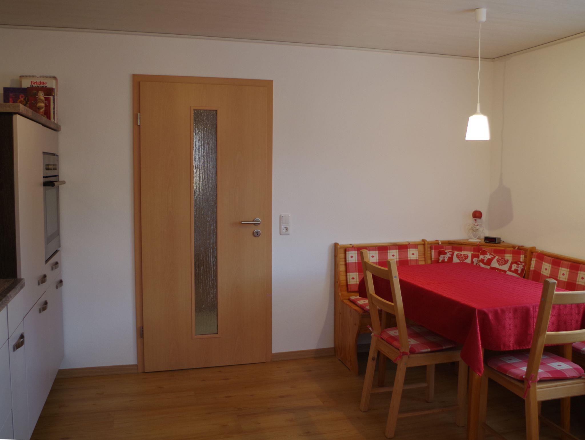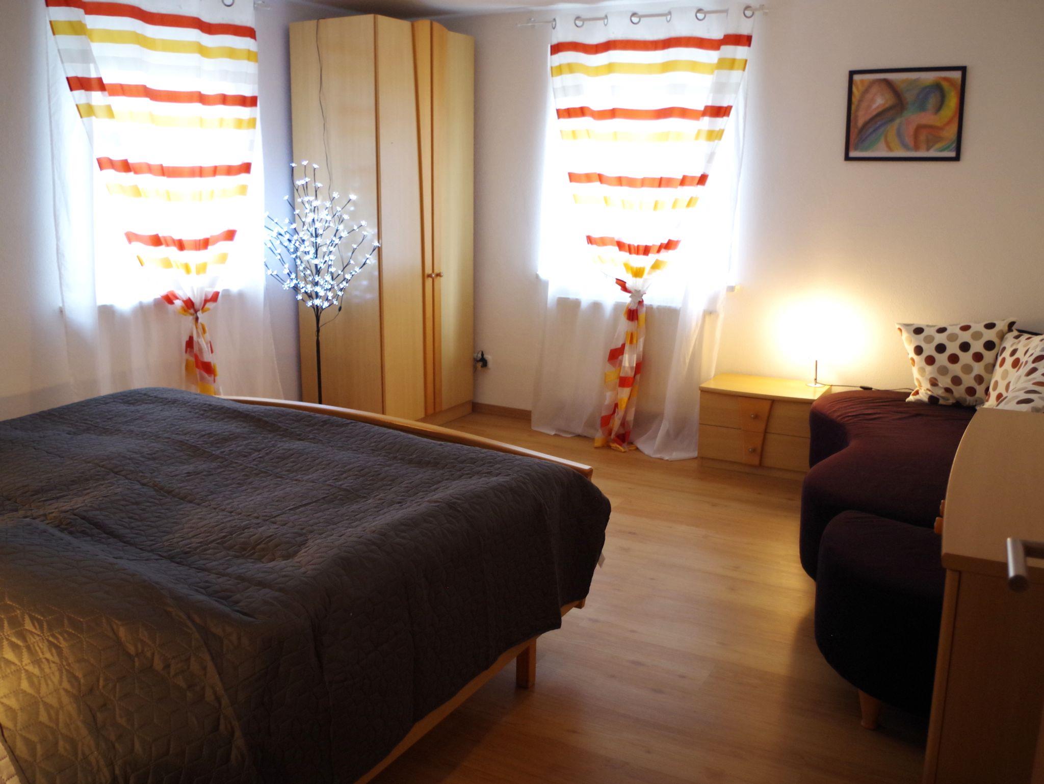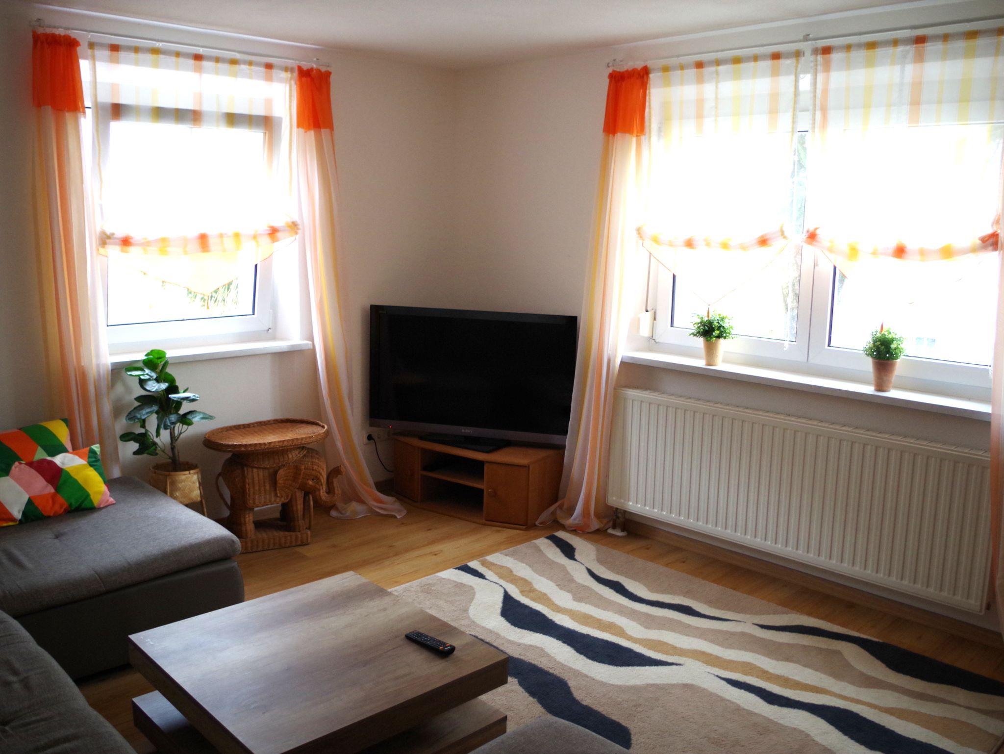 entsprechendes Geschirr. Als Essplatz dient eine gemütliche Eckbank-Sitzgruppe, die Platz für 4 Personen bietet. Spül- und Reinigungsmittel und -utensilien sind ausreichend vorhanden. Das Wohnzimmer überzeugt mit einem sehr großen Sofa, auf dem bei Bedarf auch geschlafen werden kann. Kontaktieren Sie uns dazu bitte bei Bedarf. Im Schlafzimmer befindet sich ein Doppelbett, sowie eine weitere Couch, die ebenfalls ggf. zum Schlafen genutzt werden könnte. Der Sanitärbereich besteht aus einem neuen, modernen Bad mit bodengleicher Dusche, Badewanne, sowie einem Waschtisch mit Spiegelschrank. Ein Fön ist vorhanden. In einem separaten Raum finden Sie das WC mit Handwaschtisch, dort stehen Staubsauger, Besen und weitere Putzmittel und -utensilien bereit. Ein Garderobenspiegel sowie eine Wandgarderobe und ein Schuhregal befinden sich im Flur. Ihren PKW können Sie kostenlos auf einem befestigten Stellplatz im Hof abstellen. Fahrräder können nach Absprache und gegen Gebühr (2 Euro pro Rad und Nacht) in unserer Garage über Nacht eingestellt werden.