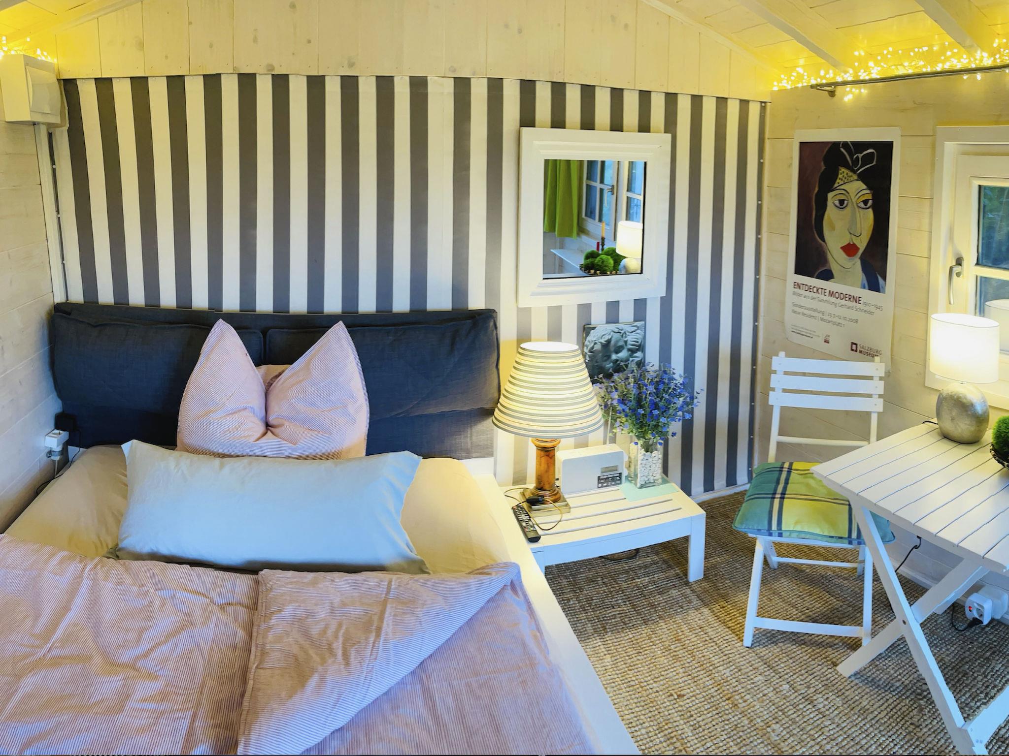Inside, you will find a cosy ambience that invites you to relax. The studio apartment is well equipped with amenities to make your stay comfortable. In addition to the option of self-catering thanks to the kitchen equipment with coffee machine, dishwasher, kettle and mini oven, you can look forward to a peaceful night's sleep in a comfortable box-spring bed. There are also practical details such as a washing machine for your sole use and a fan for hot summer days.