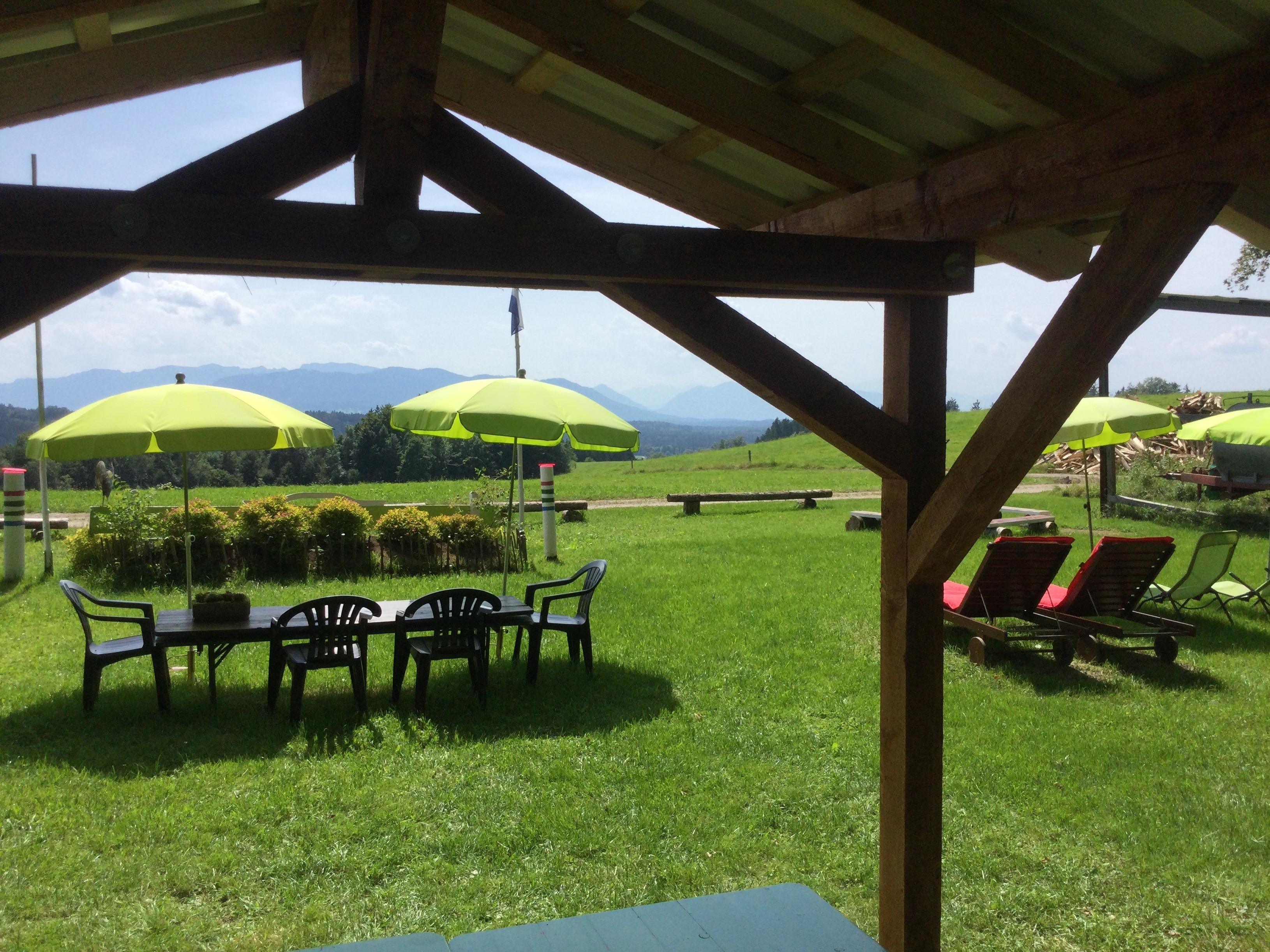 Darüber hinaus bieten wir Ihnen zur exklusiven Nutzung unsere 1 km entfernte am Berg gelegene Almwiese. Genießen Sie im Liegestuhl den traumhaften Panoramablick auf die Bayerische und Tiroler Alpenkette. Auch ein Grillabend bei Sonnenuntergang und offenem Feuer ist ein Erlebnis.