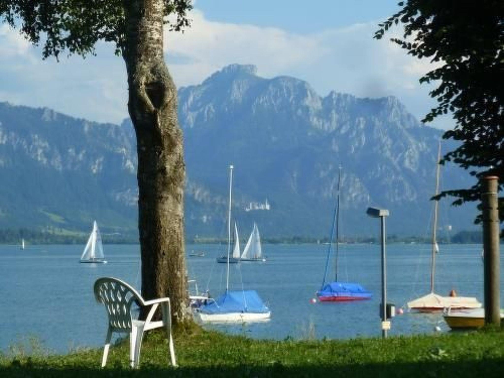 The idyllic location with uninterrupted views of the lake and mountains is exceptional. Private living with family and friends at the highest level. Experience the natural flair of a wooden house with solid wood walls and enjoy the exclusive living environment typical of the Allgäu. From the balcony you can enjoy the peace and quiet, the sound of the waves from the lake, green meadows all around and a healthy climate... And countless excursion destinations just a short distance away: so close to the lake: it's a reality here. This luxurious chalet flat offers 150m2 of living space and extends over the ground floor and the upper floor of the holiday chalet. On the ground floor is the living room with sofa furniture, reading corner and large dining table. A large flat-screen TV provides entertainment. The open-plan and spacious designer kitchen is fully equipped with a fridge, oven, infrared hob, coffee machine and dishwasher and also includes a bar counter and a rustic oak dining table with a bench with a view. Due to the hillside location, one side has access to a beautiful balcony with a dining table and a view of the lake. The side facing the slope offers a large wooden terrace with seating furniture and deckchairs. A separate daytime WC with washing machine and tumble dryer as well as a cloakroom next to the entrance complete the facilities on this floor, while a staircase leads up to the attic, which has a particularly cosy feel thanks to the exposed wooden beams. There are three bedrooms and two bathrooms on this level. The largest bedroom is particularly comfortable with a double bed, TV, balcony with morning sun, spacious wardrobe space and its own en-suite bathroom with rainfall shower, bathtub and WC. The second double bedroom is furnished with box-spring beds and offers a view of the lake from the bed. The third bedroom is furnished with two single beds and is ideal for children. The other two bedrooms have a bathroom with shower and WC. In front of these rooms is the cosy roof gallery with sofa and access to the large panoramic balcony, which offers a fantastic view of the lake, the mountains and the royal castles.Brief descriptionOther : Non-smoking houseShort description 1Number of kitchens : 1Living room 1Other living room furnishings : Large chill-out armchair and small library, 50-inch flat-screen TVBedroom 1Other bedroom furnishings : Box-spring beds, large separate dressing room and en-suite bathroom, balcony with morning sunBedroom 2Other bedroom furnishings : Box-spring beds, large window with lake and mountain viewsBedroom 3Other bedroom furnishings : Cosy solid wood furnitureLiving room 2Other living room furnishings : Gallery in the attic with panoramic window and rocking chairSurroundingsLeisure facilities : Boat hireSports facilities in the surrounding area : Fishing, Mountaineering, Ice skating, Golf course, Canoeing, Climbing, Mountain biking, Paragliding, Cycling tours, Indoor riding centre, Riding arena / riding facilities, Tobogganing, Rowing, Sailing, Cross-country skiing, Alpine skiing, SurfingSurroundings 1Excursions : Our Allgäu - unspoilt and diverse nature on the edge of the Alps: green meadows, cows, mountain pastures, Alpine peaks, lake district: ideal for cycling and hiking. At any time of year. Highlights: The castles of Neuschwanstein and Hohenschwangau and the romantic old town of Füssen.Location description : The small village of Dietringen is picturesquely situated directly on the lake and is off the main road.Garden and outdoor facilitiesRecreational facilities at the property : SaunaGarden equipment : Garden furniture available, barbecueServicesServices (may be subject to a charge) : Bread roll service, shopping service before arrival, breakfast