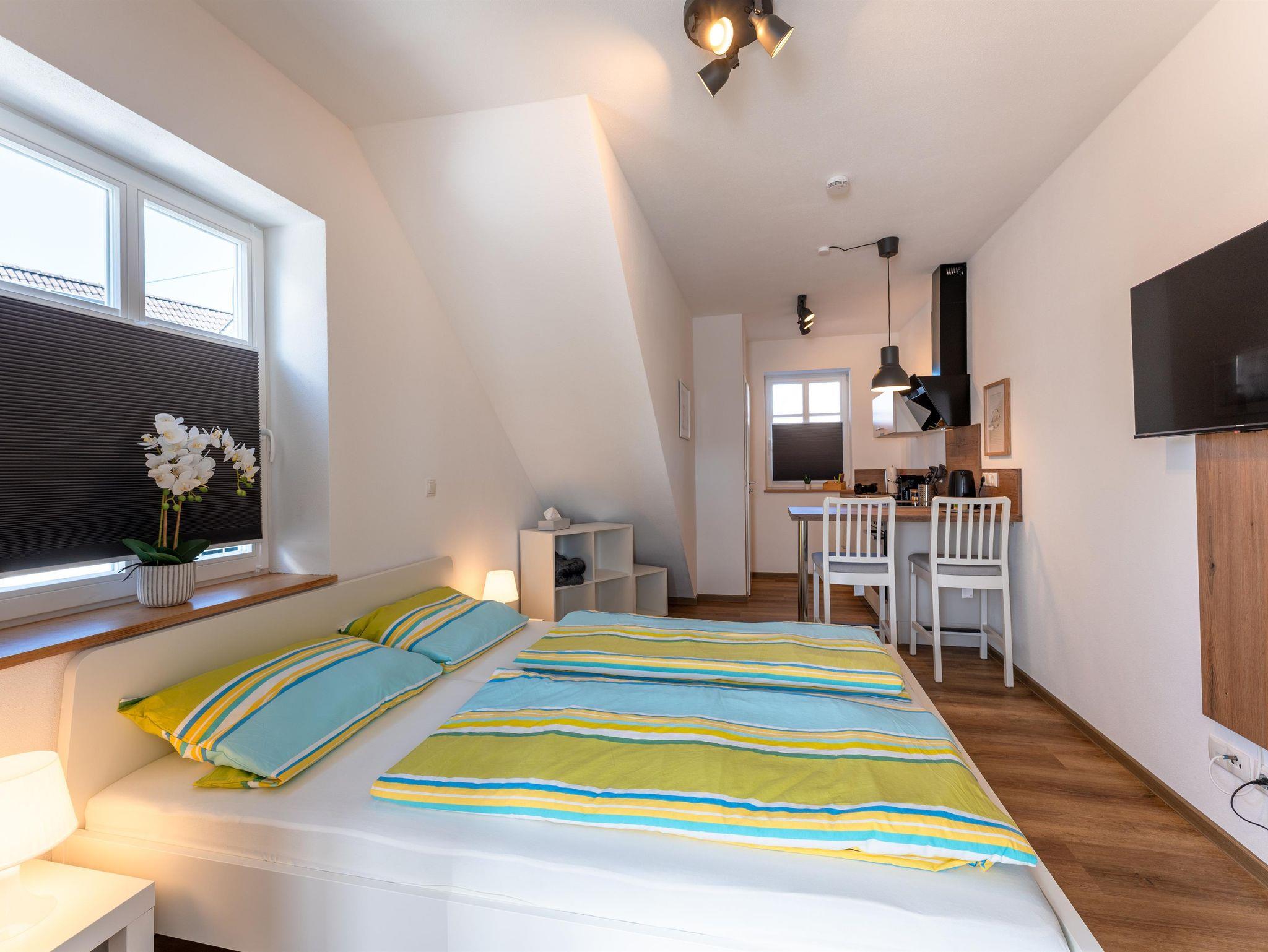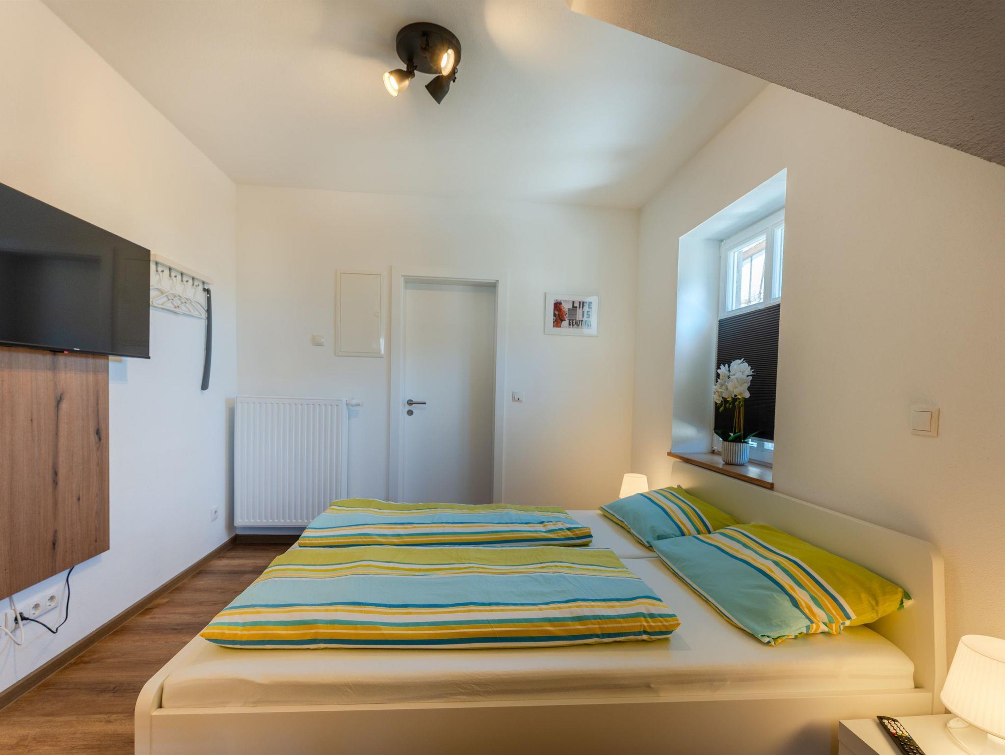 Das Schlafzimmer ist mit einem Doppelbett 160x200cm ausgestattet. Bettwäsche ist vor Ort.