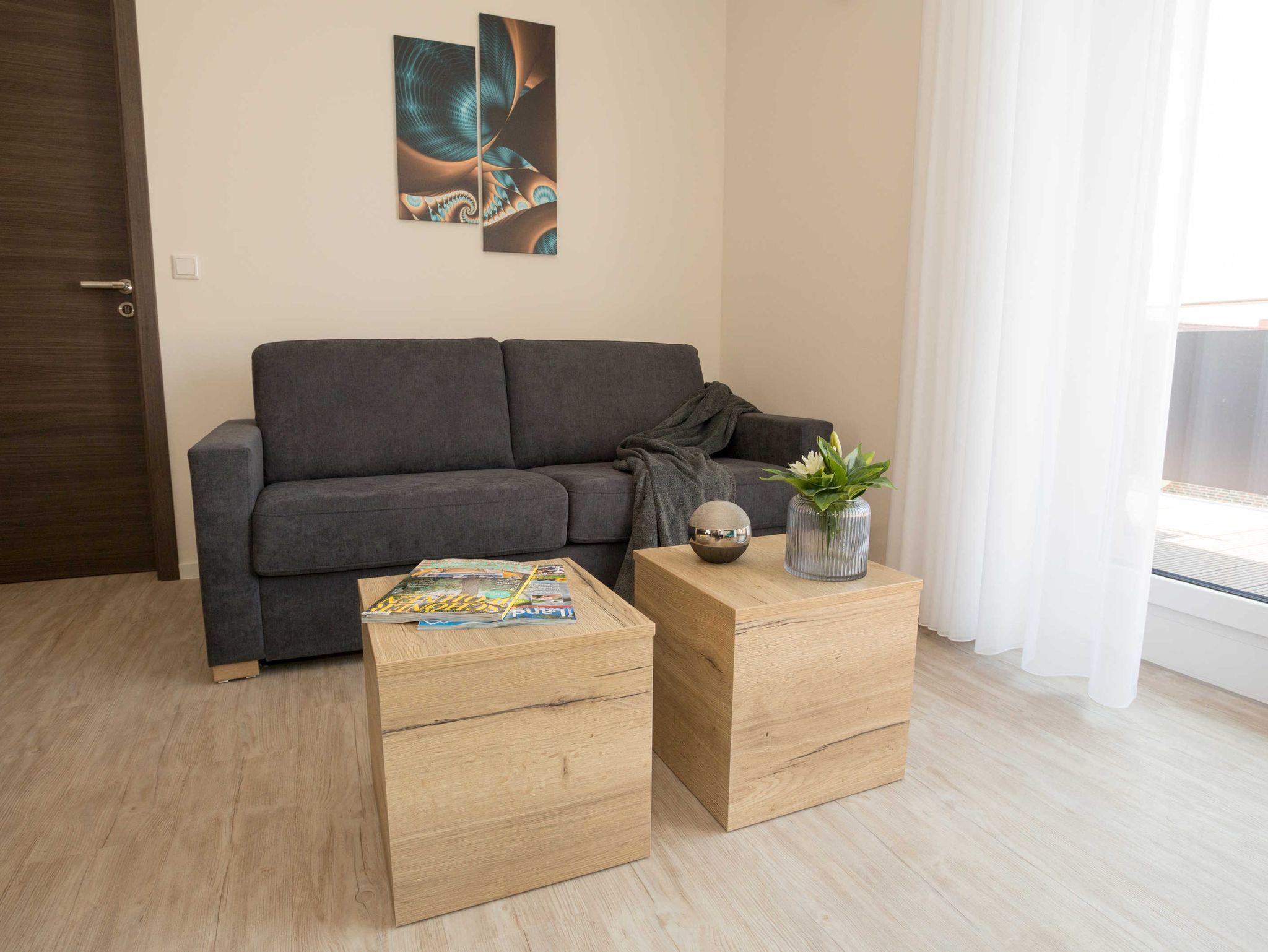 Das Apartment verfügt über zwei separate Schlafzimmer, im Wohnbereich gibt es noch ein Sofa welches zu einem Schlafsofa umgewandelt werden kann.