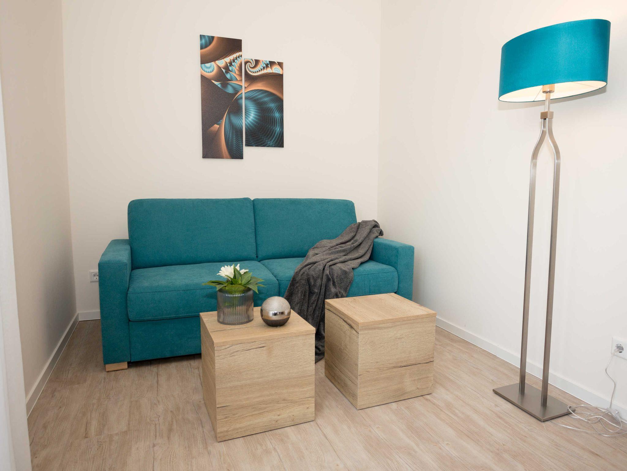 Das Apartment befindet sich im Erdgeschoss. Sie haben eine eigene Terrasse auf der Sie entspannen können. Im Wohnbereich ist ein Schlafsofa vorhanden, welches eine Liegefläche von 150 x 200 cm bietet.
