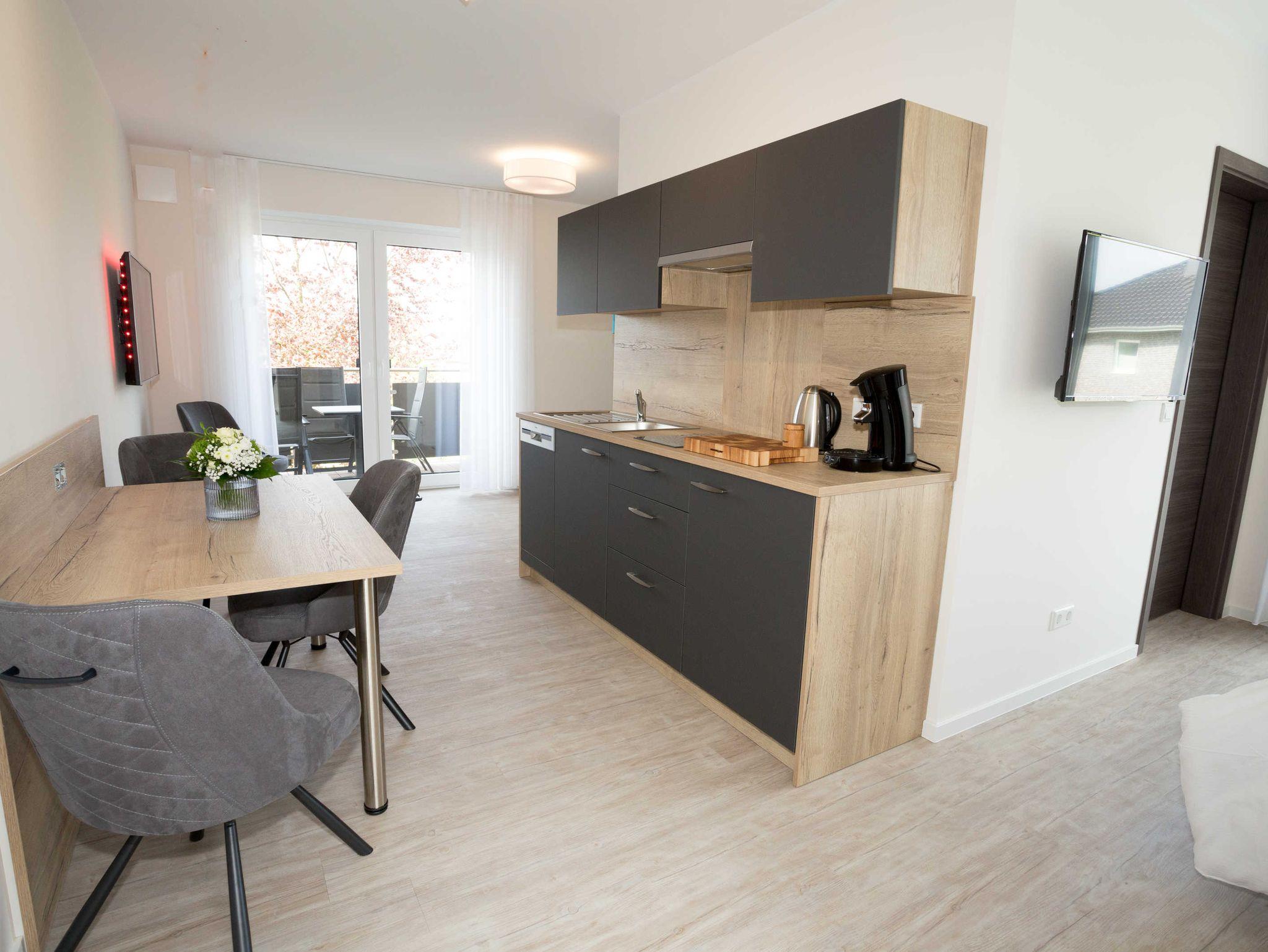 Unser Boardinghouse bietet Ihnen acht hochwertig eingerichtete Apartments zum Wohlfühlen. Alle Apartments sind entweder mit einer Terrasse oder einem Balkon ausgestattet. Es stehen Ihnen ausreichend kostenlose Parkplätze zur Verfügung. Des Weiteren bieten wir Ihnen eine Garage, in der Sie Ihre Fahrräder unterstellen können. Hier haben Sie auch die Möglichkeit Ihre Elektro-Fahrräder aufzuladen. Unser Boardinghouse liegt am Stadtrand von Dinklage und ist somit ruhig gelegen.
