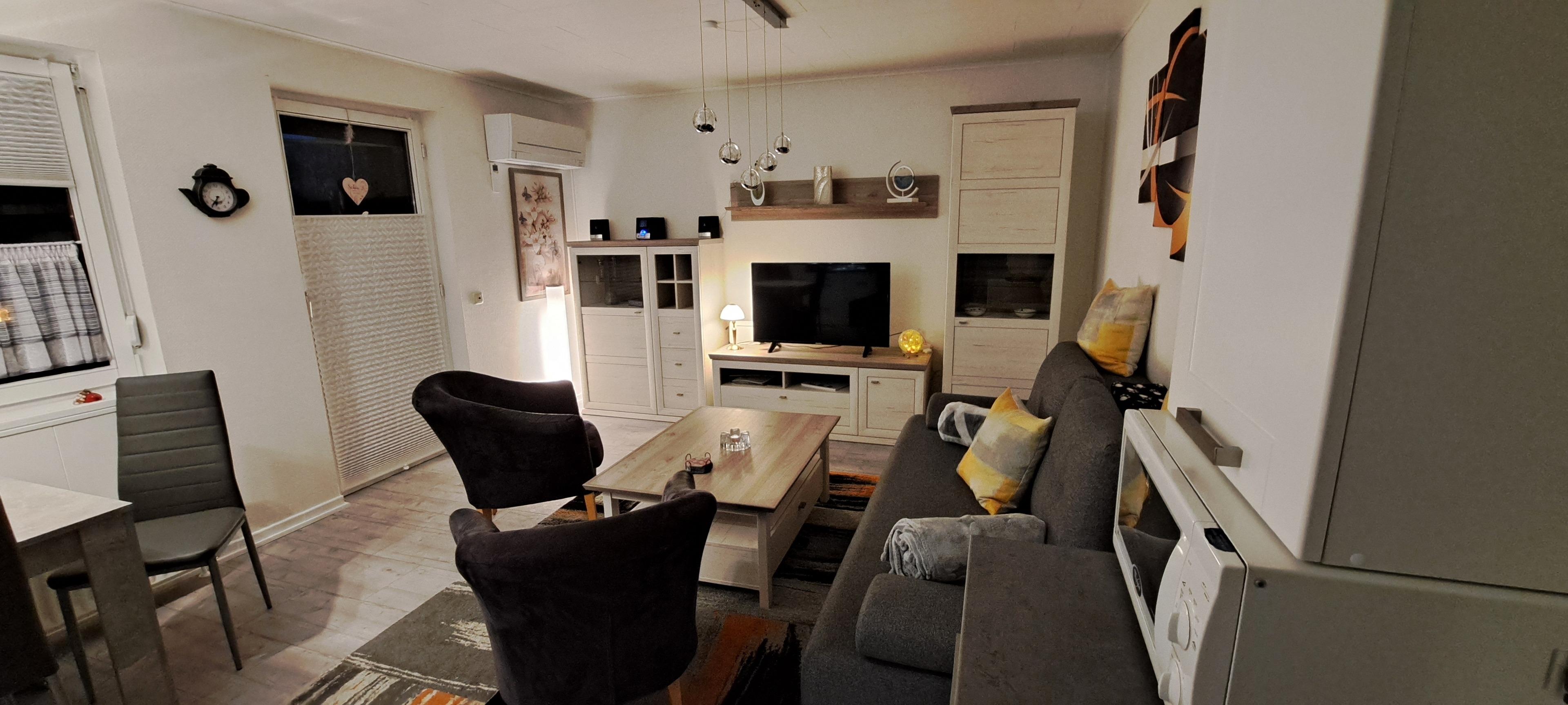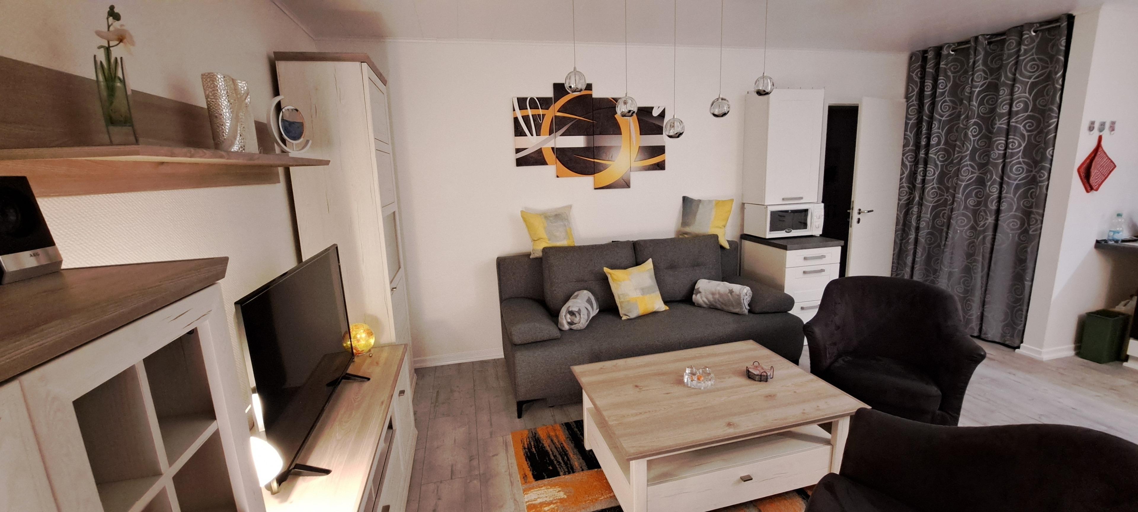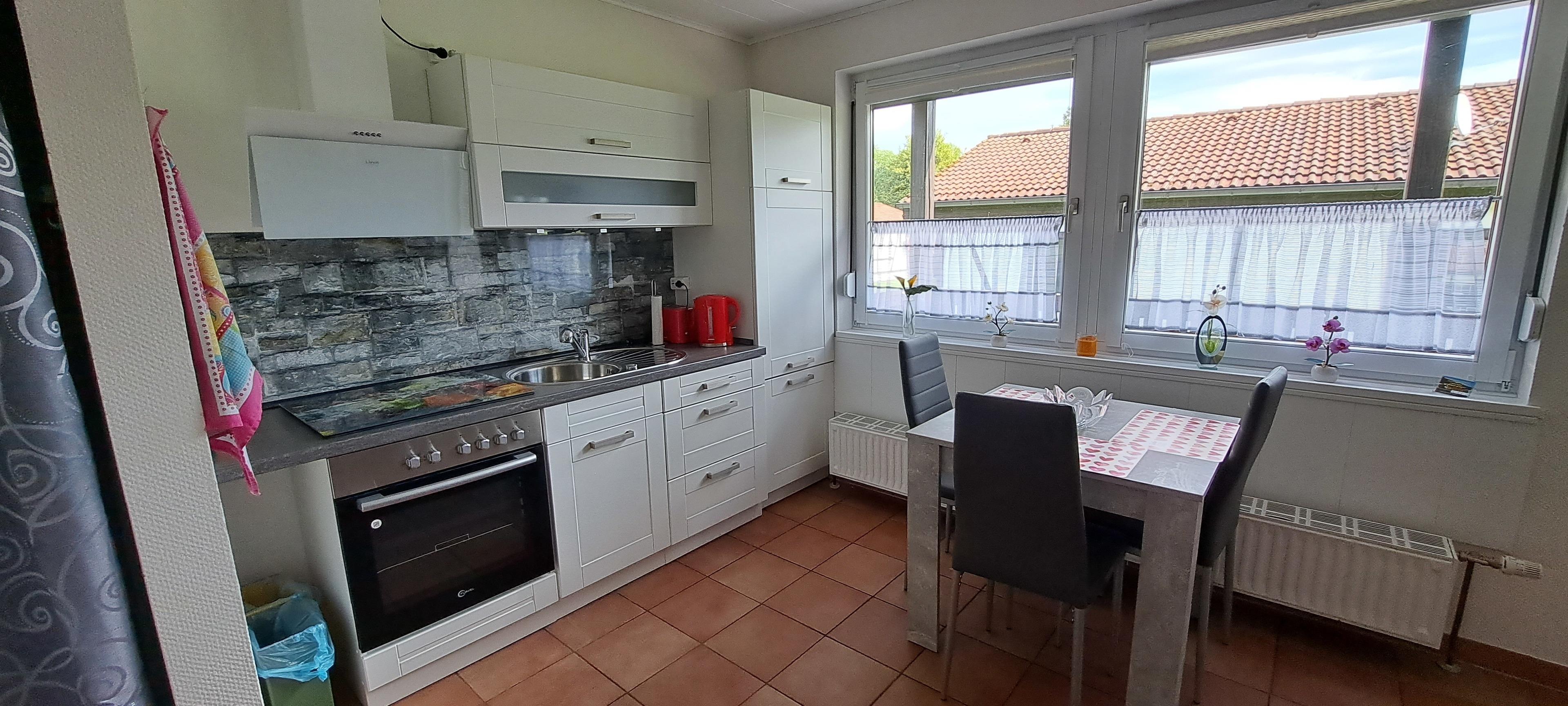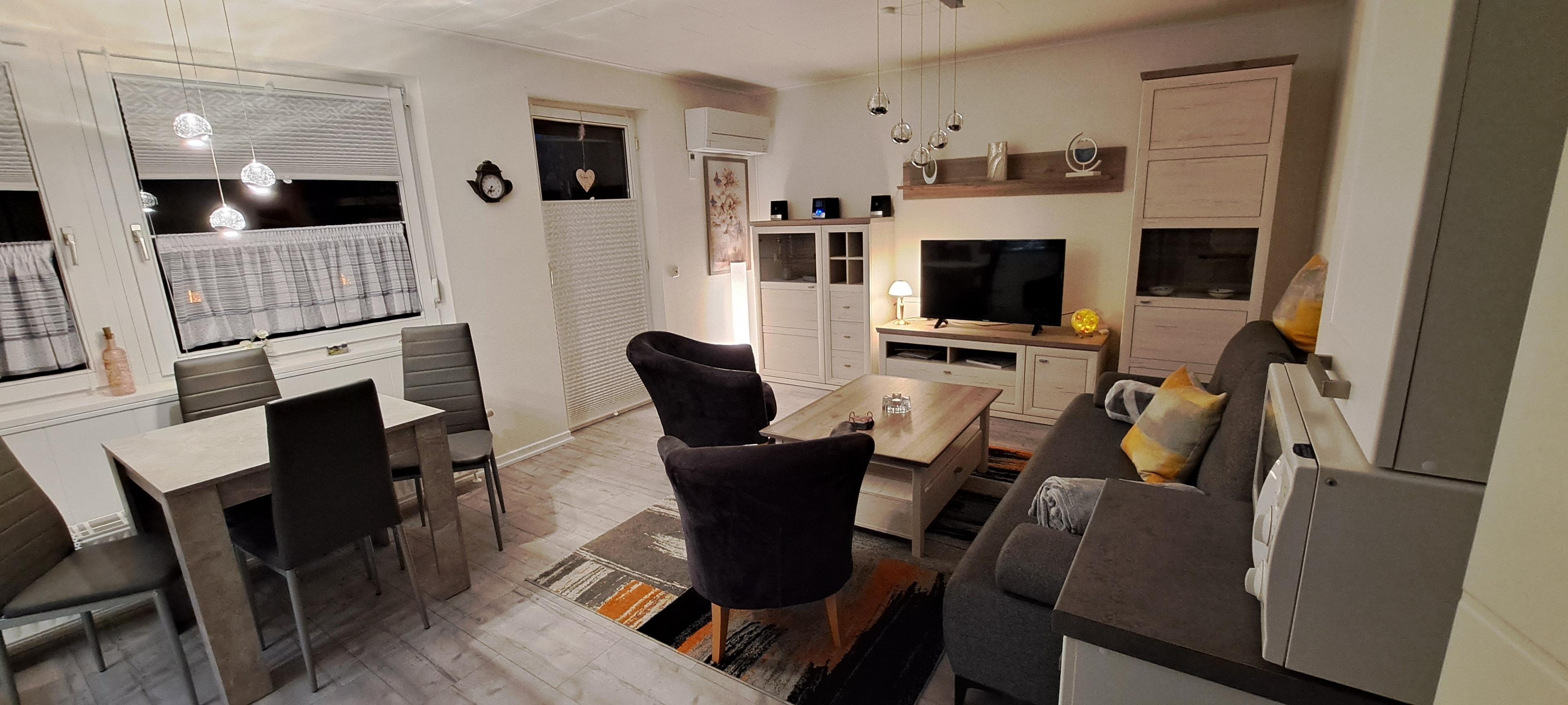 Der Bungalow bietet Platz für bis zu 4 Gäste auf 52 Quadratmetern Wohnfläche mit 1 Schlafzimmern sowie einem Boxspringschlafsofa im Wohnbereich und 1 Badezimmer. Die moderne und voll ausgestattete Küchenzeile verfügt über einen Gefrierschrank, Kühlschrank, Mikrowelle, Backofen, Kaffeemaschine, Besteck, Geschirr und vieles mehr. Genießen Sie entspannte Stunden im gemütlichen Wohnzimmer mit TV und kostenlosem WLAN oder entspannen Sie auf dem Balkon, oder im Garten.