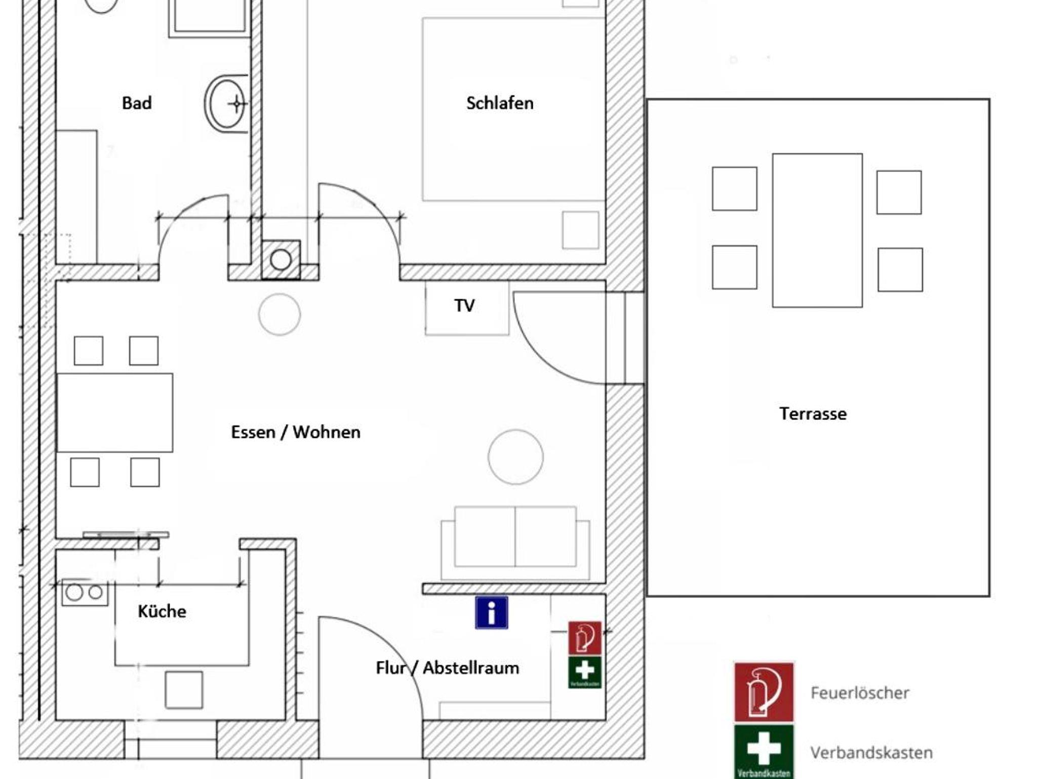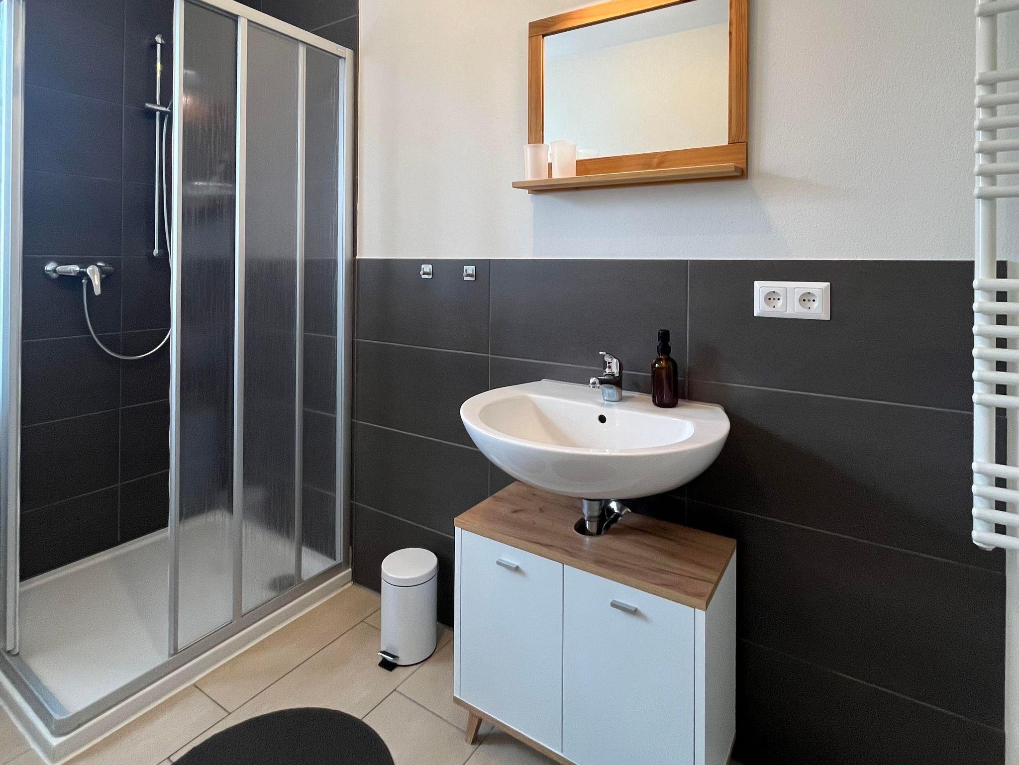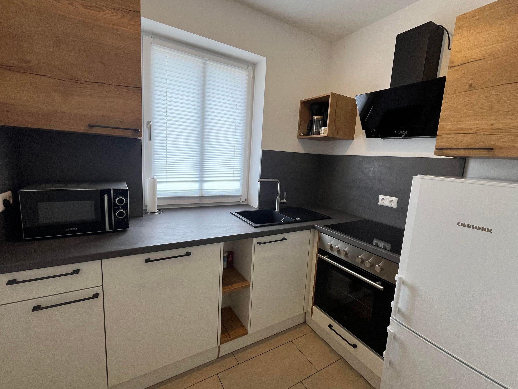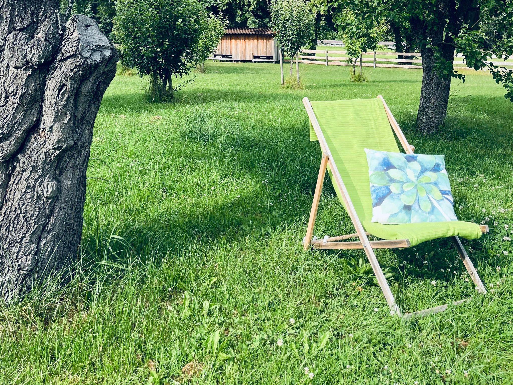 Unsere Ferienwohnung bietet alles für einen rundum erholsamen Aufenthalt. Im gemütlichen Schlafzimmer schlafen Sie entspannt im Doppelbett – auf Wunsch auch mit Platz für ein Babybett. Der offene Wohn- und Essbereich lädt zum Verweilen ein: ob Serienabend auf der ausziehbaren Couch oder ein entspanntes Essen – hier fühlt man sich schnell wie zu Hause. Die Küche ist voll ausgestattet mit Herd, Backofen, Mikrowelle, Geschirrspüler – perfekt für Ihre Lieblingsgerichte. Das moderne Bad mit Regendusche sorgt für frische Momente, eine Waschmaschine steht bei längeren Aufenthalten zur Verfügung. Draußen erwarten Sie eine sonnige Terrasse mit Grillmöglichkeit, ein kleines Beet zum Ernten und schattige Plätze unter alten Obstbäumen – ideal zum Lesen, Träumen oder Picknicken. Starten Sie den Tag mit Blick ins Grüne – auf Wunsch mit Brötchenservice und frischen Eiern. Im Winter stehen gegen einen Aufpreis Schlitten und Schneeschuhe bereit, im Sommer Fahrräder und Walkingstöcke.