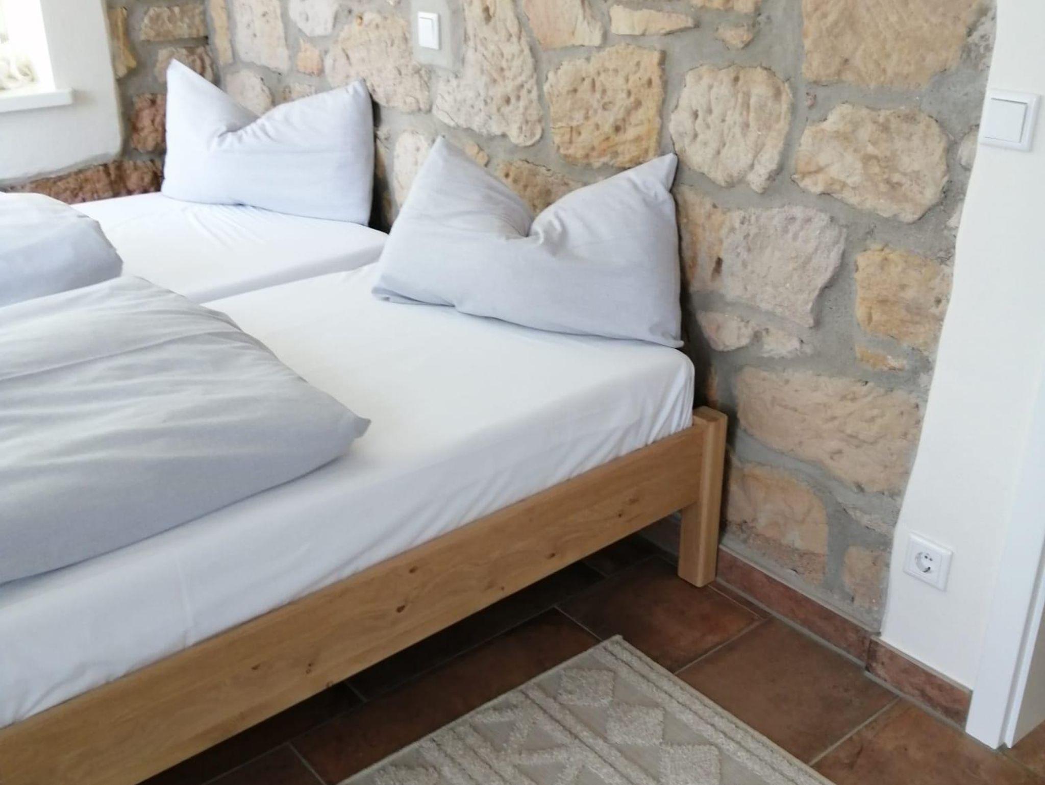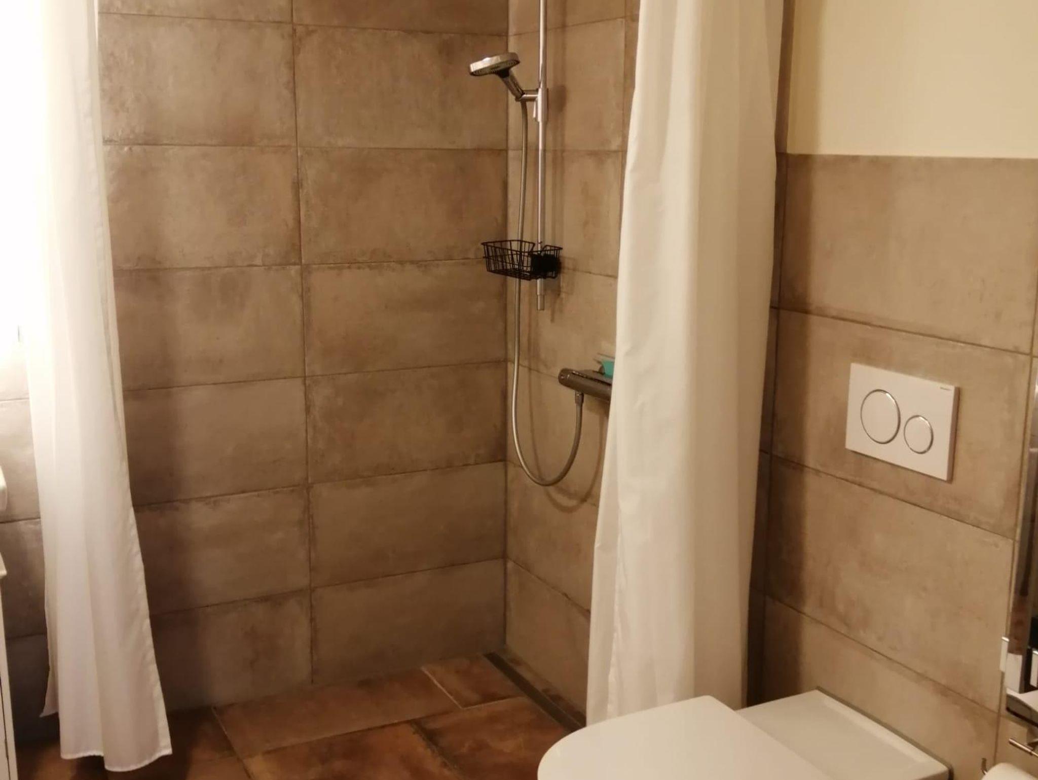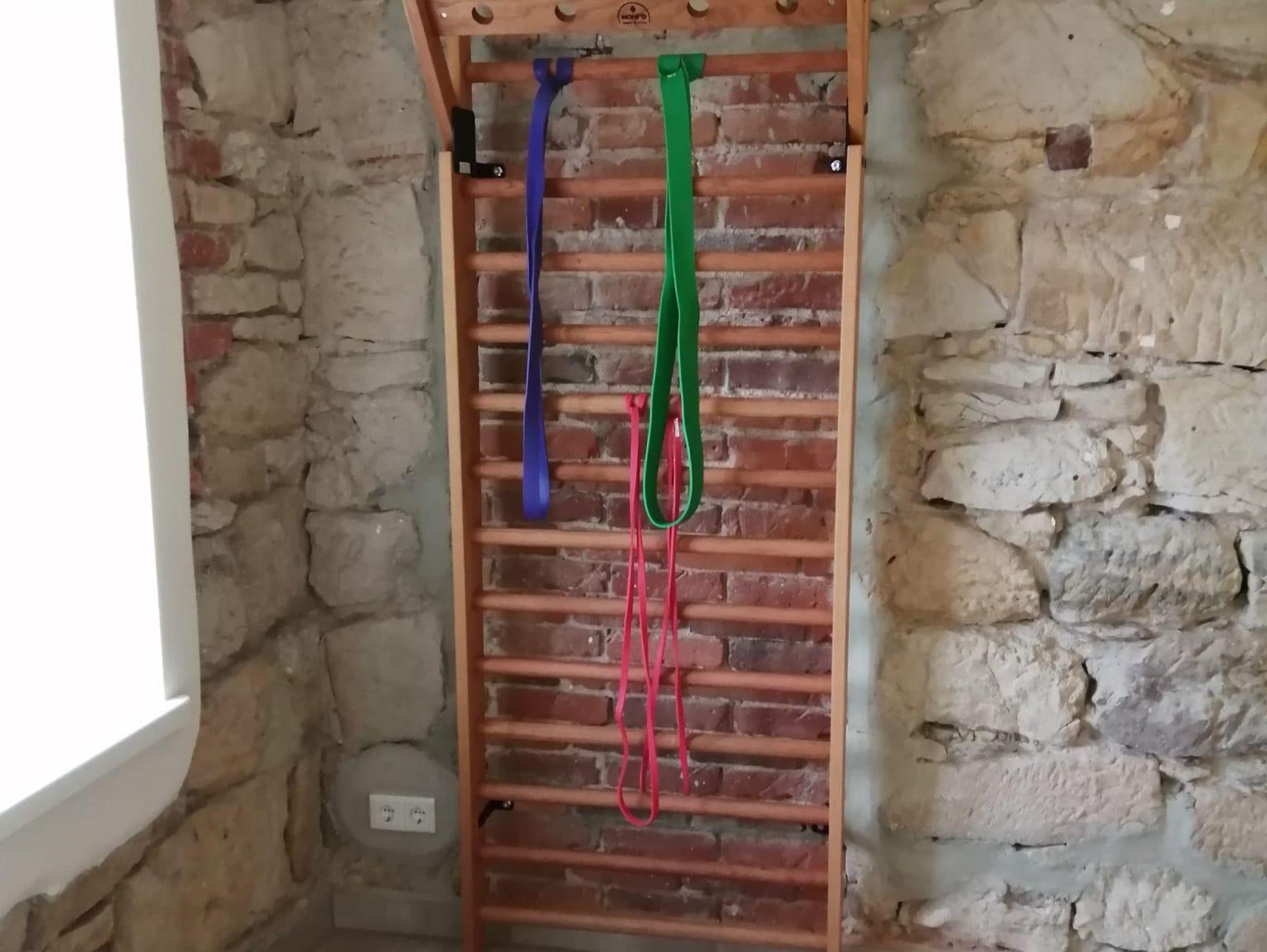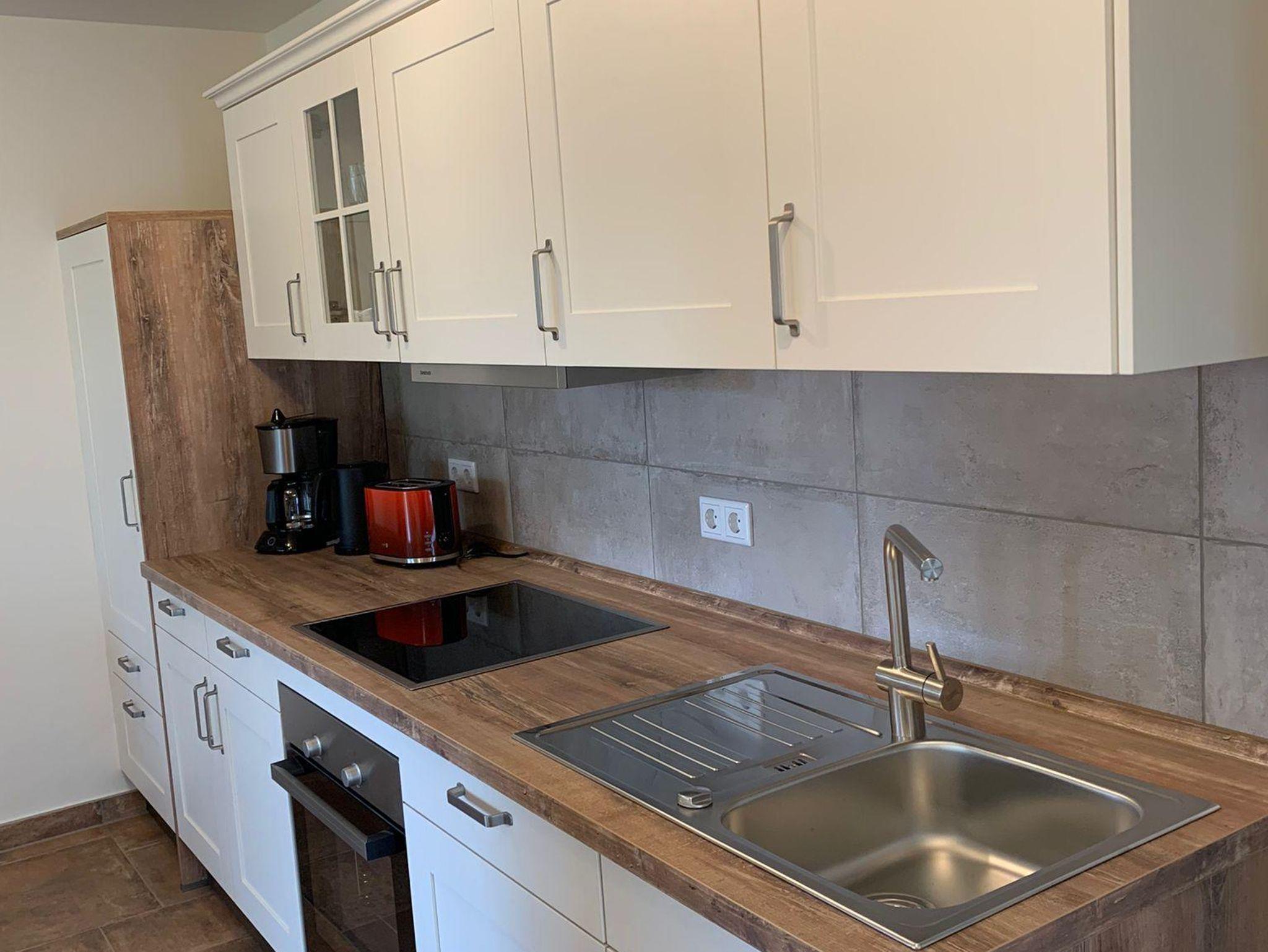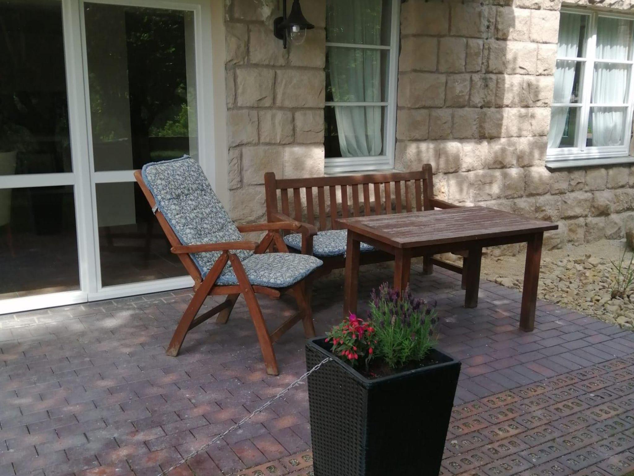 Die behindertengerechte Ferienwohnung ist im mediterranen Stil gebaut und eingerichtet. Der Boden mit Fliesen im römischen Verbund, die Wände teilweise im Sandsteinlook. Die Terrasse führt direkt in den Garten und ein Blick aus der großen Fenstertür zeigt das Grün der Bäume und das Blau des Wassers. Die Ferienwohnung ist eine Mischung aus rustikal und modern, die Betten sind aus Vollholz, das Schlafsofa und die Küche sind von hochwertiger Qualität. Ein Frühstück kann außerhalb dazugebucht werden (Kosten 10 €, Frühstückszeiten 7.30 - 10.00 Uhr). Es gibt eine Grillmöglichkeit im Garten, außerdem ein Kanu und Stand up Paddle (SUP) zum Fahren. Allen, die ihrem Körper gerne etwas Gutes tun wollen, steht ein stilvoller Fitnessraum zur Verfügung.