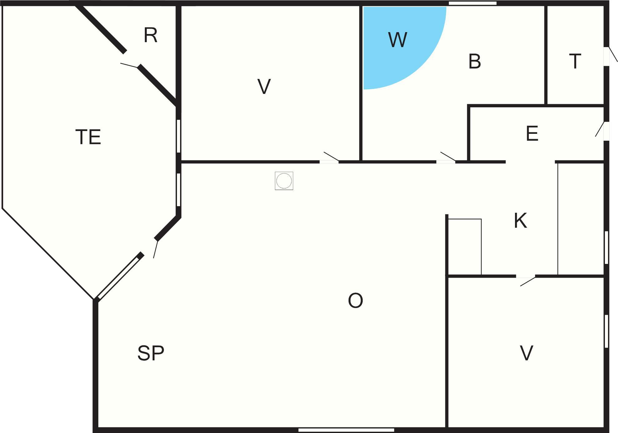 1 Opholdsstue: Brændeovn, stereoanlæg med cd, dvd-afspiller, Blu-ray, tv, høj stol