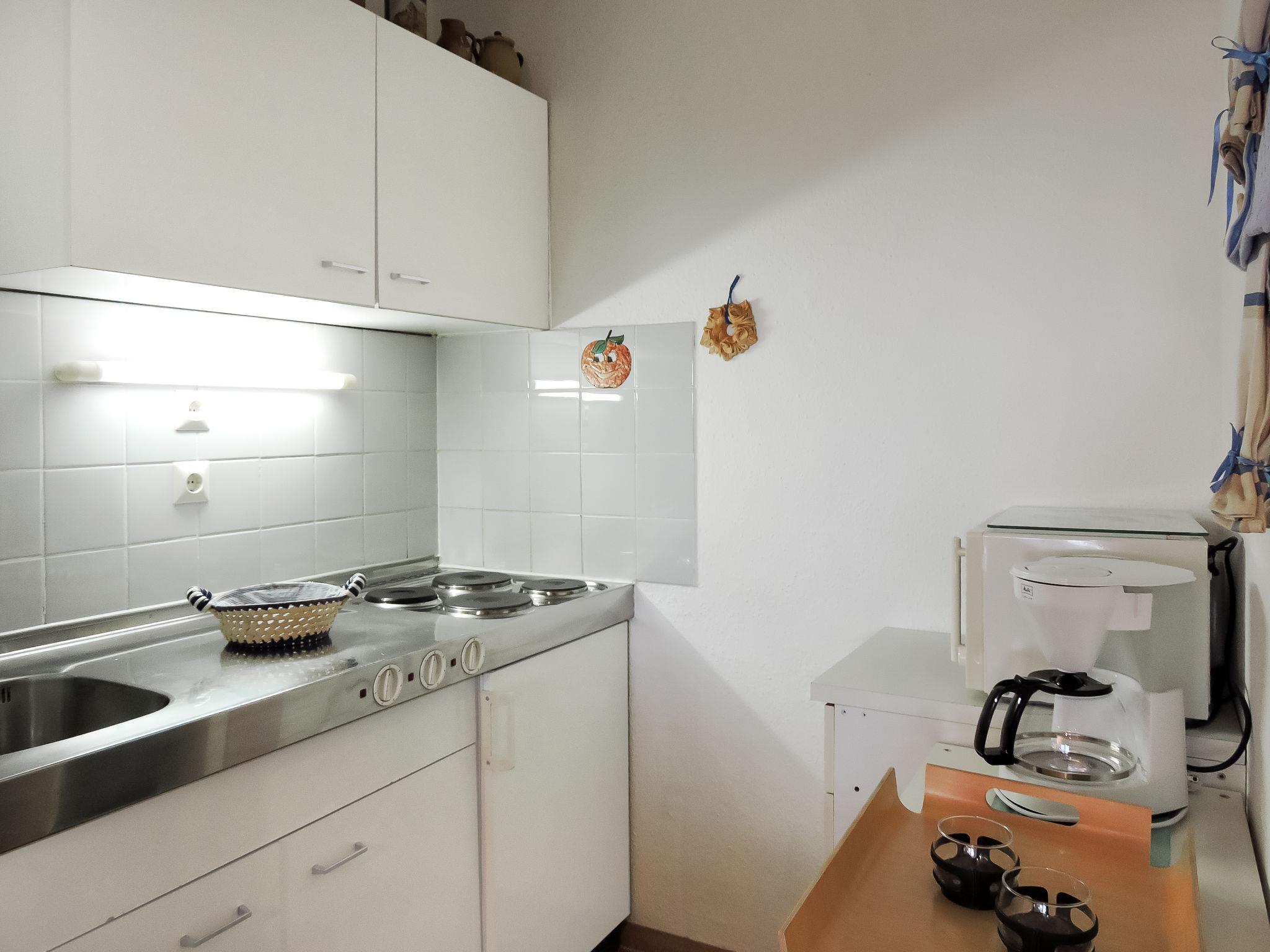 "F 118", 2-room apartment 54 m2 on 5th floor. Simple and cosy furnishings: living/dining room with satellite TV (flat screen), radio. Alcove with curtain with 2 beds (90 cm, length 200 cm). 1 room with 1 double bed (2 x 90 cm, length 200 cm). Kitchenette (3 hot plates, toaster, kettle, electric coffee machine). Bath/WC. Balcony. Balcony furniture. Facilities: children's high chair (extra). Parking (1 car). Please note: non-smokers only. The balcony is glazed. Bookings accepted for holiday purposes only. Instead of an enclosed bedroom, some sleeping areas are located in an open-plan area (gallery, alcove, etc.).