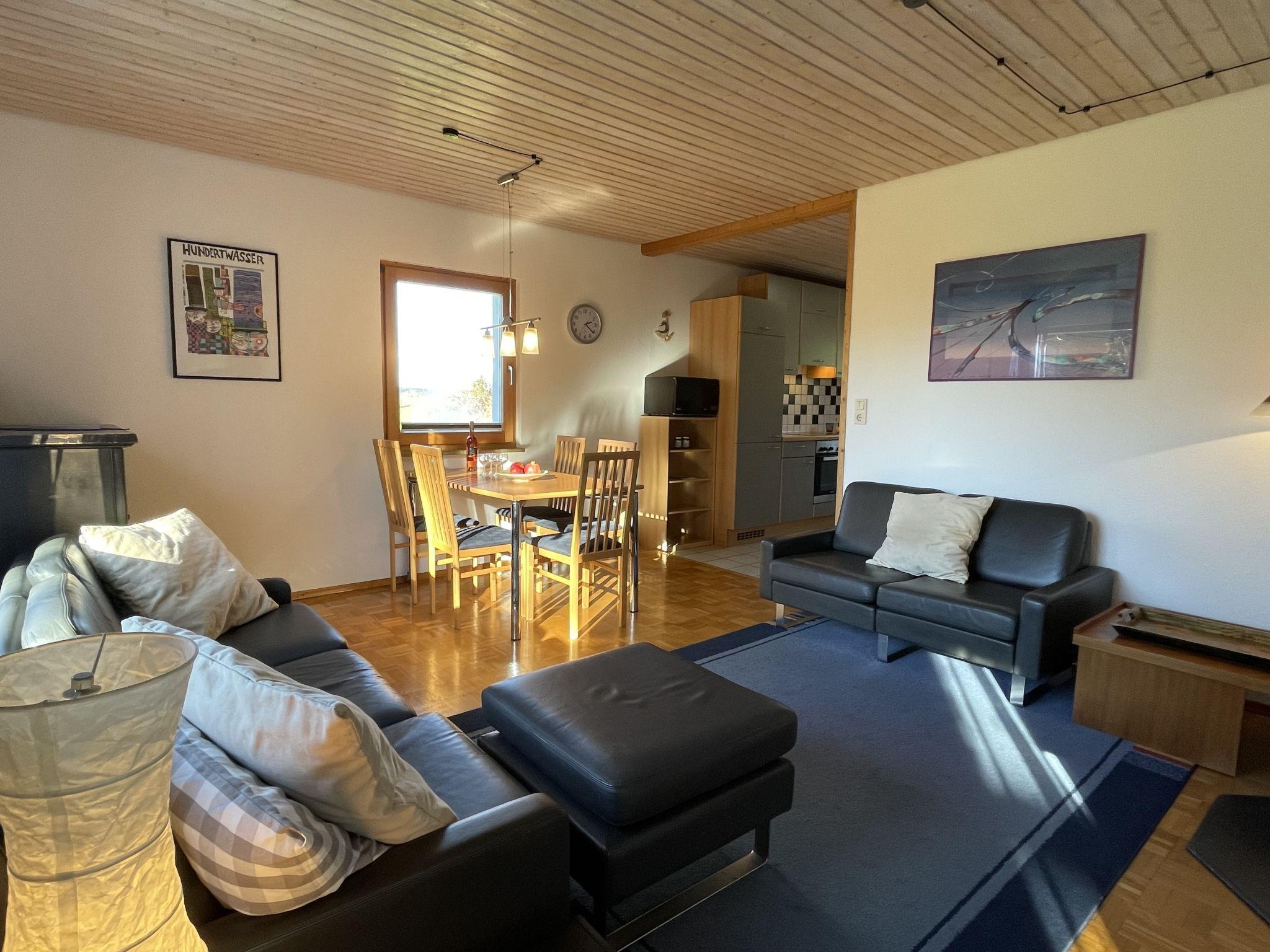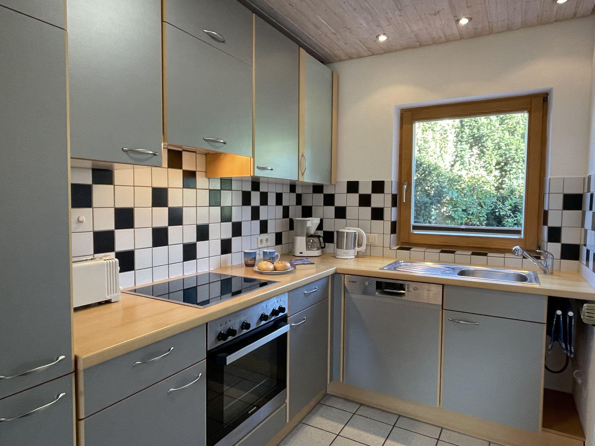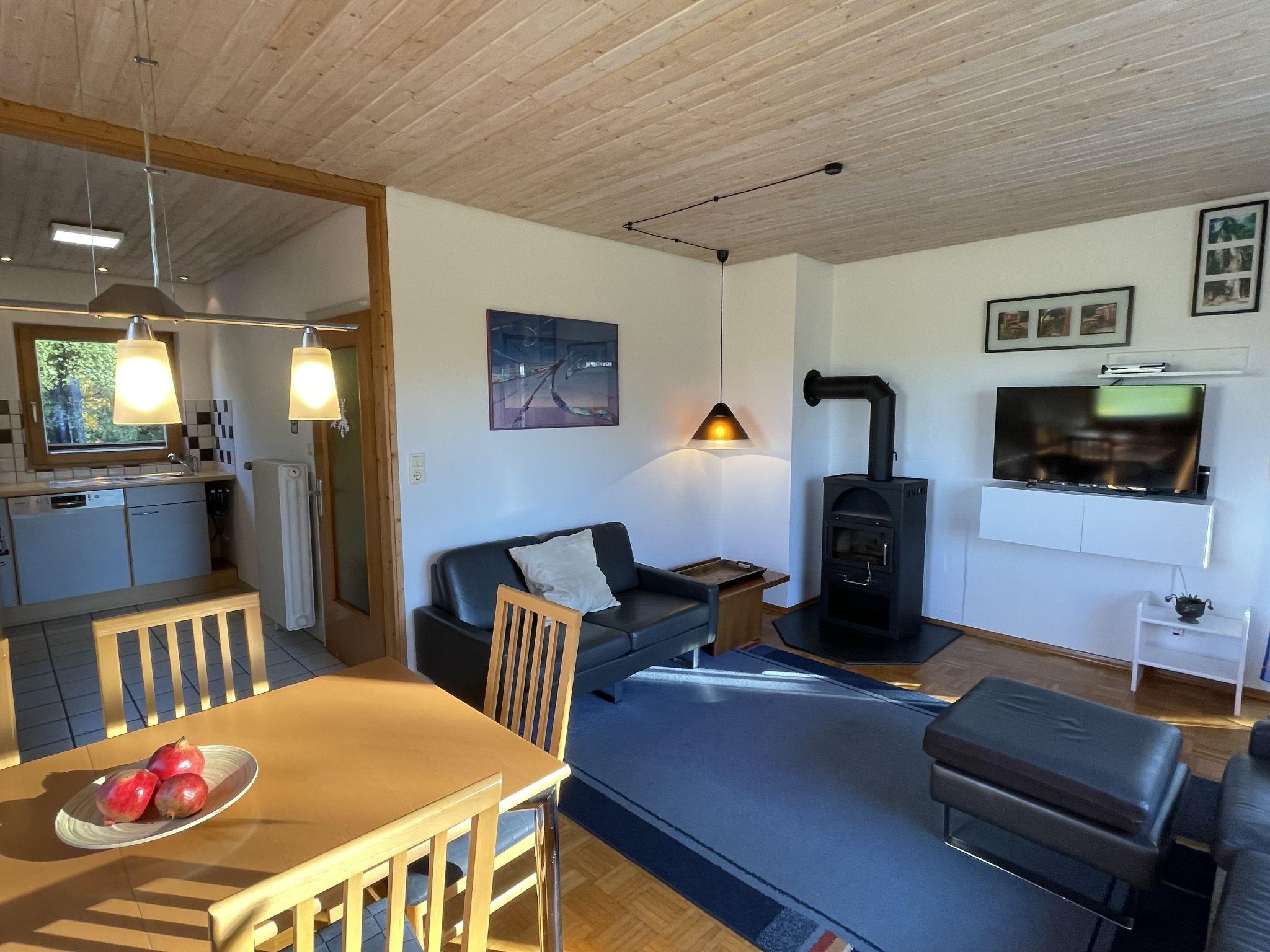 3-room house 70 m2. Cosy furnishings: living/dining room with Scandinavian wood stove (only for decoration), satellite TV (flat screen), radio. 1 room with 2 beds (90 cm, length 200 cm). 1 room with 1 double bed (2 x 100 cm, length 200 cm). Open kitchen (oven, dishwasher, 4 ceramic glass hob hotplates, toaster, kettle, microwave, electric coffee machine). Shower/WC. Terrace partly roofed. Terrace furniture. Beautiful view of the countryside. Facilities: children's high chair. Internet (WiFi, free). Parking (1 car), garage. Please note: non-smokers only. Smoke alarm. Bookings accepted for holiday purposes only.