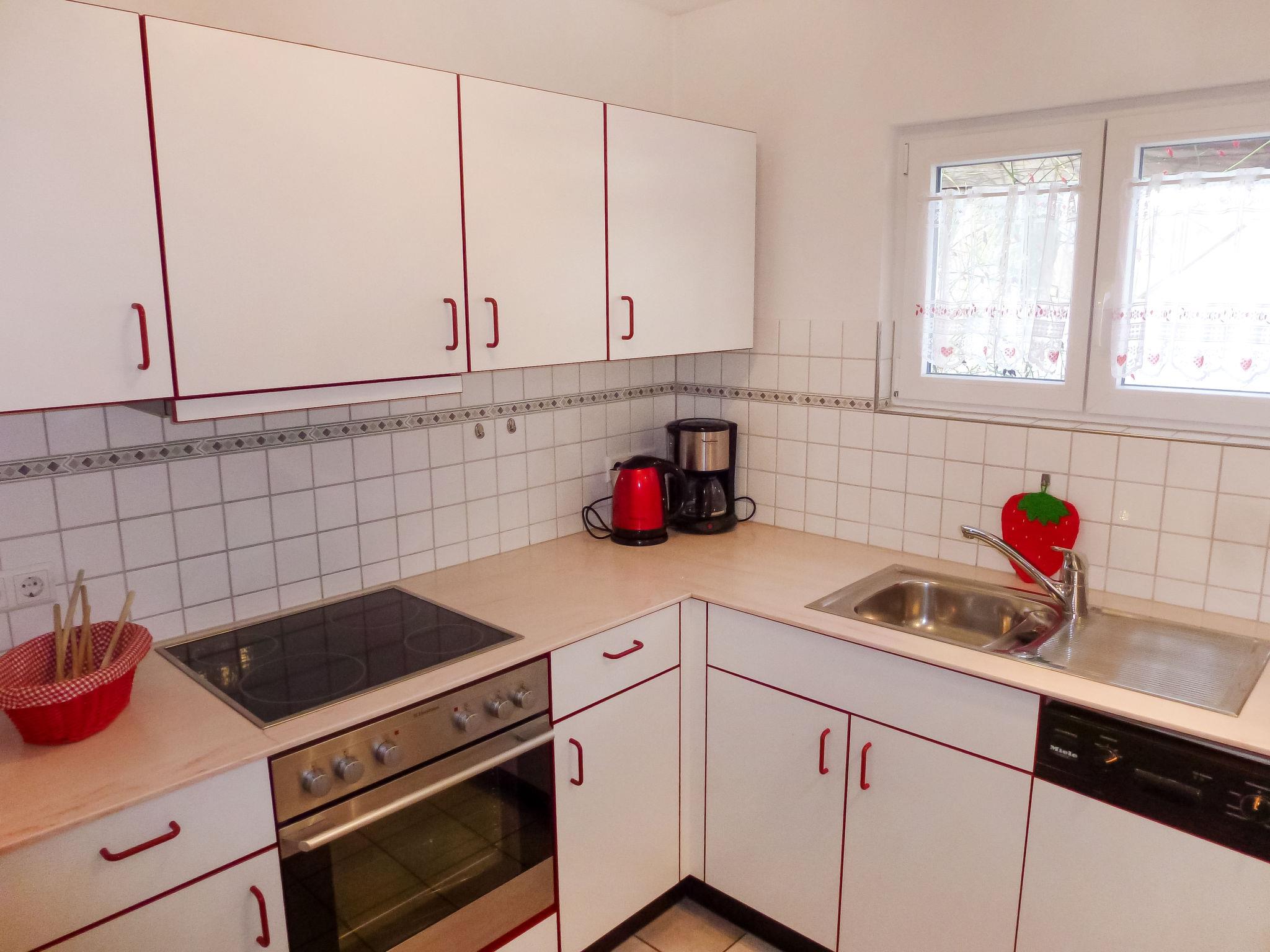 4-room house 78 m2, on the ground floor. Cosy furnishings: living/dining room with satellite TV (flat screen), radio. Exit to the terrace. 1 room with 2 beds (90 cm, length 200 cm). 1 room with 1 double bed (2 x 90 cm, length 200 cm), hand-basin and satellite TV (flat screen). 1 room with 1 double bed (2 x 90 cm, length 200 cm). Kitchen (oven, dishwasher, 4 ceramic glass hob hotplates, toaster, kettle, microwave, electric coffee machine). Bathroom, sep. WC. Terrace furniture. Facilities: telephone, children's high chair (extra). Internet (WiFi, free). Garage. Bookings accepted for holiday purposes only.