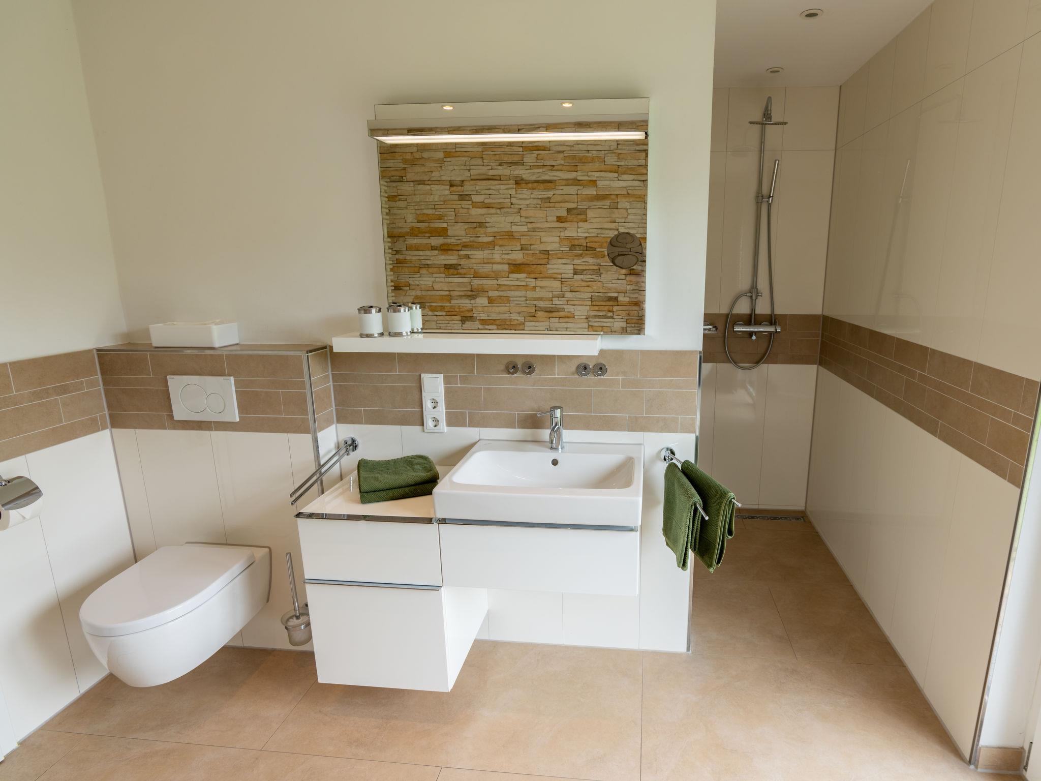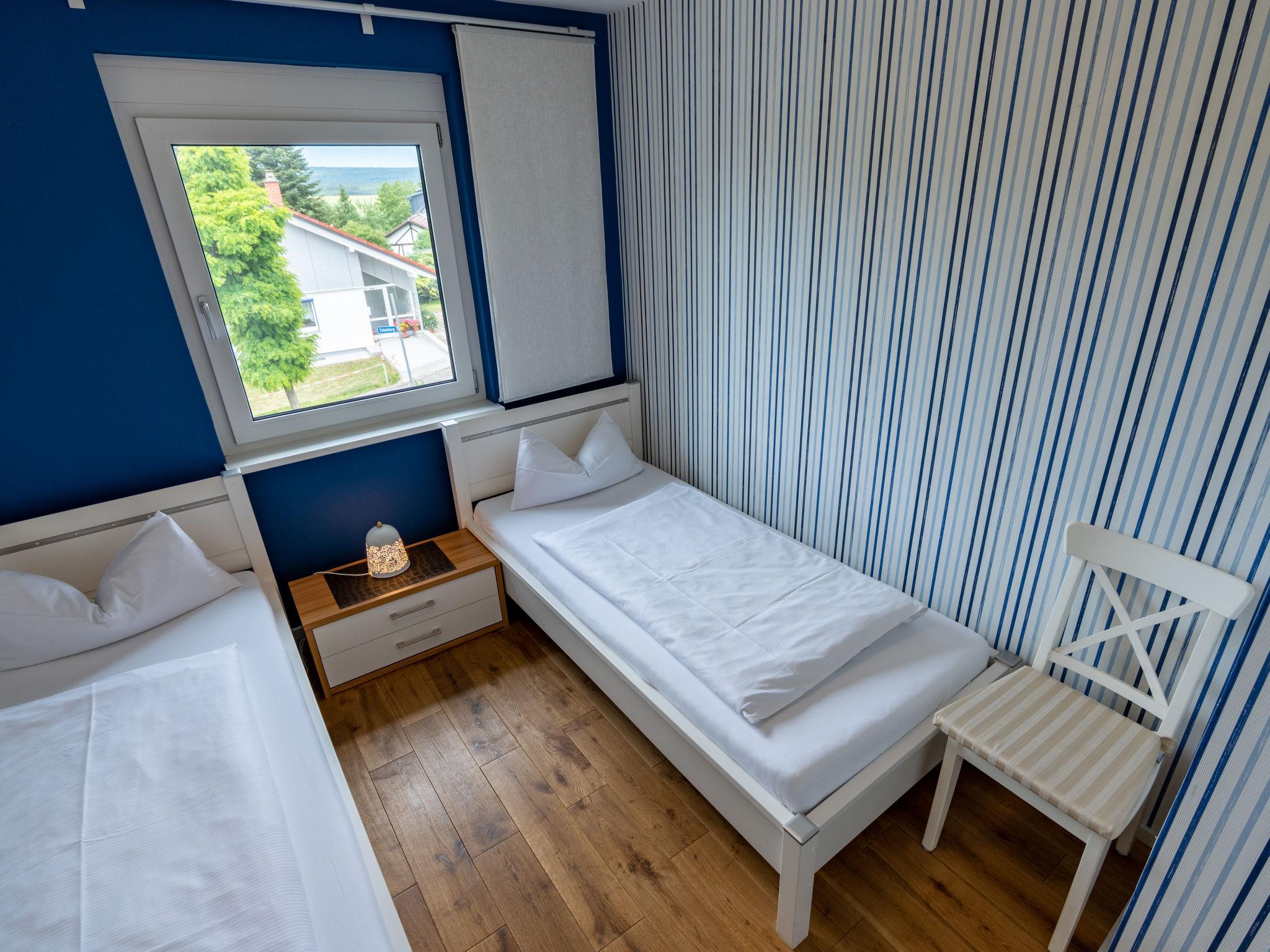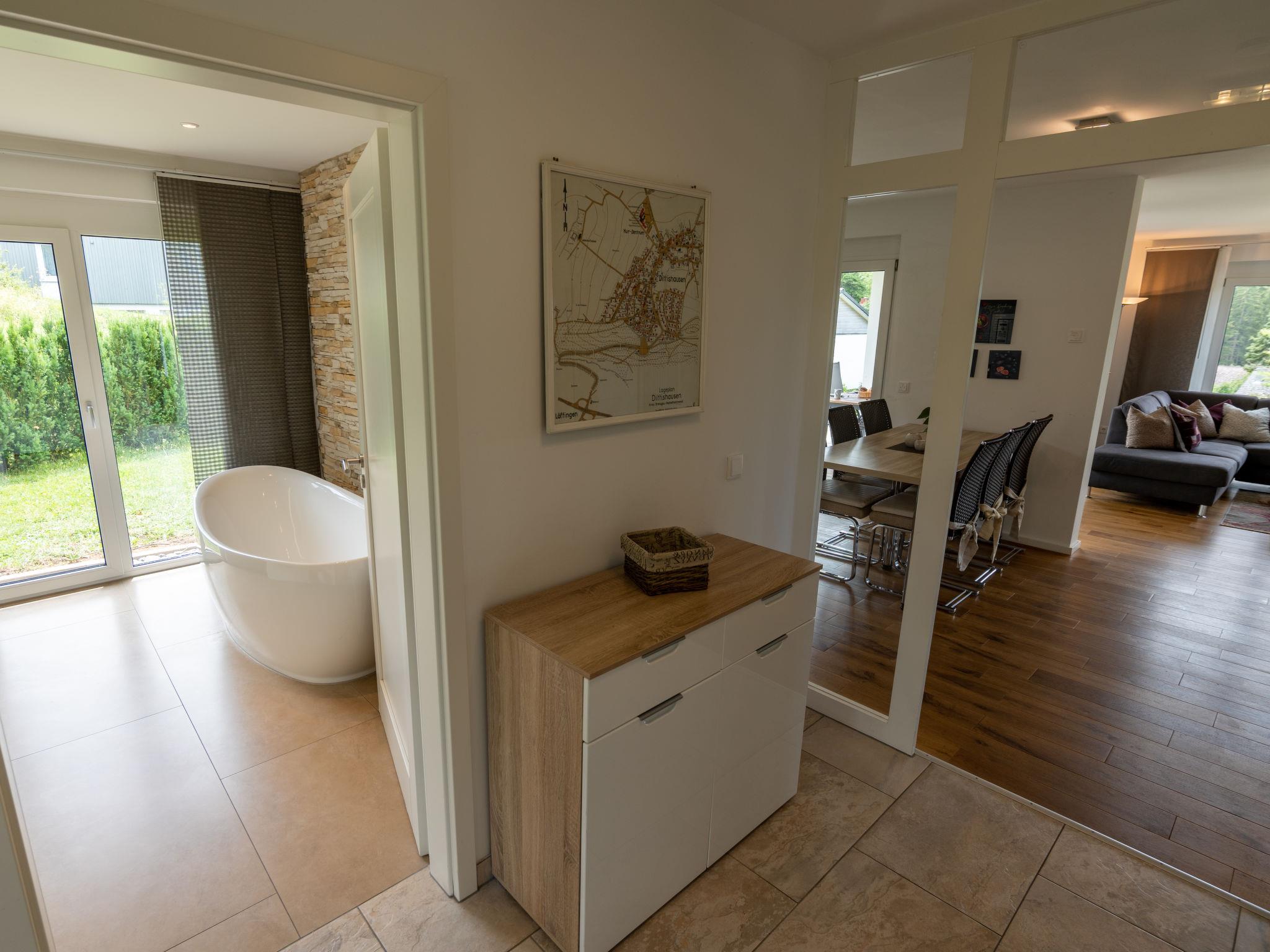 "Ambiente", 4-room house 110 m2 on 2 levels. Bright, modern and tasteful furnishings: large living/dining room with panoramic window with Scandinavian wood stove and satellite TV (flat screen), radio, CD-player and DVD. Exit to the terrace. 1 room with 1 double bed (2 x 90 cm, length 200 cm). 1 room with 2 beds (90 cm, length 200 cm). Open kitchen (oven, dishwasher, 4 ceramic glass hob hotplates, toaster, kettle, microwave, electric coffee machine). Sep. WC, bath/shower/WC. On the lower ground floor: (exterior staircase), 1 room with 1 double bed (2 x 90 cm, length 200 cm), satellite TV (flat screen). Shower/WC. Large terrace 20 m2. Terrace furniture, electric barbecue (portable). Marvellous view of the countryside. Facilities: washing machine, dryer, telephone, iron, children's high chair, baby cot, hair dryer. Internet (WiFi, free). Garage (2 cars). Please note: non-smoking house. Smoke alarm, fire extinguisher. The basement is only accessible by a separate entrance. Bookings accepted for holiday purposes only.