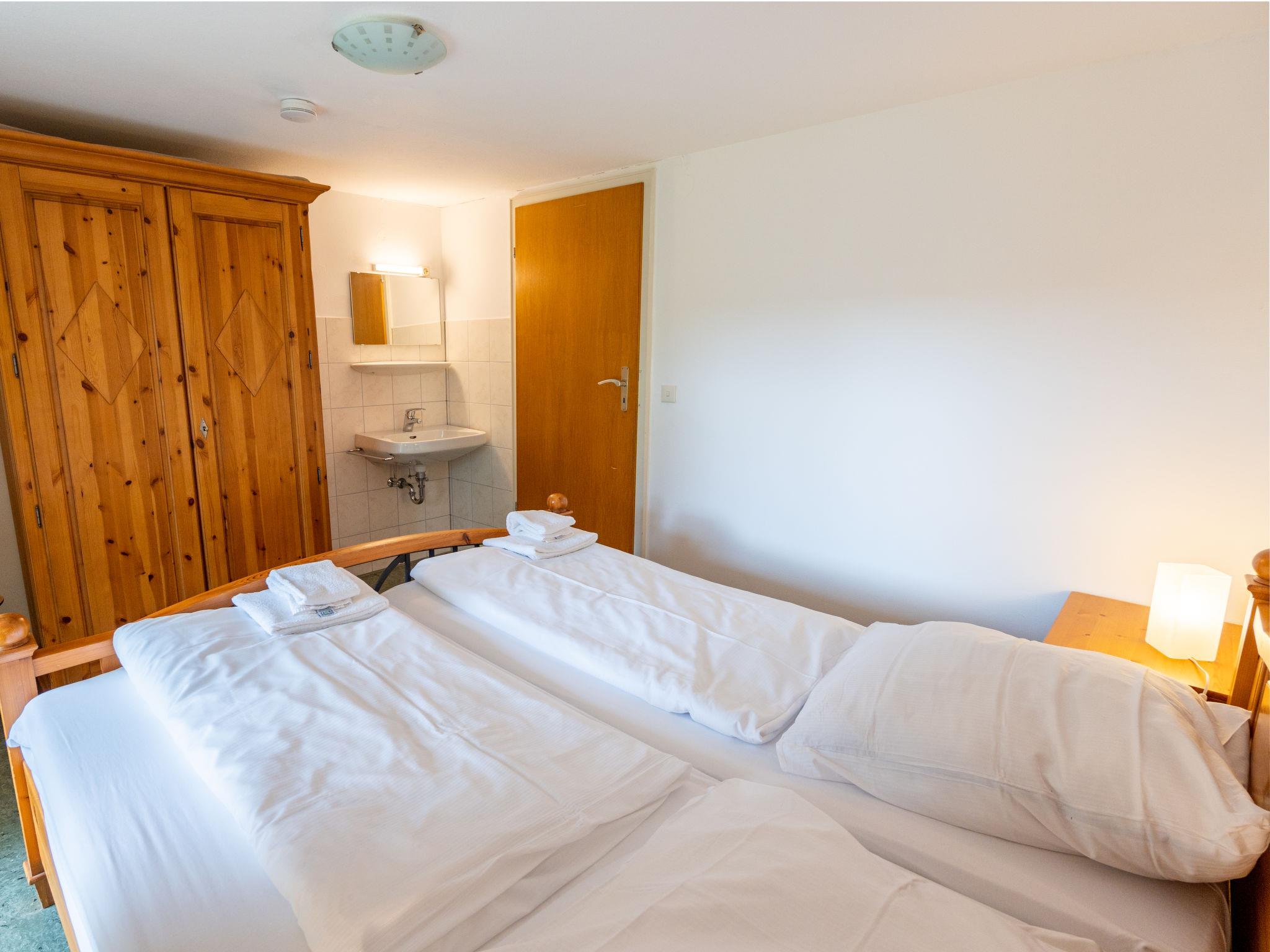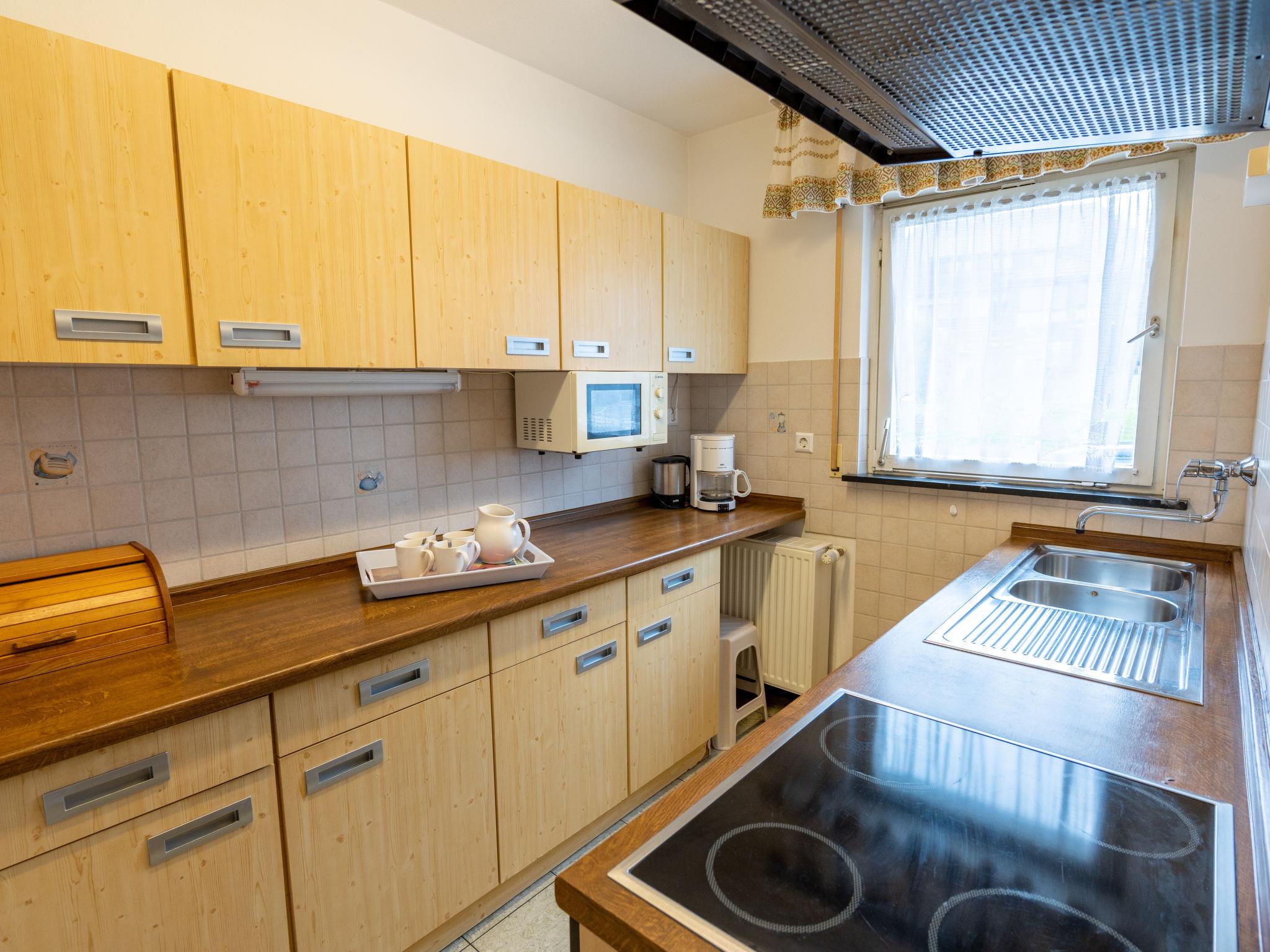"Romeo", 5-room house 100 m2 on 2 levels. Simple and practical furnishings: living/dining room with satellite TV (flat screen). Exit to the balcony. 1 room with 1 double bed (2 x 90 cm, length 200 cm). 1 room with 1 x 2 bunk beds (90 cm, length 190 cm). Kitchen (oven, dishwasher, toaster, kettle, microwave, electric coffee machine). Shower/WC. On the lower ground floor: 1 room with 1 double bed (2 x 90 cm, length 200 cm), hand-basin and satellite TV (flat screen). Exit to the garden. Living/dining room with 1 double sofabed (1 x 140 cm, length 190 cm). Exit to the terrace. Kitchen-/living room (dishwasher, microwave, electric coffee machine). Shower/WC. Balcony, large terrace. Terrace furniture, balcony furniture. Facilities: washing machine, telephone, children's high chair (extra). Internet (DSL/LAN, free). Garage. Please note: non-smoking house. Smoke alarm. Bookings accepted for holiday purposes only.