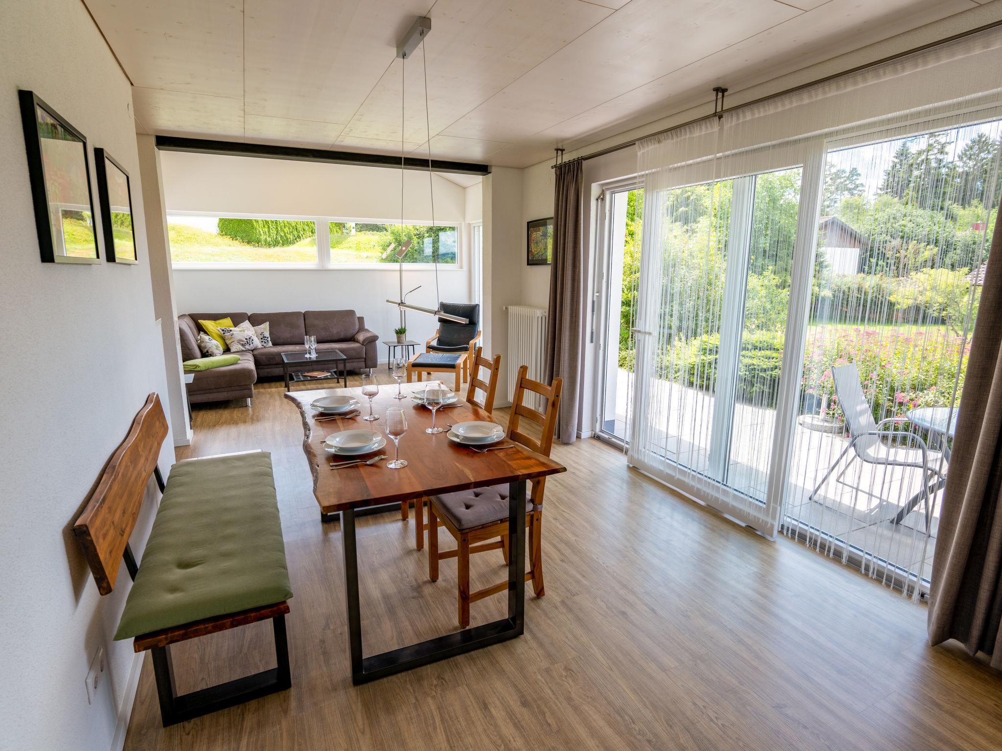 Cosy single-family house "Saarland". On the outskirts, 300 m from the centre, in a quiet position on a slope. In the house: central heating system. Stepped path (14 steps) to the house. Supermarket 3 km, restaurant 300 m, bakery 4 km, bus stop 300 m, railway station "Löffingen" 5 km, outdoor swimming pool 500 m, indoor swimming pool 400 m. Golf course (18 hole) 20 km, cross country ski track 300 m. Nearby attractions: Freiburg 45 km. Well-known ski regions can easily be reached: Feldberg 35 km. Well-known lakes can easily be reached: Titisee 23 km, Schluchsee 39 km.