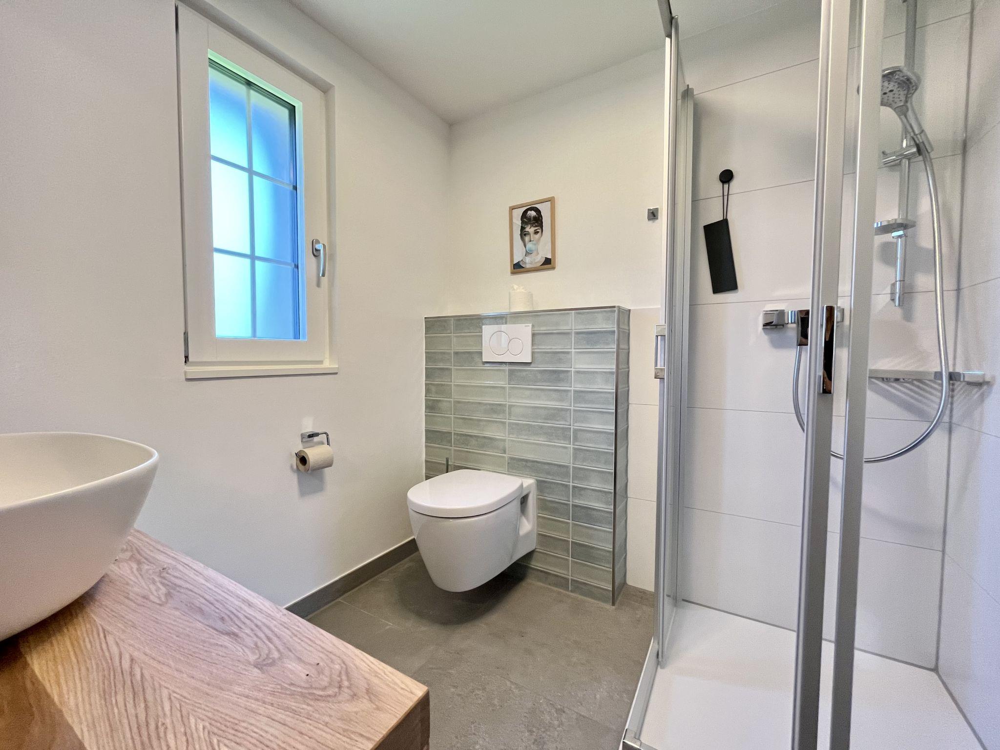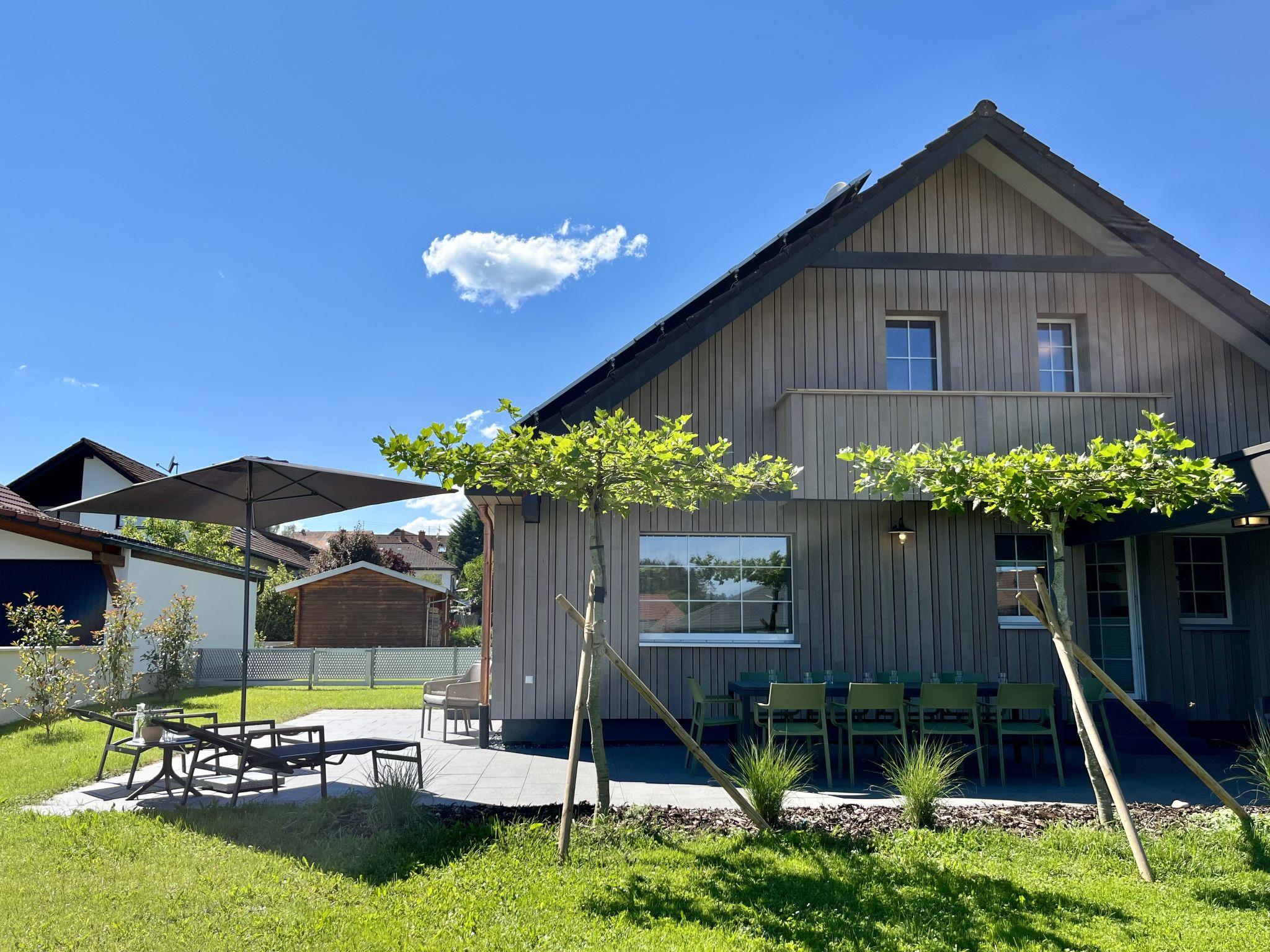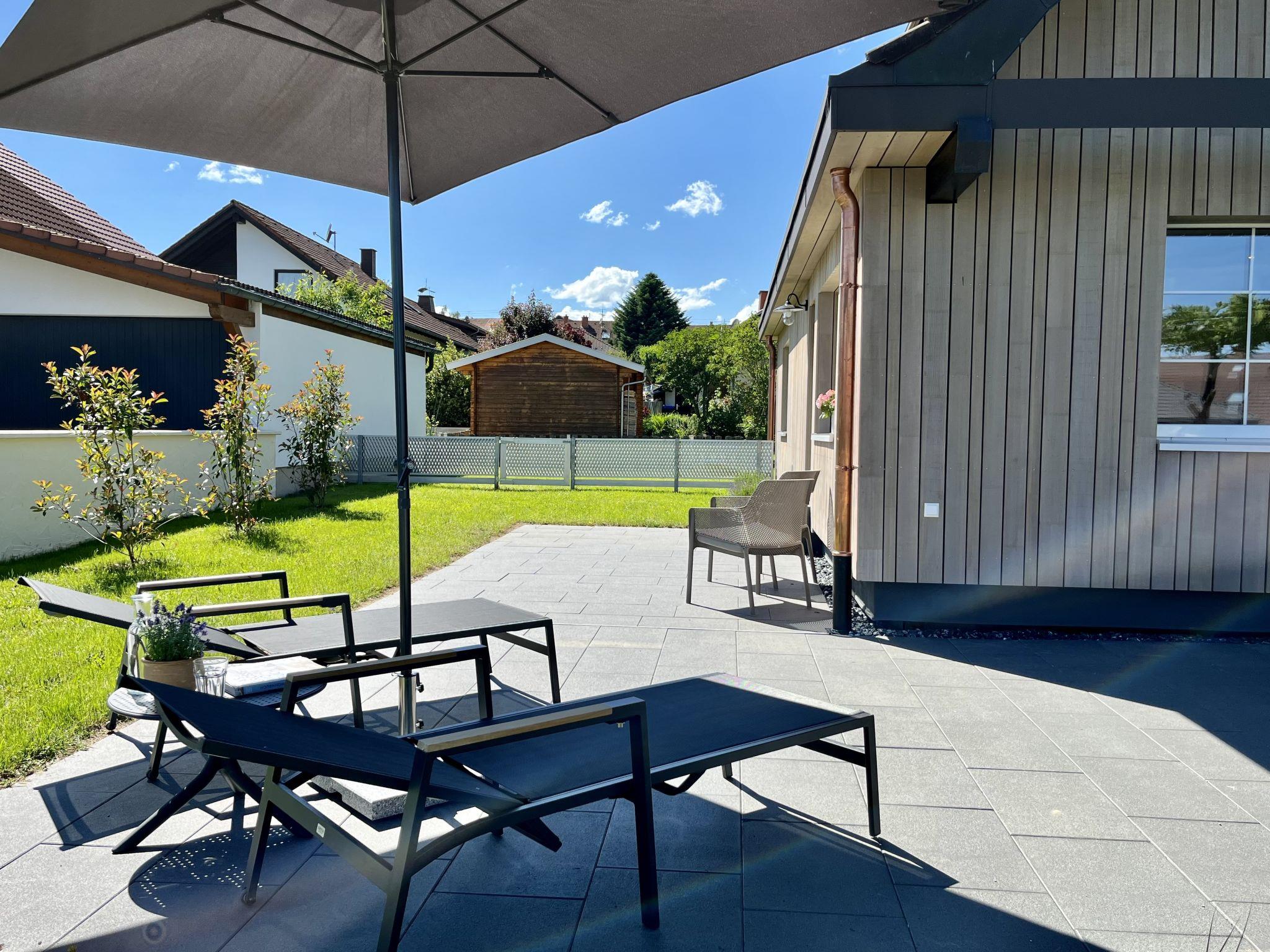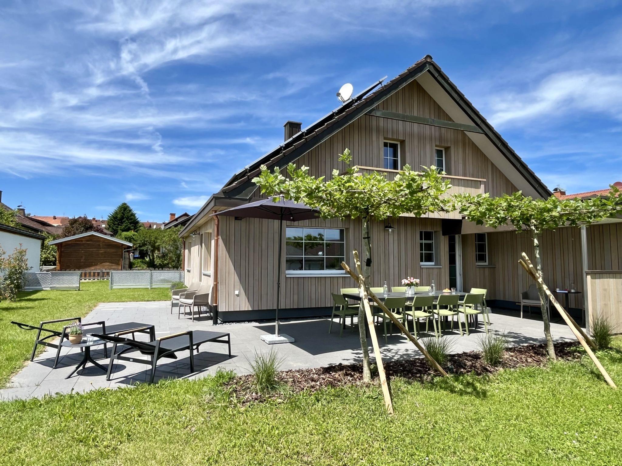 6-room house 160 m2 on 2 levels. Spacious and bright, fully renovated in 2024, very beautiful and tasteful furnishings: large entrance hall. Open living/dining room with dining table and tiled stove. Exit to the garden, to the terrace, south facing position and east facing position. Lounge with satellite TV (flat screen). Exit to the garden, to the terrace, west facing position. 1 room with 1 double bed (160 cm, length 200 cm). Open kitchen (oven, dishwasher, 4 ceramic glass hob hotplates, toaster, kettle, microwave, electric coffee machine) with dining table. Shower/WC, sep. WC. Underfloor heating. Solar power. Upper floor: 1 room with 1 double bed (180 cm, length 200 cm). Exit to the balcony. 1 room with 1 double bed (180 cm, length 200 cm). Exit to the balcony. 1 room with 1 double bed (180 cm, length 200 cm), shower/WC (private). Exit to the balcony. Shower/WC, double hand-basin. Balcony, west facing position balcony, east facing position, large terrace 50 m2, small terrace 12 m2, large garden. Terrace furniture, deck chairs, sitting area, box-room. View of the garden. Facilities: washing machine, dryer, iron, children's high chair, baby cot (extra), hair dryer. Parking (3 cars) at the house. Please note: non-smoking house. Maximum 3 pets/ dogs allowed. Smoke alarm, fire extinguisher.