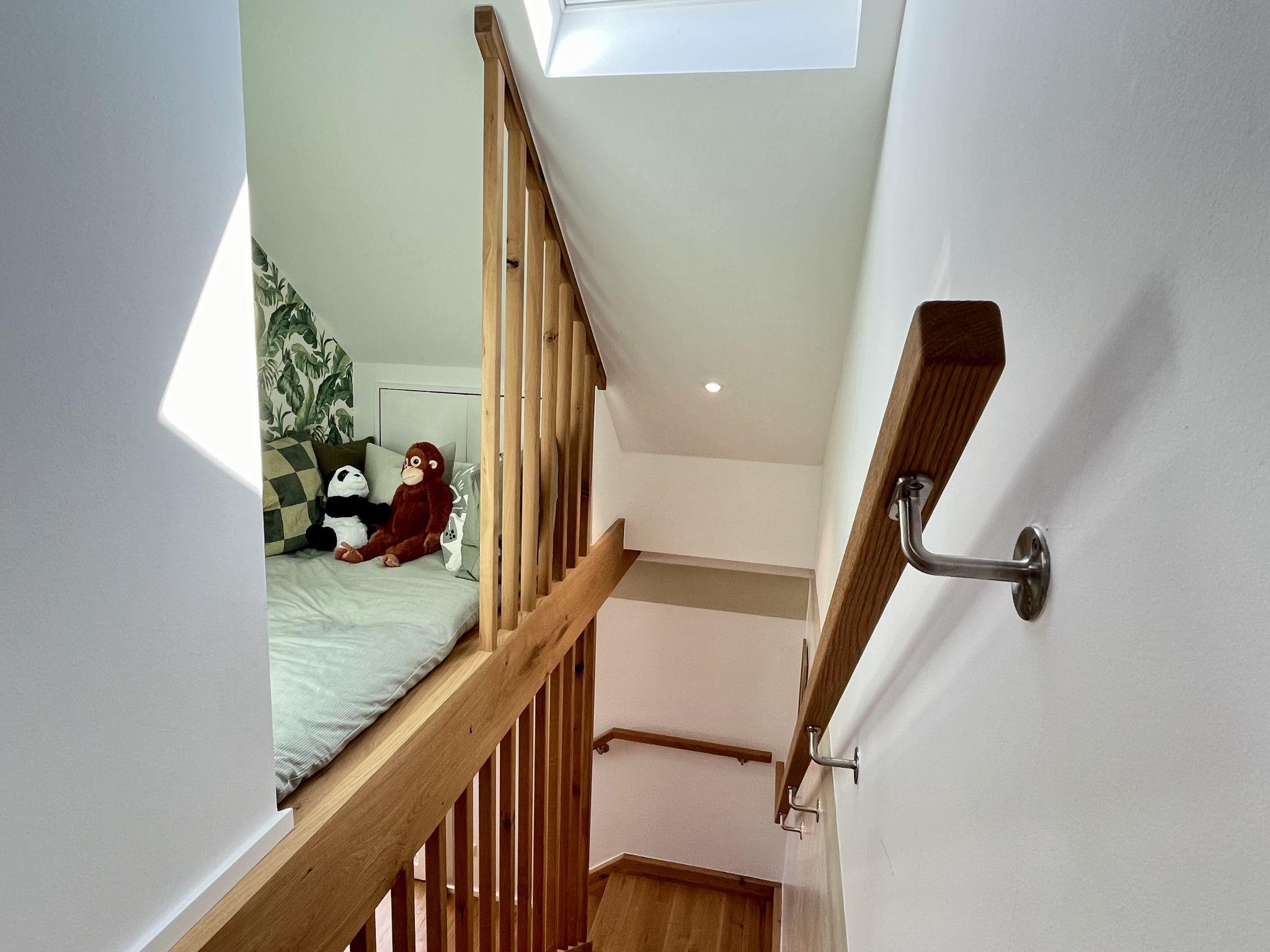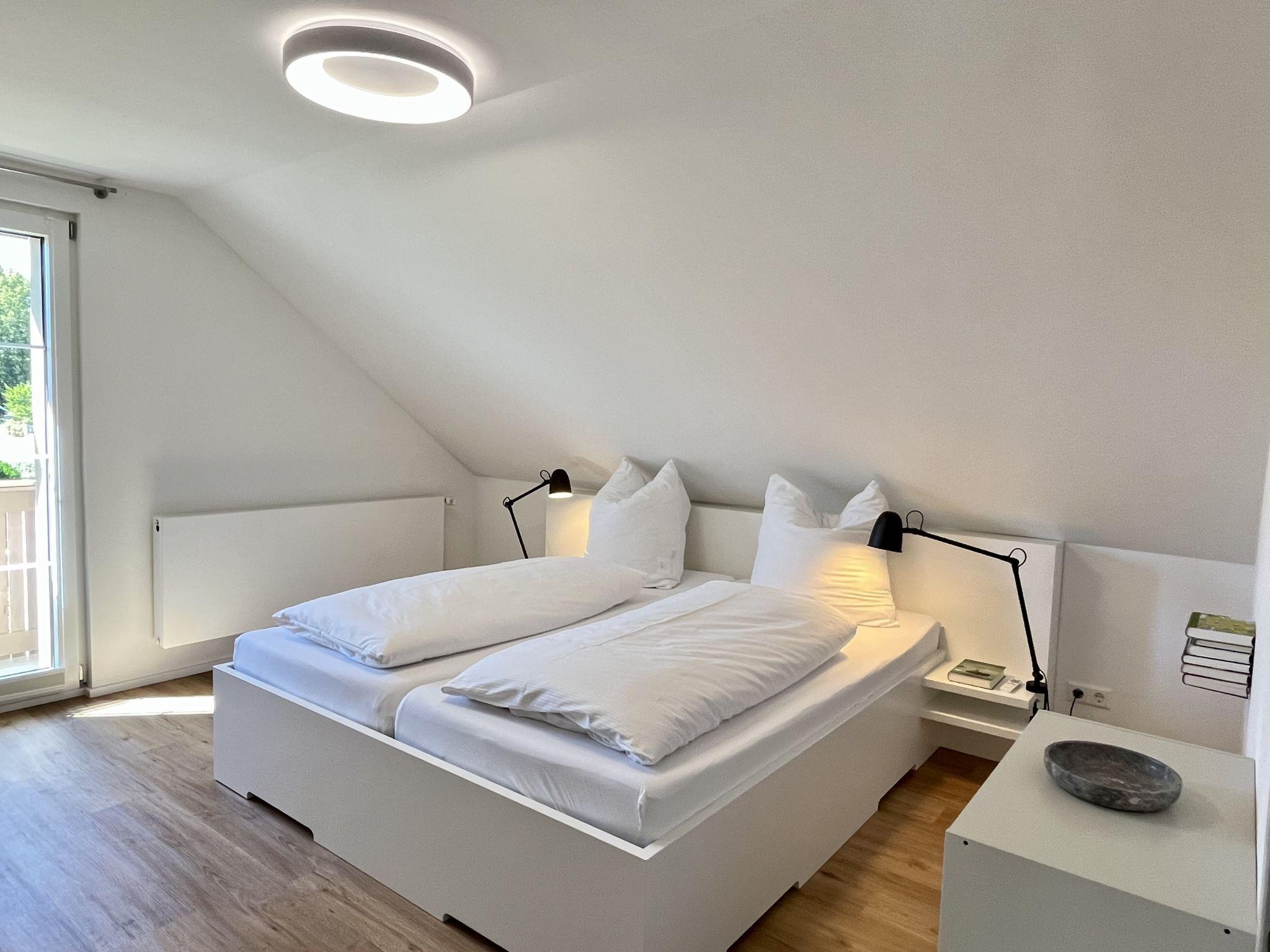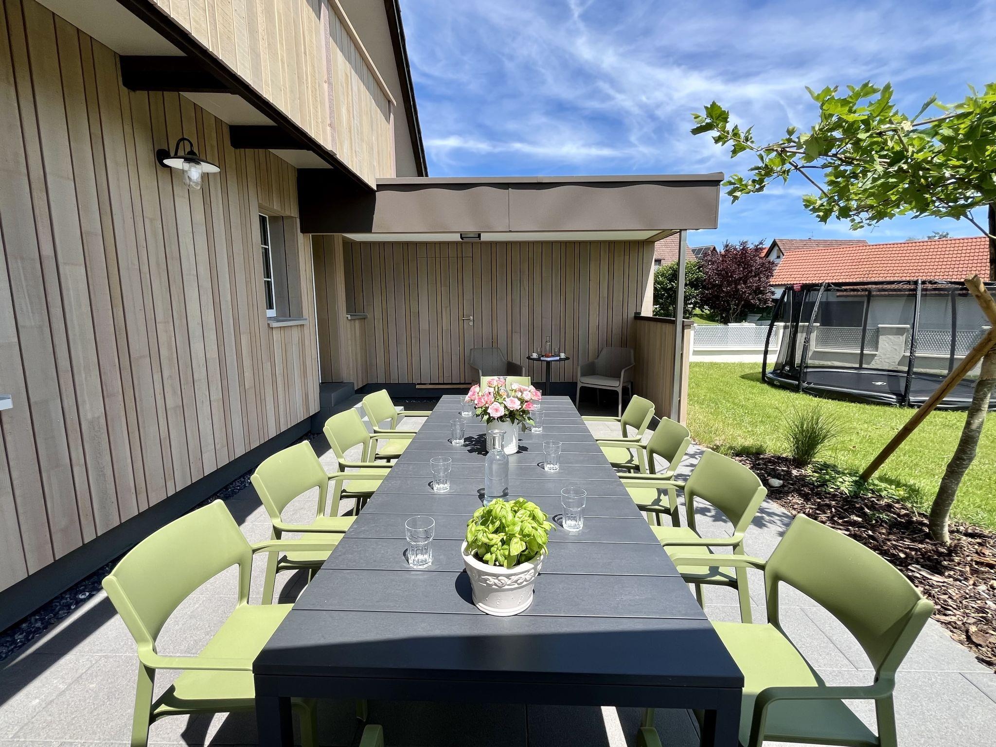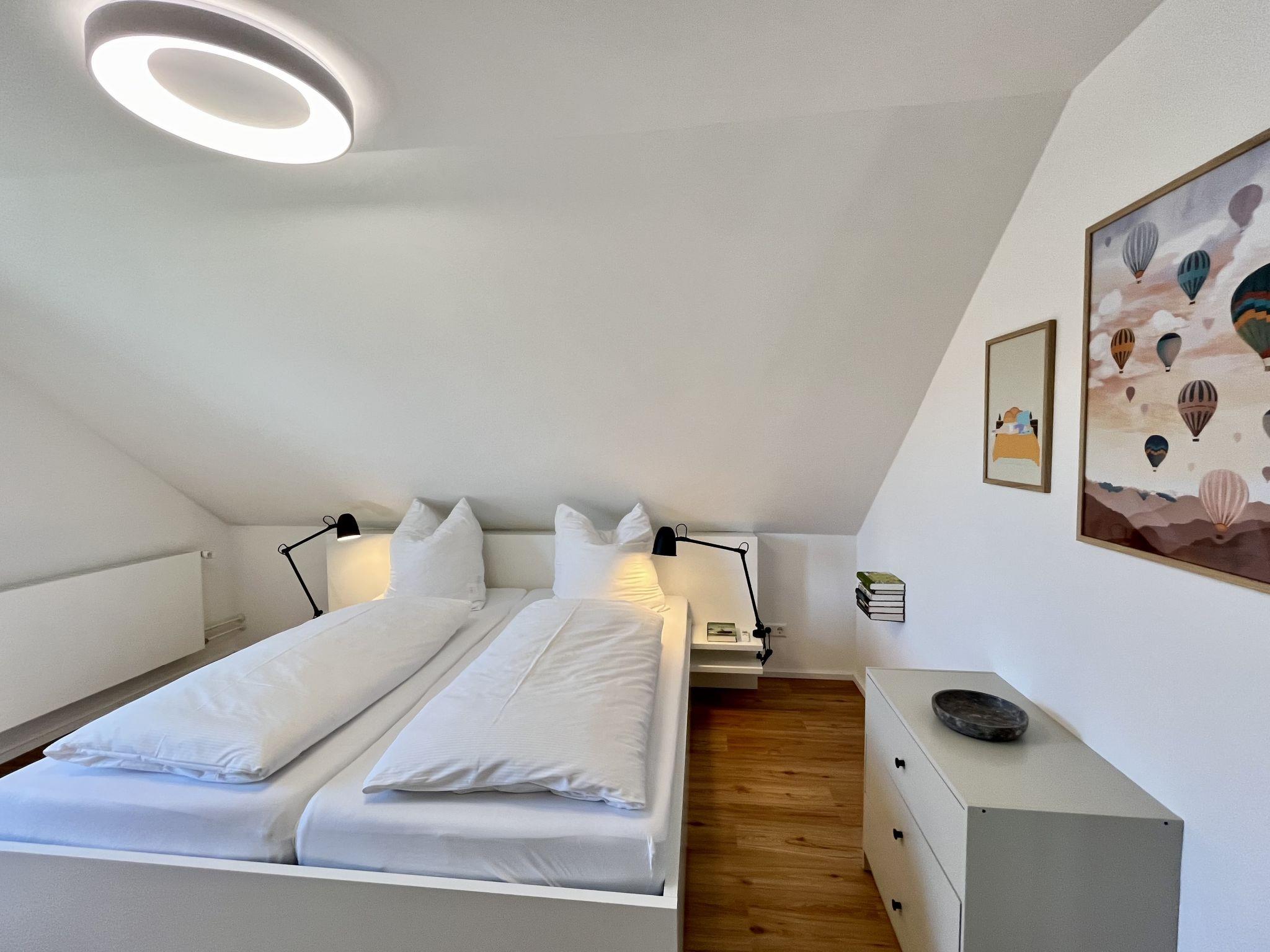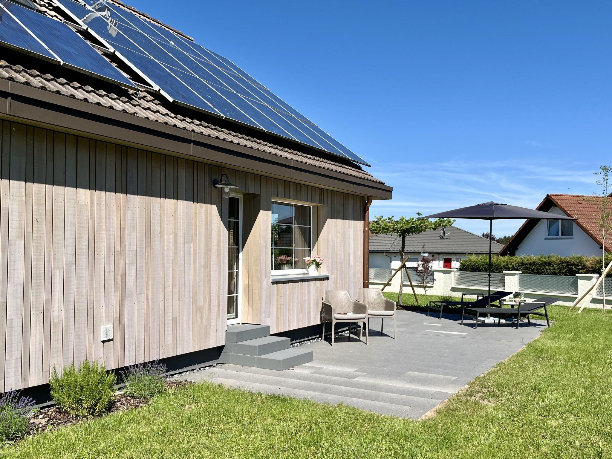 6-room house 160 m2 on 2 levels. Spacious and bright, fully renovated in 2024, very beautiful and tasteful furnishings: large entrance hall. Open living/dining room with dining table and tiled stove. Exit to the garden, to the terrace, south facing position and east facing position. Lounge with satellite TV (flat screen). Exit to the garden, to the terrace, west facing position. 1 room with 1 double bed (160 cm, length 200 cm). Open kitchen (oven, dishwasher, 4 ceramic glass hob hotplates, toaster, kettle, microwave, electric coffee machine) with dining table. Shower/WC, sep. WC. Underfloor heating. Solar power. Upper floor: 1 room with 1 double bed (180 cm, length 200 cm). Exit to the balcony. 1 room with 1 double bed (180 cm, length 200 cm). Exit to the balcony. 1 room with 1 double bed (180 cm, length 200 cm), shower/WC (private). Exit to the balcony. Shower/WC, double hand-basin. Balcony, west facing position balcony, east facing position, large terrace 50 m2, small terrace 12 m2, large garden. Terrace furniture, deck chairs, sitting area, box-room. View of the garden. Facilities: washing machine, dryer, iron, children's high chair, baby cot (extra), hair dryer. Parking (3 cars) at the house. Please note: non-smoking house. Maximum 3 pets/ dogs allowed. Smoke alarm, fire extinguisher.