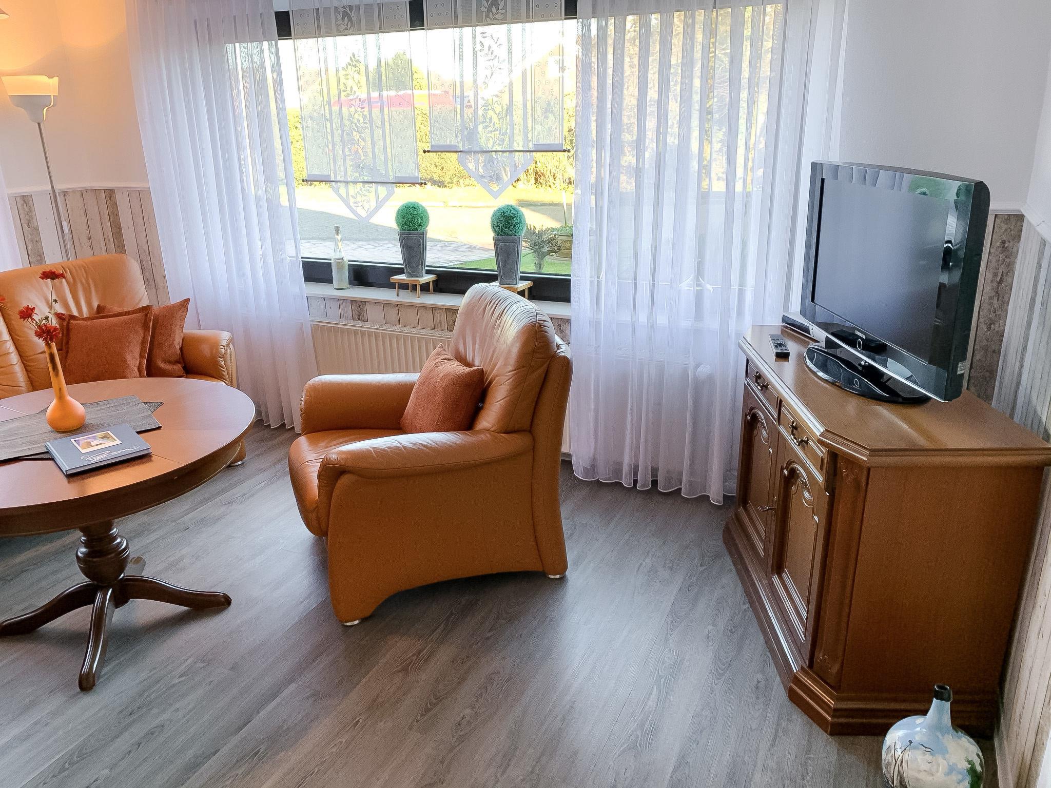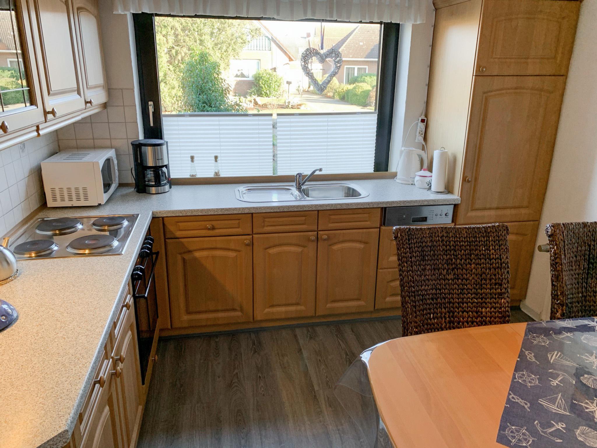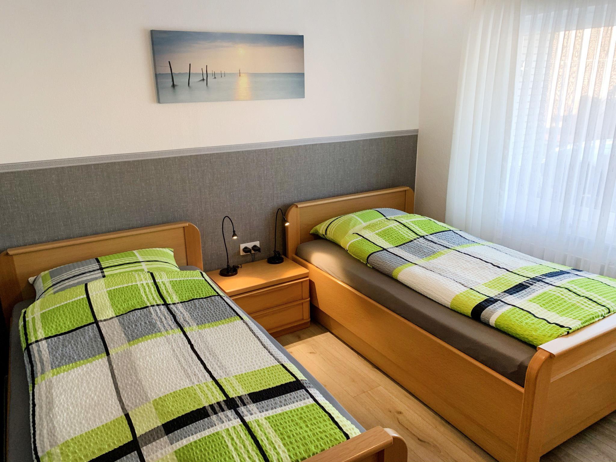 "Christine", 3-room apartment 55 m2, on the ground floor. Tasteful and cosy furnishings: living room with satellite TV (flat screen), radio, CD-player and DVD. 1 room with 2 beds (100 cm, length 200 cm). 1 room with 2 beds (90 cm, length 200 cm). Exit to the terrace. Kitchen (4 hot plates, oven, dishwasher, toaster, kettle, microwave, electric coffee machine) with dining table. Shower/WC. Terrace roofed. Terrace furniture. Facilities: Internet (WiFi, free). Please note: non-smokers only. Private entrance, smoke alarm. The rental only for tourist purposes.