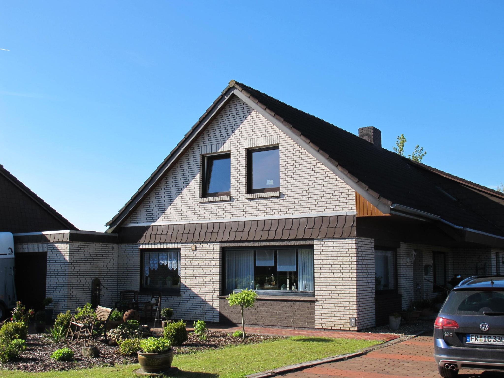2-family house. In the resort 500 m from the centre of Ditzum, 3 km from the sea, 650 m from the canal. Private: small garden with lawn. In the house: central heating system. Parking (for 2 cars) at the house. Shop 500 m, restaurant 500 m, bakery, café, bus stop 350 m, railway station "Leer" 22 km, ferry "Ditzum" 750 m, sandy beach "Norddeich" 88 km, outdoor swimming pool 20 km, indoor swimming pool 23 km. Dollart 3 km.