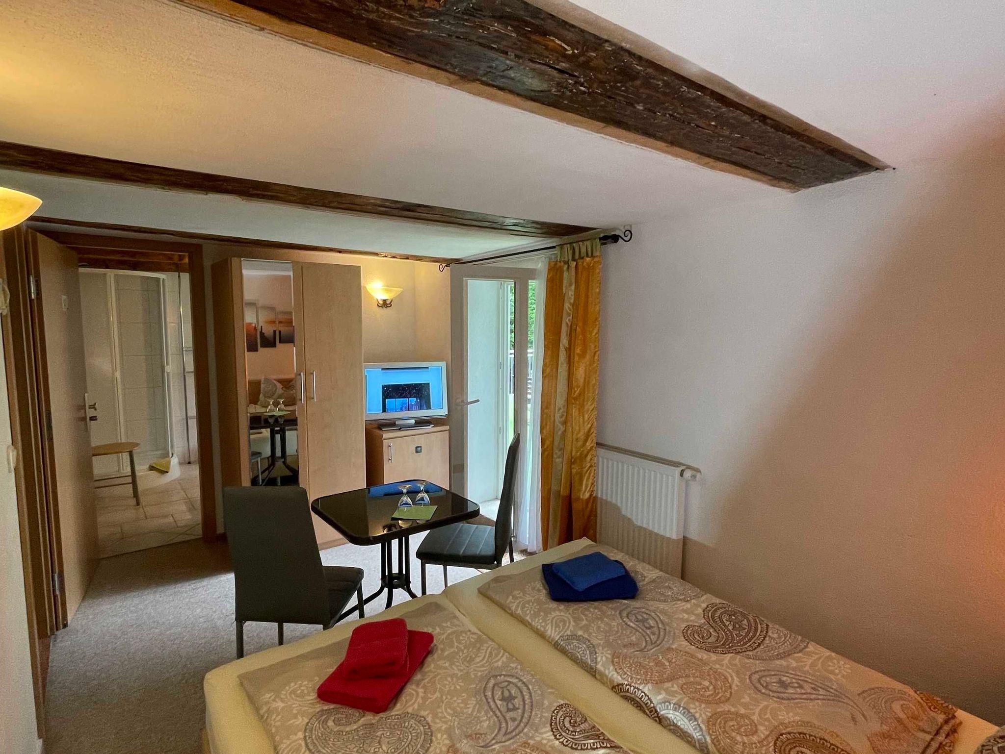 DZ mit Dachterrase und Blick auf 2 Flüsse, TV, Internet, Minibar (wird auf Wunsch aufgefüllt), DU/WC, Telefon
