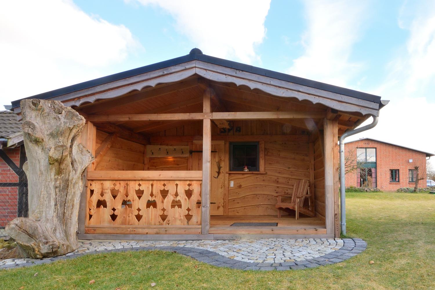 Vor dem Haus befindet sich eine Sonnenterrasse (Südost Ausrichtung) mit Grill, Feuerschale (Holz inklusive), Gartenmöbeln und Sonnenliegen. Zwei Parkplätze befinden sich direkt vor dem Haus. Das große Grundstück (gemeinschaftliche Nutzung mit dem Eigentümer) mit Wiese und ein hofeigener Spielplatz laden zum toben und relaxen ein. Im Garten befindet sich zudem das Saunahaus mit Kneippbad, Kaminzimmer und einer Sauna.