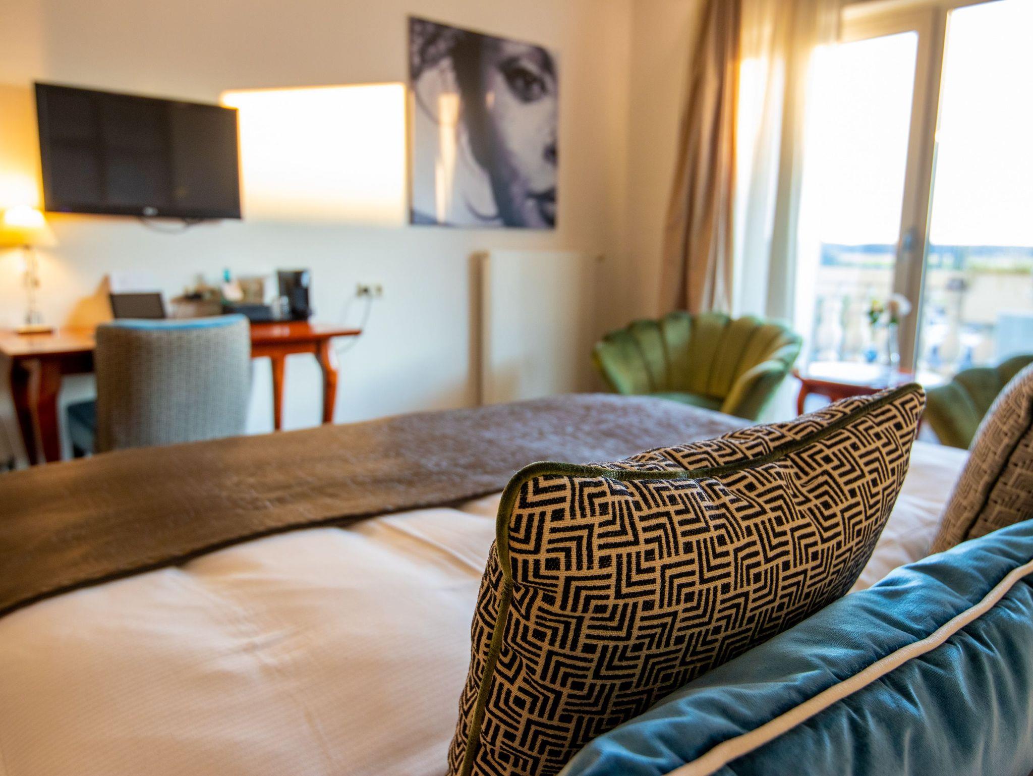 Die stilvollen Doppelzimmer im Van der Valk Resort Hotel Linstow sind wahre Rückzugsorte auf 32 m². Hier erwartet dich eine harmonische Kombination aus zeitgemäßem Komfort und eleganter Atmosphäre. Ein gemütliches Doppelbett (180x200) lädt zum Entspannen ein, während das geräumige Badezimmer mit Dusche und Badewanne Wellnessmomente verspricht. Die Klimaanlage sorgt für ein angenehmes Raumklima und die Nespresso Kaffeemaschine ermöglicht dir, jederzeit einen aromatischen Kaffee zu genießen. Dank der technischen Annehmlichkeiten, wie einem Smart-TV und kostenlosem WLAN, kannst du Arbeit und Entspannung perfekt miteinander verbinden. Weiterhin erwarten dich ein Kühlschrank und ein Safe für deine Wertsachen. Der aufmerksame Service des Hotels rundet dein Erlebnis ab - vom reichhaltigen Frühstücksbuffet über das exquisite Restaurant bis hin zur einladenden Badespaßlandschaft. Hier fühlst du dich sofort wohl und kannst deinen Aufenthalt in vollen Zügen genießen.